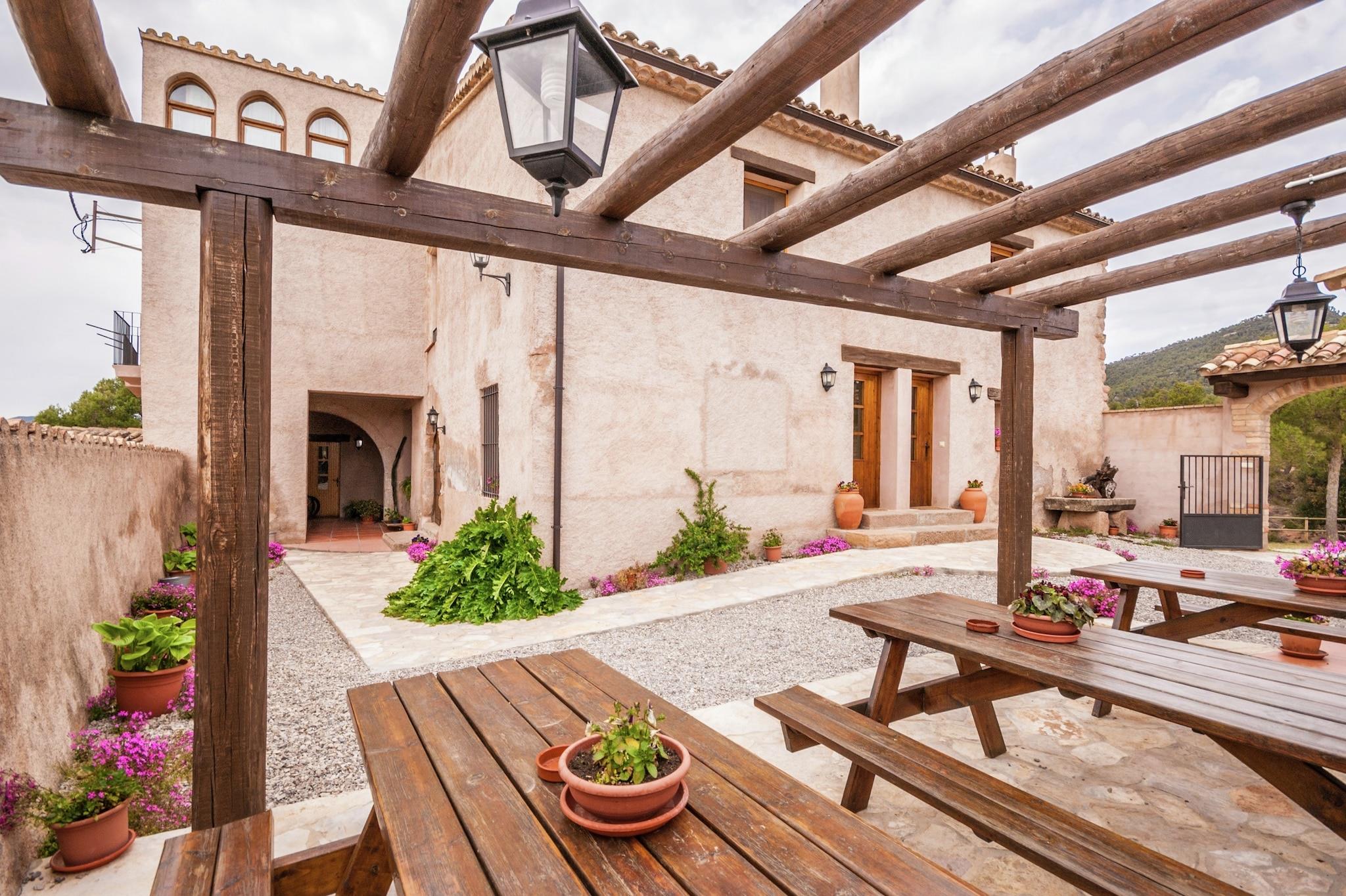 XVII århundrede, fuldt restaureret landlig ejendom på 90 m2, beliggende i Bages, i det centrale Catalonien. Transportforbindelser er fremragende, og de betagende Montserrat-bjerge ligger kun 30 km væk. Ejendommen består af 3 uafhængige boliger med alle nødvendige bekvemmeligheder til et behageligt og afslappende ophold. Gæsterne får mulighed for at besøge ruinerne af den romanske kirke samt andre steder af kult og klostre i det omkringliggende område. Adgang til huset er ved en trappe, der fører fra terrassen og i første sal finder du stue / spisestue med køkken, toilet og to soveværelser. Der er også en vindeltrappe, der fører til et lille loft. Udenfor er der en gårdhave, et skovområde og en fælles swimmingpool. Ejerne driver en lille gård og tilbyder besøg, hvis gæsterne ønsker det. En række vinkældre og en usædvanlig snegle gård, kun 2 km fra huset er også et besøg værd.