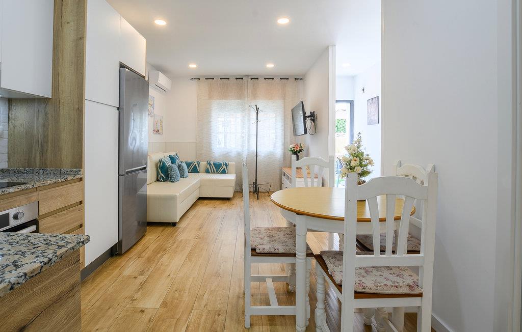 I "El Palo" - kvarteret, ca. 7 km fra Málaga bymidte, ligger dette smukke feriehus, et rækkehus med en flot terasse. Kun 250 m til stranden "Playa de El Palo" med sine typiske strandrestauranter: "Chiringuitos". Med bussen tager det 20 minutter at komme i hovedstaden Costa del Sols historiske centrum. Her er der meget at opdage! Katedralen, det romerske teater, borgruinen "Gibralfaro", Picassos barndomshjem og museer som Thyssenmuseet og Picassomuseet.