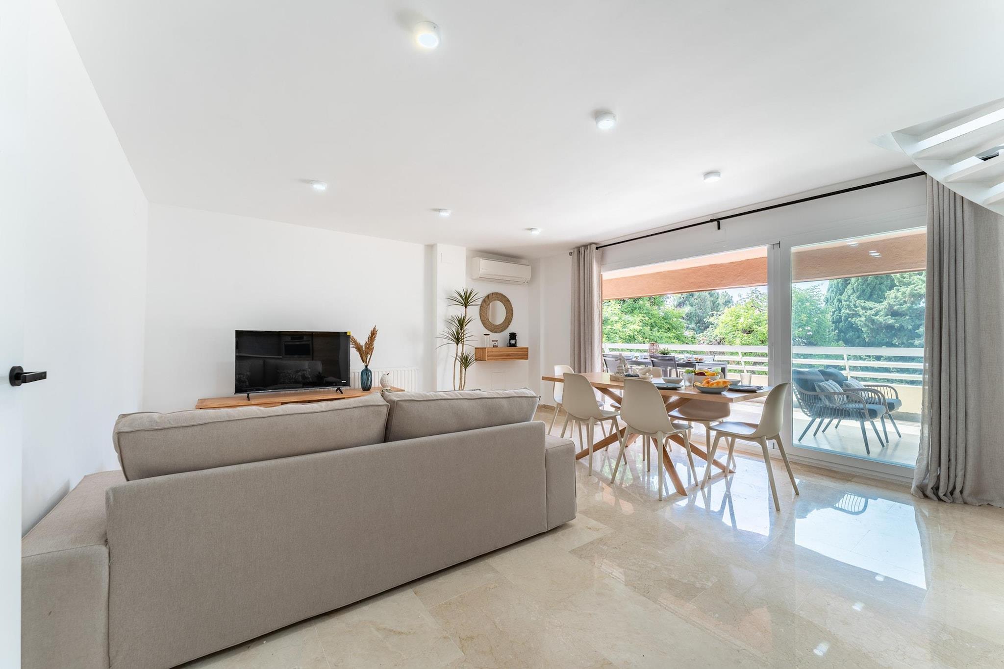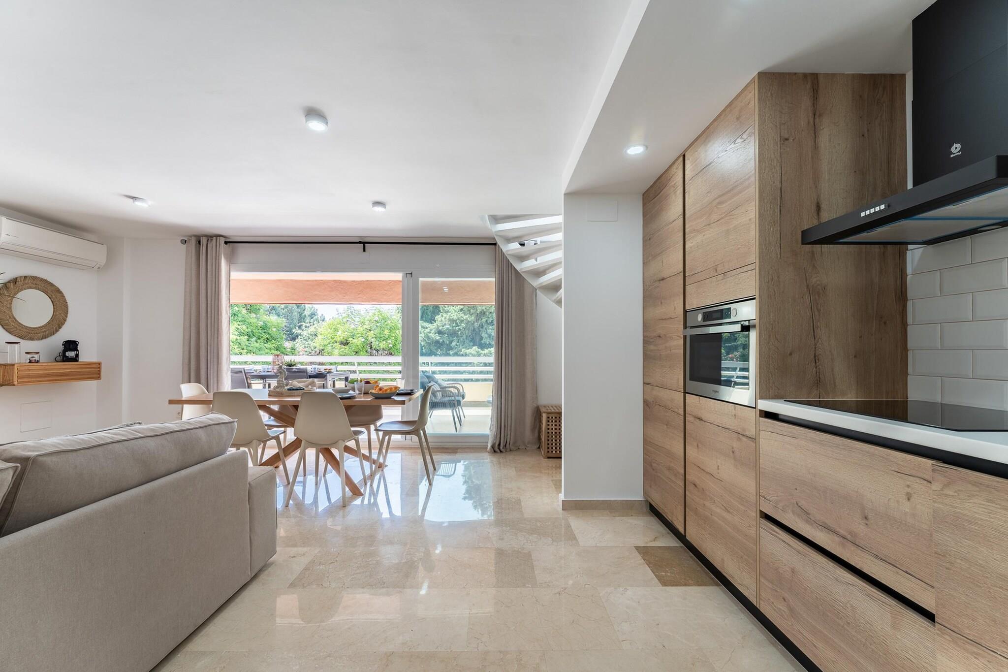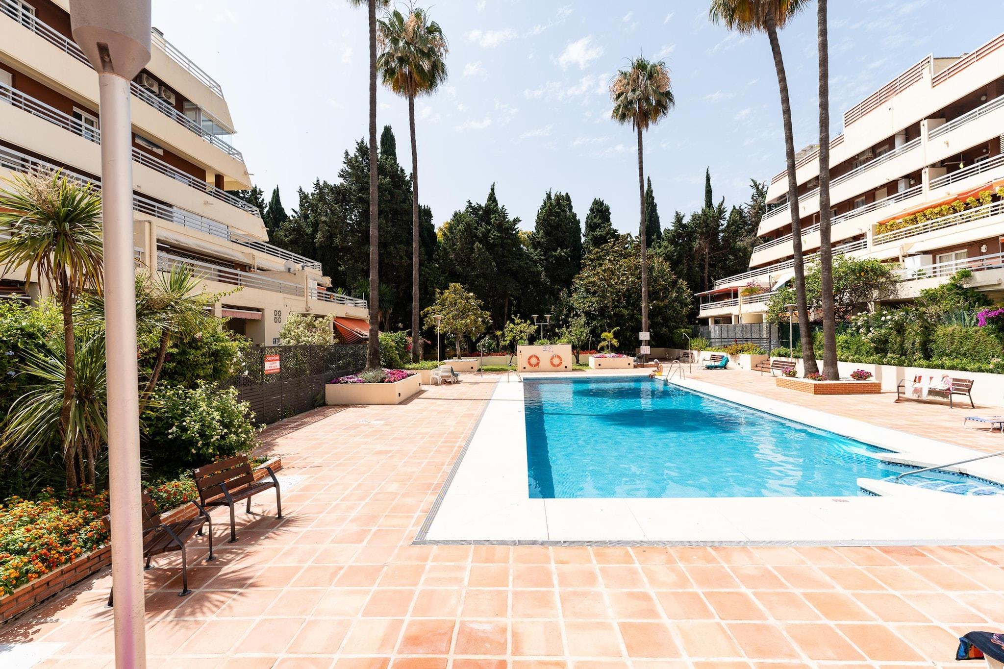 Denne charmerende bolig ligger i hjertet af Marbella, kun 400 meter fra strandpromenaden, stranden og den livlige marina. Dens privilegerede beliggenhed giver dig mulighed for at nyde middelhavsatmosfæren til fods, med direkte adgang til butikker, restauranter, strandbarer og et pulserende natteliv, alt sammen uden at ofre roen og komforten ved eksklusiv indkvartering. Ejendommen, der er fordelt på to etager, tilbyder et moderne og hyggeligt rum, der er ideelt for familier eller vennegrupper. Den har tre soveværelser: to med dobbeltsenge og et andet udstyret med køjesenge, hvilket giver mulighed for komfortabel plads til op til seks personer. Den har to komplette badeværelser med brusere, perfekt til at sikre komfort og privatliv under dit ophold. Det fuldt udstyrede køkken er integreret med stue-spisestuen i et åbent design, der fremmer socialisering og naturligt lys. Stuen åbner ud til en stor terrasse med forskellige fritidsområder, perfekt til udendørs morgenmad, afslappede middage eller hvilestunder under den andalusiske himmel. Den store attraktion ved denne duplex er dens spektakulære private tagterrasse, som har en eksklusiv swimmingpool og et solariumområde med liggestole, en sand oase, hvor du kan nyde Costa del Sol i fuldstændig privatliv. Derudover tilbyder området en fælles swimmingpool og en privat parkeringsplads, noget der er højt værdsat i dette centrale område af Marbella. Marbella er meget mere end bare sol og strand. Dens gyldne sandstrande og rolige vand er perfekte til afslapning eller vandsport, mens den gamle bydel med brostensbelagte gader og blomsterfyldte pladser inviterer dig til at slentre rundt og opdage den autentiske essens af Andalusien. Det lokale køkken er en anden af dens store attraktioner med et bredt udvalg af muligheder fra traditionelle strandbarer, hvor du kan nyde stegt fisk, til haute cuisine-restauranter.