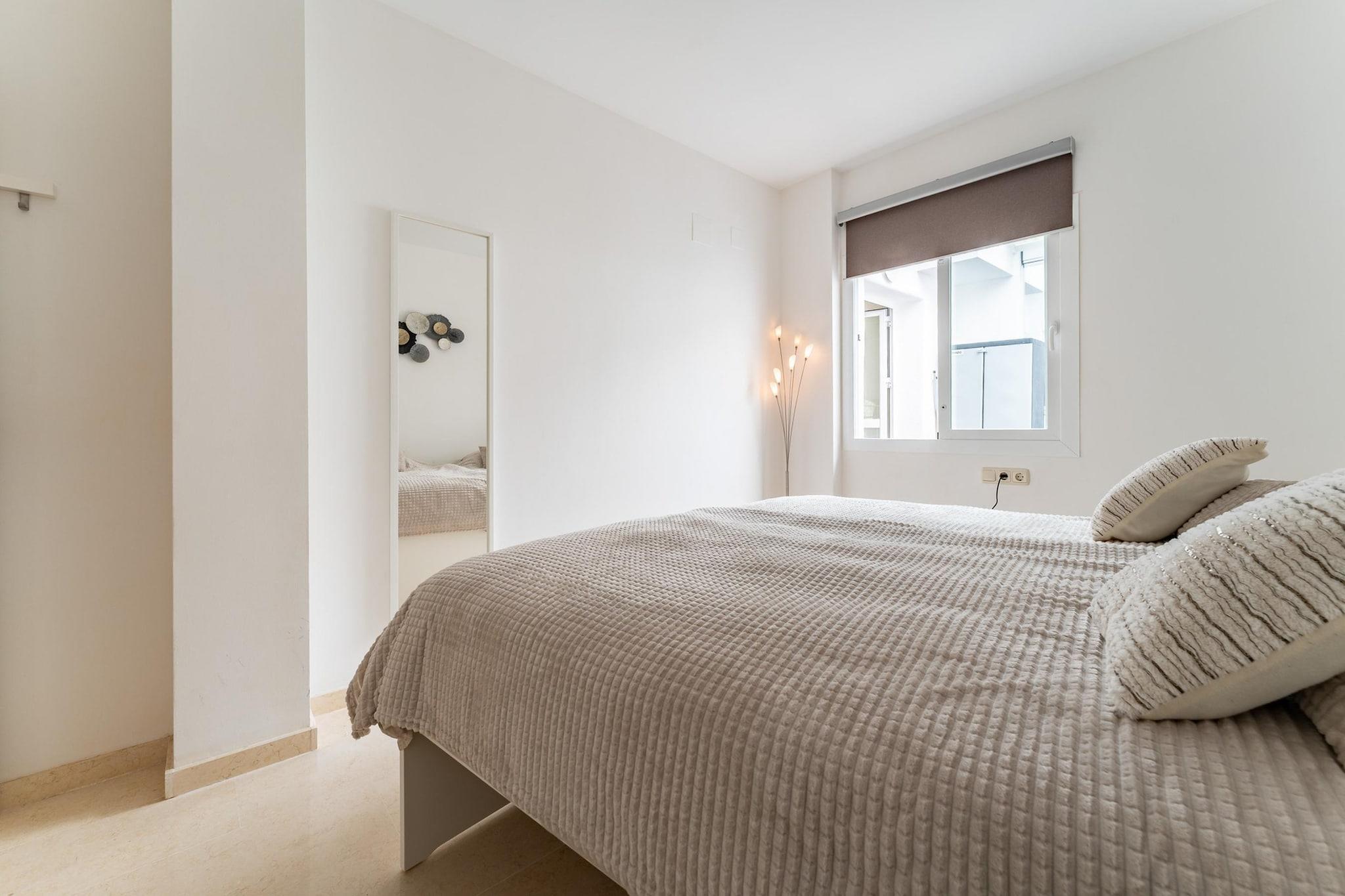 Oplev essensen af afslapning i denne dejlige ferielejlighed, beliggende i et fredeligt boligkompleks i Elviria, Marbella. Perfekt designet til par, familier eller venner, tilbyder den alt, hvad du behøver for et ubekymret ophold på den solbeskinnede Costa del Sol. Lejligheden har to hyggelige dobbeltværelser, to badeværelser med badekar, et fuldt udstyret køkken med alt, hvad du behøver til hjemmelavet madlavning, og en lys stue-spisestue med store vinduer, der åbner ud til en dejlig privat terrasse. Terrassen er hjemmets sande hjerte, et indbydende udendørsområde opdelt i to fritidszoner. Uanset om du nyder morgenmaden i solen, slapper af i loungeområdet eller deler en aftengrillfest under stjernerne, er det det ideelle sted at nyde Andalusiens varme klima. Gæsterne har også adgang til en fælles swimmingpool i det lukkede kompleks, perfekt til at køle af efter en dag på stranden eller at udforske de nærliggende bakker. Kun 4 km væk finder du nogle af de fineste strande på kysten, herunder den ikoniske Cabopino-strand med dens gyldne klitter og krystalklare vand. Prøv frisk fisk og skaldyr eller traditionel *pescaíto frito* på en af strand-*chiringuitos*, eller tilbring dagene med at vandre, spille golf på verdensklassebaner eller udforske lokale markeder og butikker. Til dagsture ligger Marbellas historiske gamle bydel kun 15 minutter væk, mens den glamourøse Puerto Banús og dens luksuriøse marina ligger 25 minutter fra din dør. Lejligheden ligger også kun 35 minutter fra Málaga Internationale Lufthavn, hvilket gør den let tilgængelig fra hele Europa. Med en kombination af komfort, stil og uovertruffen beliggenhed tilbyder dette tilflugtssted i Elviria den perfekte base for at opleve charmen, solskinnet og den pulserende livsstil på Costa del Sol.
