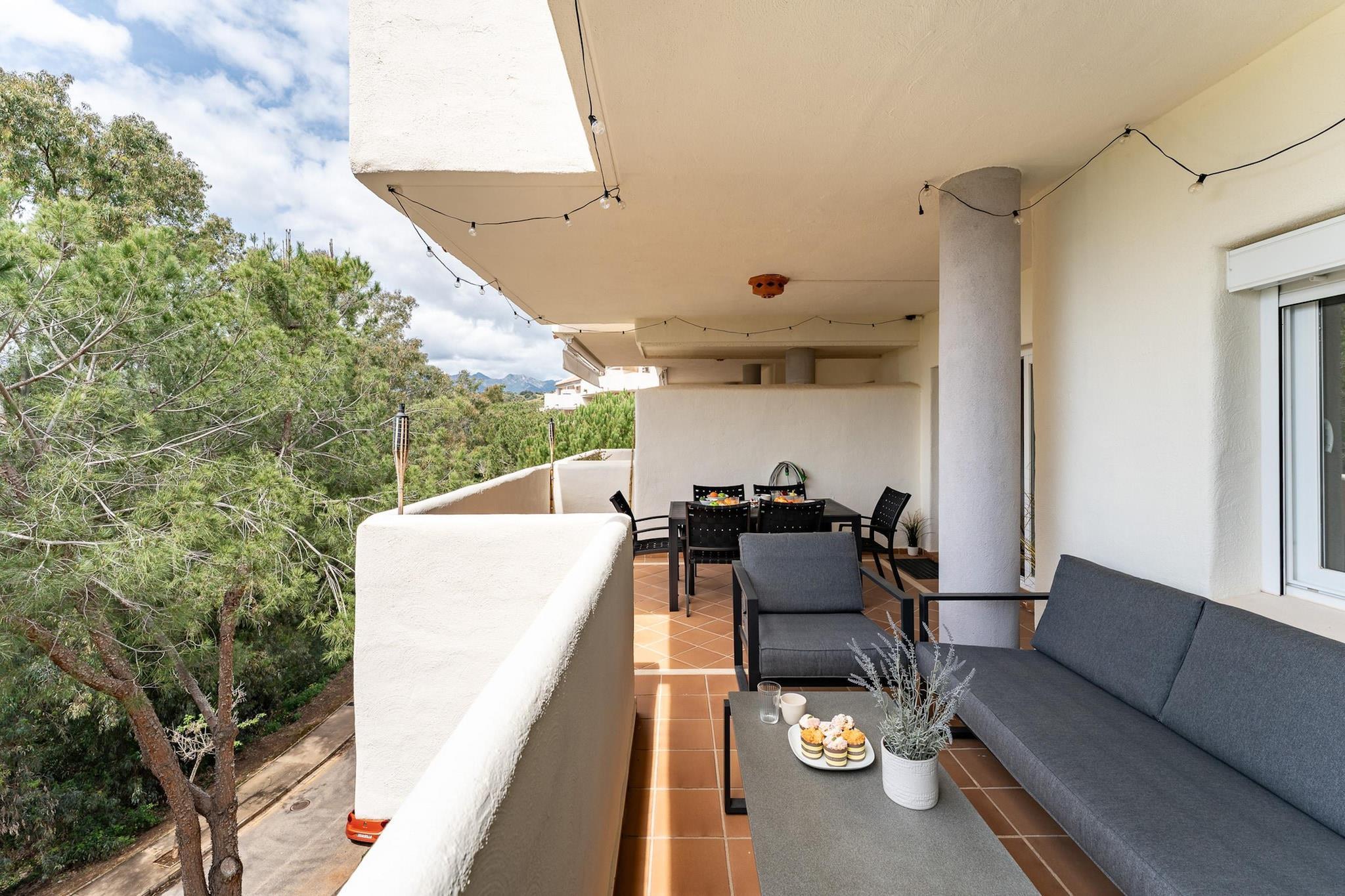 Denne indbydende lejlighed ligger gemt væk i det fredelige hjerte af Elviria og tilbyder den perfekte blanding af komfort og kystcharme – dit hjem væk fra hjemmet på den solbeskinnede Costa del Sol. Lys, rummelig og designet til afslapning – ideel til familier eller venner, der søger et afslappet tilflugtssted nær Marbellas gyldne strande. Indenfor sikrer to hyggelige soveværelser, et med en dobbeltseng og et andet med to enkeltsenge og en køjeseng, at alle har deres eget fredelige hjørne. De to badeværelser med badekar tilføjer et ekstra strejf af komfort, mens det fuldt udstyrede køkken og den luftige stue-spisestue skaber et rum, hvor latter og god mad naturligt mødes. Træd udenfor til lejlighedens private terrasse, en dejlig forlængelse af dit opholdsrum. Den er opdelt i to fritidszoner og er perfekt til solrige morgenmader, dovne eftermiddage eller aftengrillfester under stjernerne. Når det er tid til at køle af, kan du tage til den fælles pool for en forfriskende dukkert eller blot slappe af på en liggestol med en bog i hånden. Komplekset tilbyder også privat parkering, hvilket sikrer, at dit ophold er ubesværet fra start til slut. Kun få minutters kørsel væk venter Elvirias strande på brede strækninger af blødt sand, kysset af Middelhavets blide bølger. Gå en tur langs Cabopino-stranden og dens naturlige klitter, eller slå dig ned i en *chiringuito* ved stranden for at nyde paella, frisk fisk og skaldyr og lokal vin med havudsigt. Ud over kysten kan du udforske de nærliggende bakker til fods, spille golf på golfbaner i verdensklasse eller slentre gennem de livlige gader i Marbellas gamle bydel. Og for at få en smag af luksus er Puerto Banús kun en kort køretur væk. Med Málaga Lufthavn kun 35 minutter fra din dør tilbyder dette gemmested i Elviria alt, hvad du behøver - solskin, ro og løftet om uforglemmelige dage ved havet.