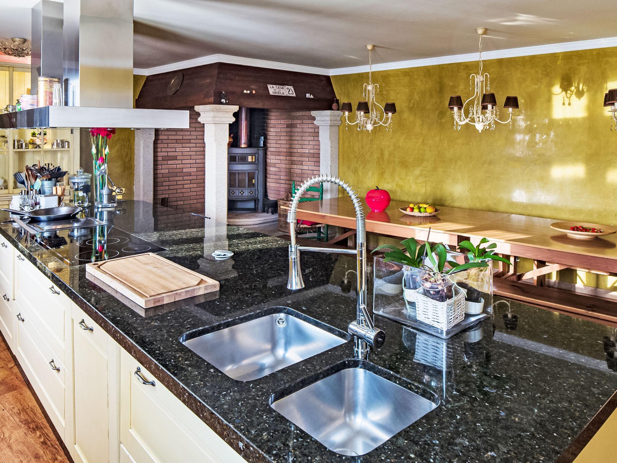 "Casa Avoa Dolores", 5-room house 250 m2 on 2 levels. Fully renovated, very comfortable and beautiful furnishings: living room 40 m2 with kitchen corner, bar and digital TV. Open kitchen 40 m2 (oven, dishwasher, microwave, freezer, cooking island) with dining table, open-hearth fireplace. Shower/WC, double hand-basin. Floor heating. Upper floor: 1 room with Dressing room with 1 french bed (160 cm, length 200 cm), bath/WC. 1 room with 1 french bed (160 cm, length 200 cm). Exit to the balcony. 1 room with 1 french bed (160 cm, length 200 cm). Exit to the balcony. 1 room with 1 bed (90 cm, length 200 cm), 1 french bed (140 cm, length 200 cm). Shower/WC. Floor heating. 2 small balconies, large terrace. Terrace furniture, barbecue, deck chairs. Distant view of the sea and the valley. Facilities: washing machine, iron, children's high chair, baby cot, hair dryer. Internet (WiFi, free). Parking (2 cars), garage (1 car). Please note: TV only ES. VUT-PO-002071 // Reg. Nr.: ESFCTU00001500300127463200000000000000000VUT-CO-0020713