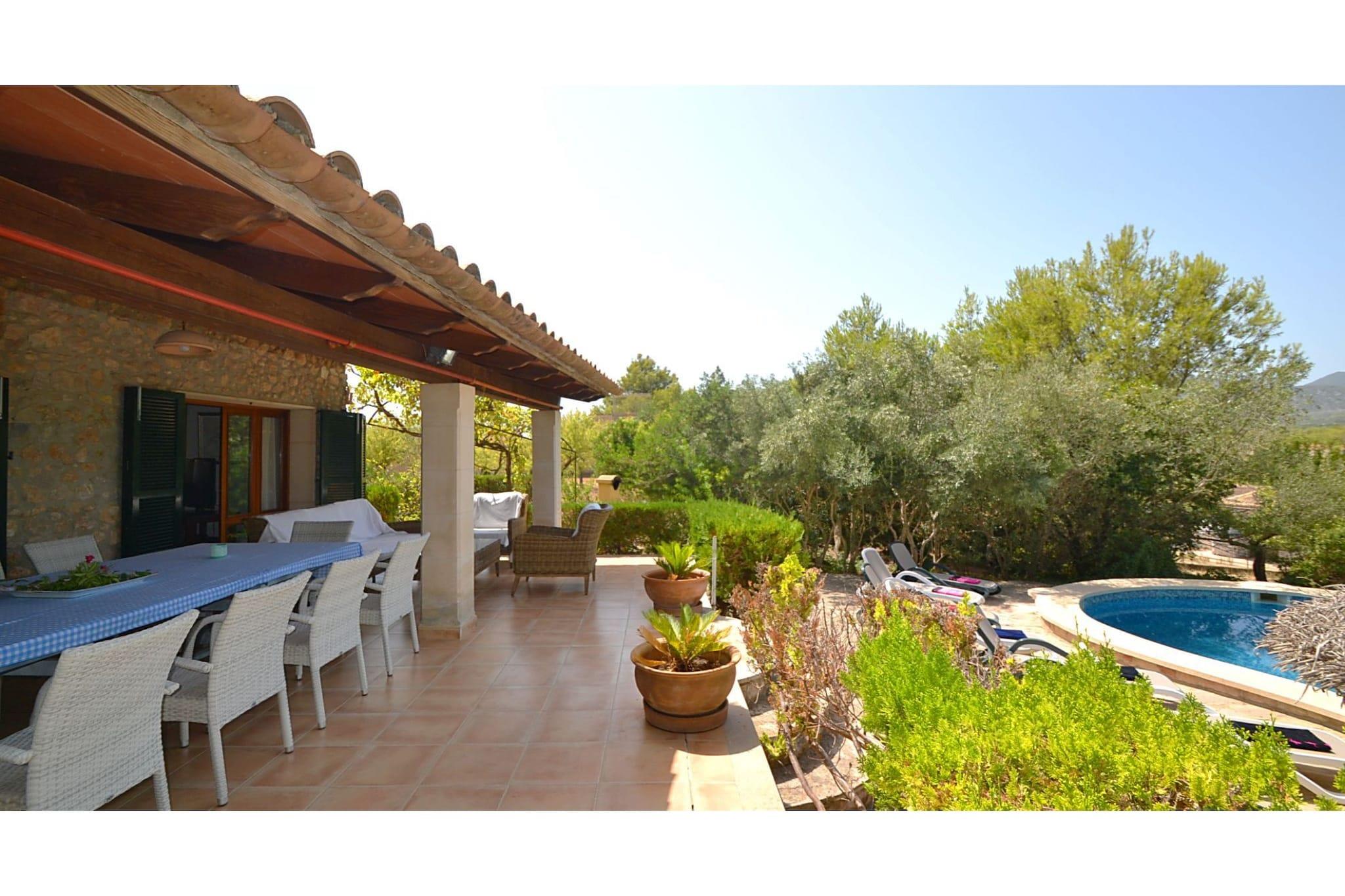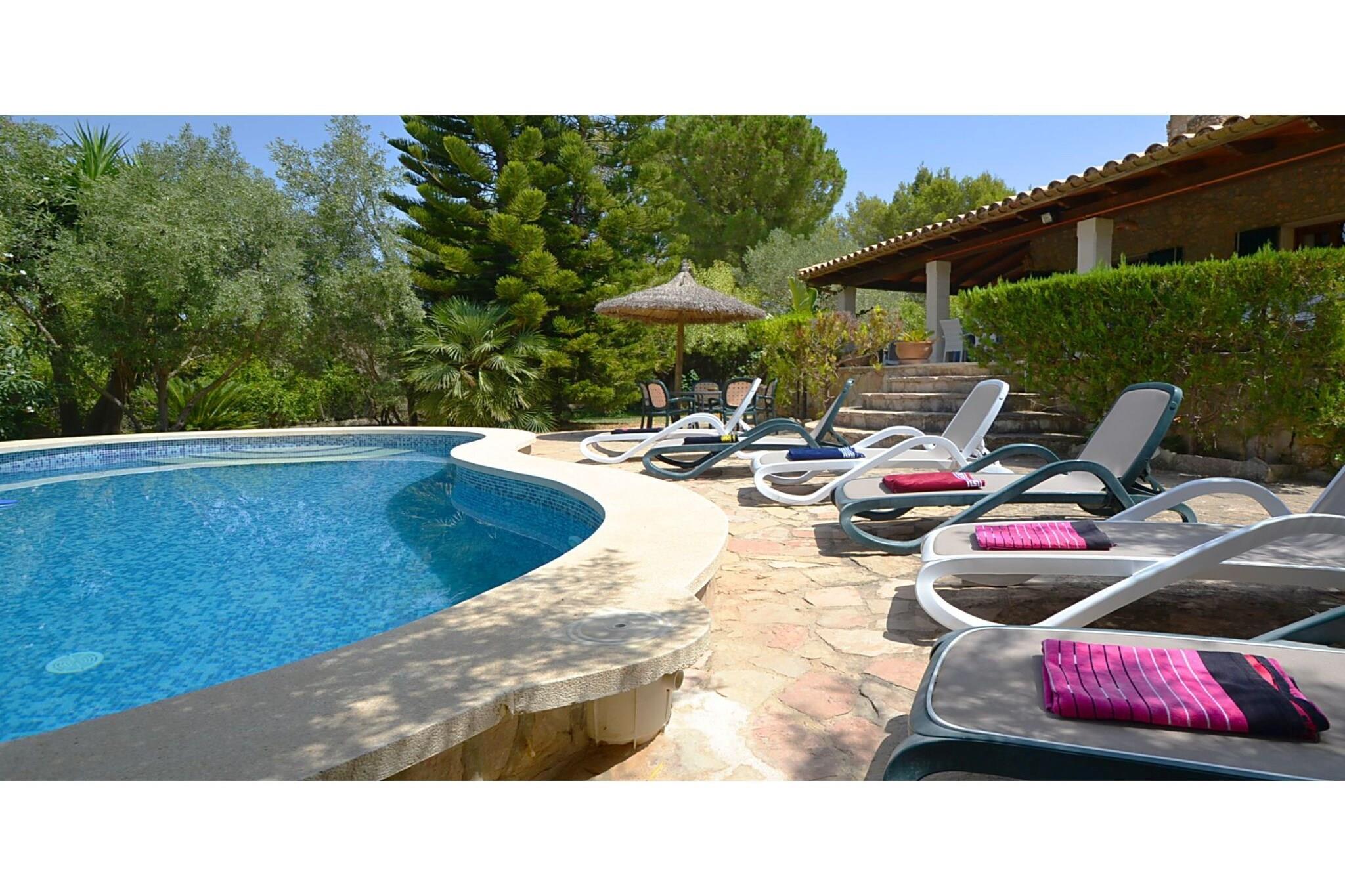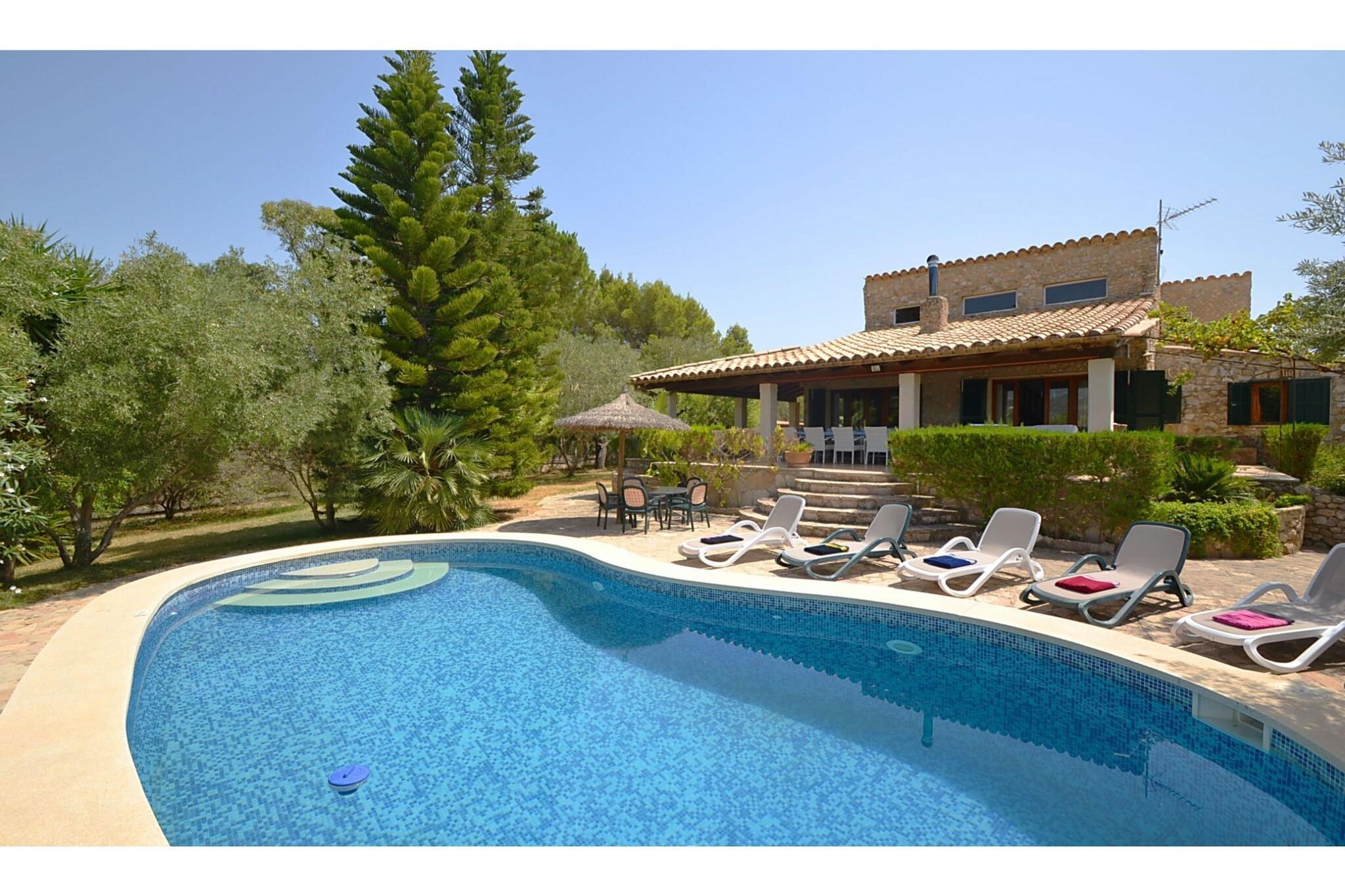 Autentisk Mallorca villa med swimmingpool, beliggende ca. 1 km fra byen Mancor. Her kan du lave en uforglemmelig luftballontur, hvor du kan overskue hele øen med klart vejr. Inden for ca. 15 km er de smukke strande og bugter i Portochristo, hvor somrene er behageligt travle. Stedet Artá (10 km.) er kendt for sin arkæologiske udgravning, som bestemt er et besøg værd. Omgivelserne er fremragende til lange gåture, cykel- eller bilture gennem Mallorcas landskab. Længere mod vest kommer du til forgreningerne af Tramuntana-bjergkæden, hvor der er perfekte steder at vandre og gå ture. Langs nordkysten finder du de travle turist-kurbade som Port d"Alcudia og Port de Pollença, mens du på østkysten finder utallige azurblå bugter, for det meste med forladte strande. Du kan snuse til kulturen i det gamle Alcudia og naturligvis i hovedbyen Palma med dens smukke katedral og gamle shoppinggader.