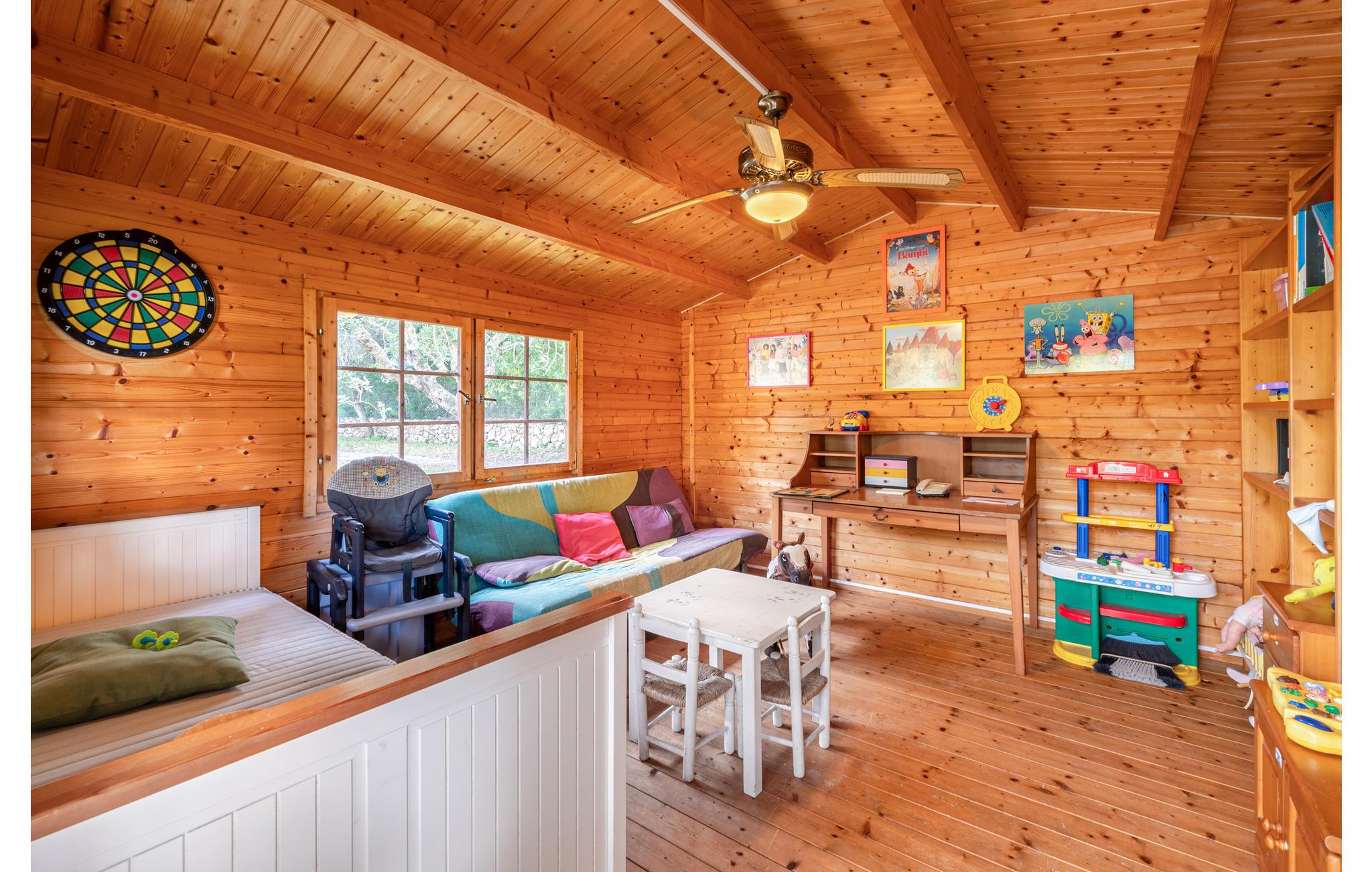 I dette roligt beliggende feriehus på landet, der alligevel kun ligger 8 km fra sandstranden, venter der gode muligheder for at jeres børn kan lege eller slappe af. På gården er en trampolin, en basketballkurv og endda et legehus med utallige legeredskaber. Nyd hyggelige måltider på den overdækkede terrasse i det fri. Ejeren kigger regelmæssigt efter sine høns på nabogrunden med særskilt indgang. På kun ti minutter når I den populære havn af Porto Christo, hvor der venter storslåede restauranter, caféer og isboder. I må heller ikke gå glip af besøg i de berømte Dragehuler af Porto Christo. I nære Manacor er der gode indkøbsmuligheder. Byen er også kendt for perleproduktion og derfor især populært blandt kvinder.