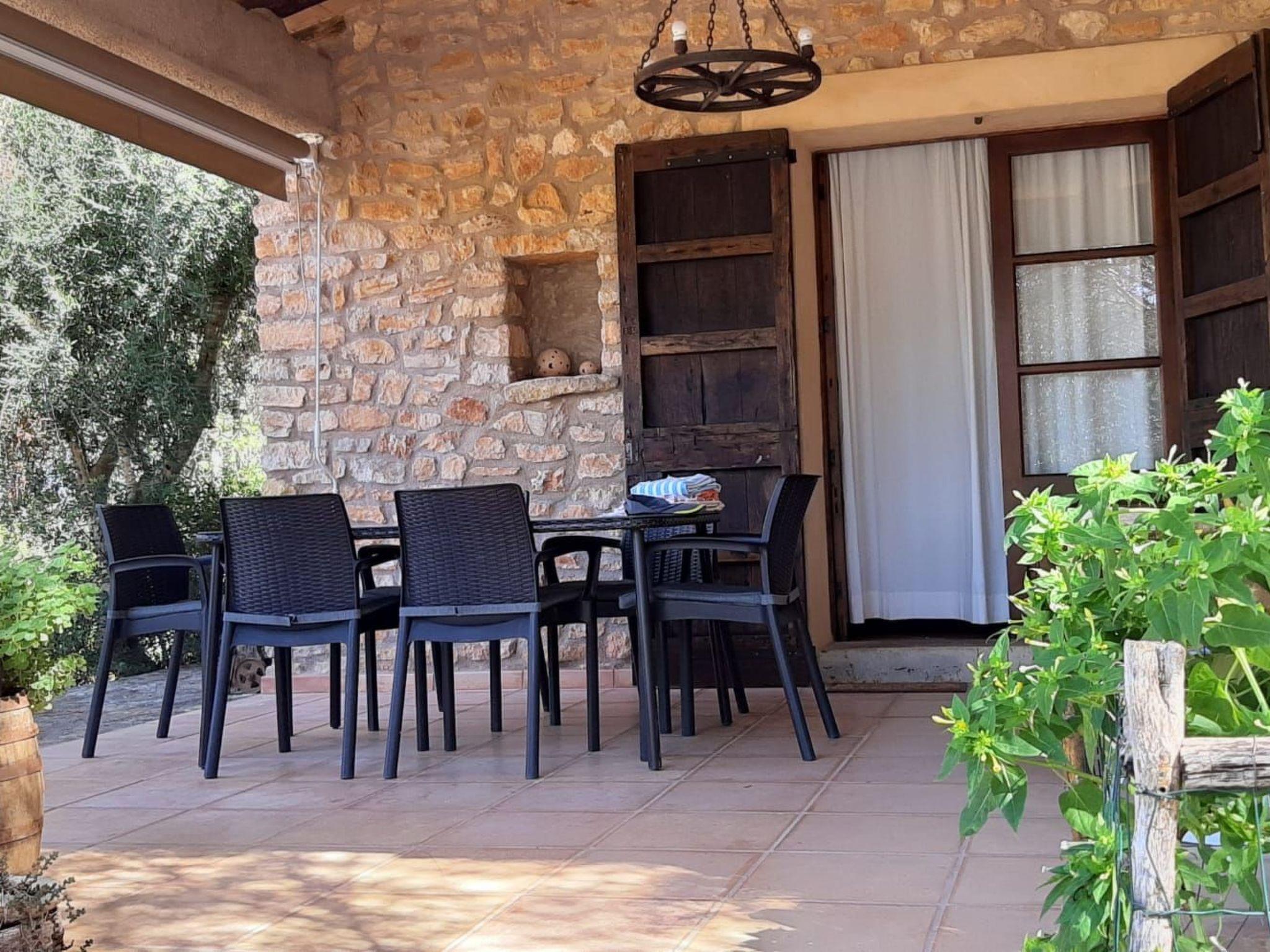 Large outdoor terrace and garden, charcoal and wood barbecue area, with outdoor furniture, where you can enjoy outdoor meals.