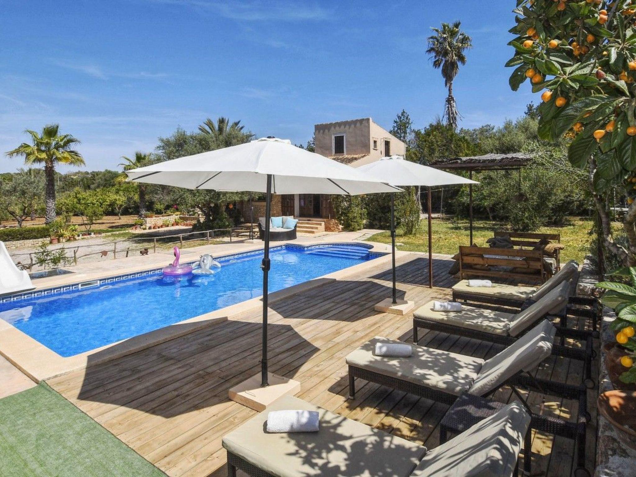 This pretty country estate is located in a wonderfully quiet location close to the town of Manacor, Mallorca's second largest city on the east coast. With a living area of ??around 115 m², the house offers in total three air-conditioned double bedrooms (1 double bed, 2 single beds each) and two bathrooms with shower, so there is enough space for up to 6 people. The living room is equipped with WiFi Internet, satellite TV, an adjacent dining table and the open-plan kitchen is equipped with a ceramic hob, oven, refrigerator, microwave, coffee maker and dishwasher. Two of the bedrooms and a bathroom are located on the ground floor. The third bedroom is accessed via an external staircase to the upper floor, which has its own bathroom with shower. From the entrance of the property there are four steps that go down to the beautiful garden with a covered barbecue and dining table. From here you reach the highlight of the Finca, the adjacent terrace with a covered seating area made of wooden benches, many parasols, corner sofas and of course sun loungers. The private 9m x 4.5m pool (depth 0.90m x 1.90m) invites you to cool off and, behind the pool terrace, there is a hammock between the trees to relax in the shade. Next to the terrace there is also a guest toilet with sink and two outdoor showers. The surroundings of the estate offer plenty of peace and tranquility to relax and in and around the nearest town of Manacor there is a large selection of very good restaurants, golf courses, various shops and supermarkets. The nearest beaches are Mallorca's popular coves in and around Porto Cristo, and Sa Coma and Cala Millor are also just a 10-15 minute drive away. Simply a great and beautiful property for a perfect vacation