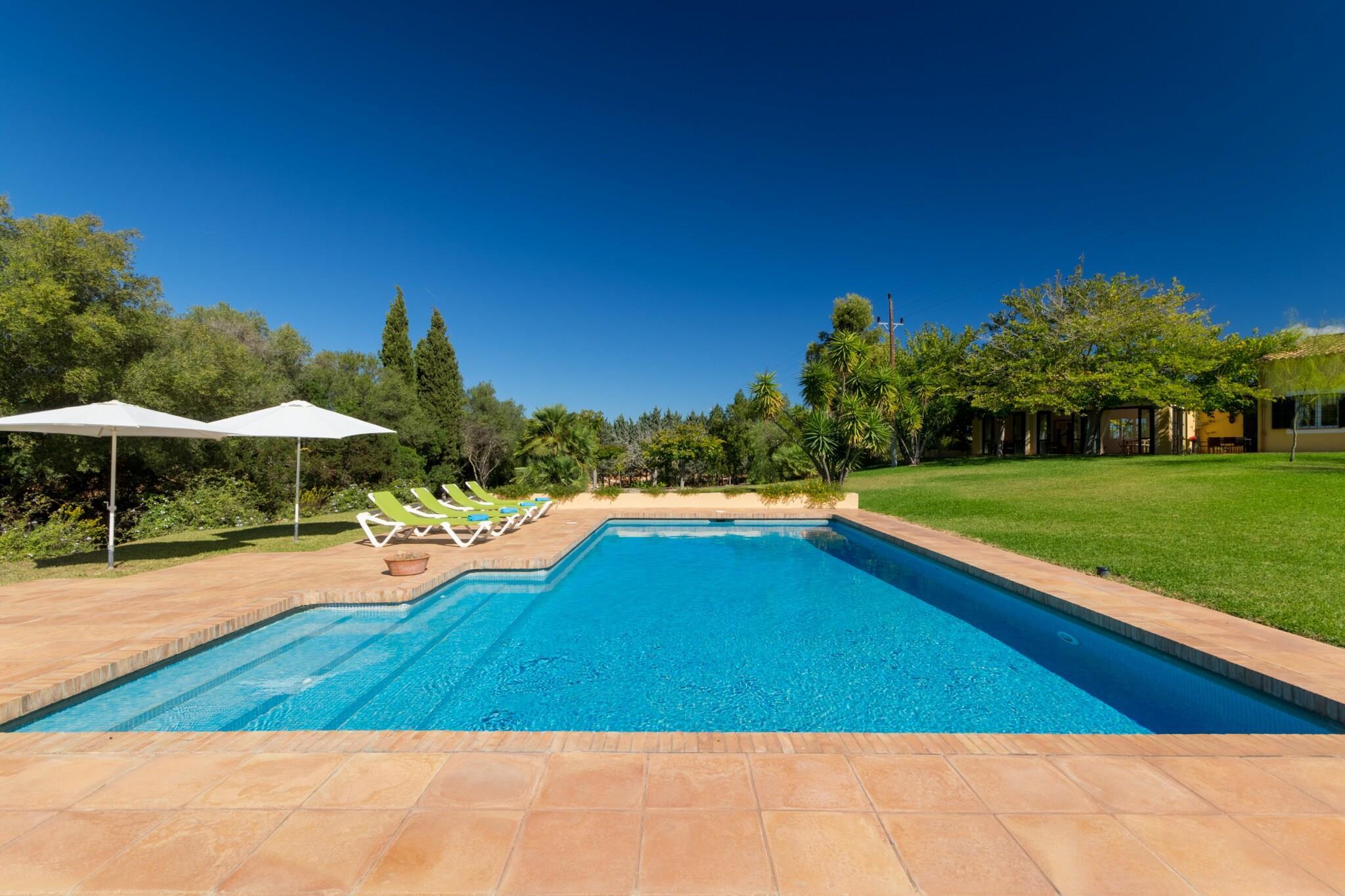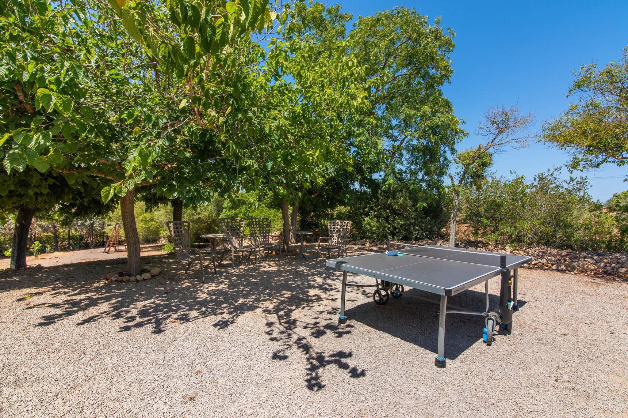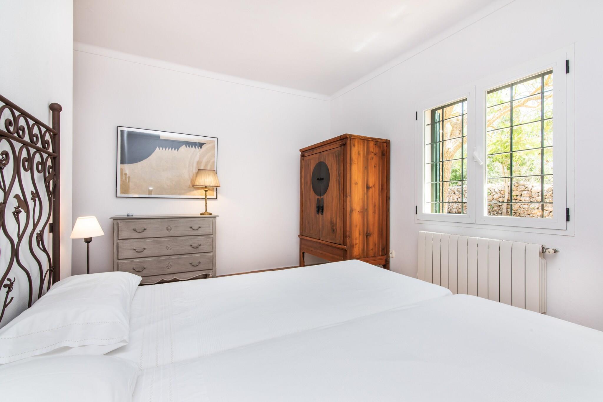 Dette charmerende landsted Sestador Blat tilbyder et roligt tilflugtssted for op til 6 gæster, med 3 smukt møblerede soveværelser og 3 moderne badeværelser. Med aircondition og varme sikrer ejendommen komfort hele året rundt, og en hyggelig pejs tilføjer varme på køligere aftener. Huset er fuldt udstyret med Wi-Fi, satellit-tv og en værdiboks for din bekvemmelighed, hvilket gør det ideelt for familier eller små grupper. Privat parkering er tilgængelig, hvilket sikrer nem adgang til ejendommen. En velholdt have med terrasse og grillplads tilbyder de perfekte rammer for udendørs spisning og afslapning. Dette landsted ligger kun 11 km fra Manacor og giver adgang til lokale attraktioner og faciliteter, herunder supermarkeder, butikker og caféer. Den berømte Majorica-perlefabrik og Rafa Nadal Xperience-museet ligger i nærheden, og tilbyder unikke kulturelle oplevelser. De fantastiske strande i Cala Petita og Cala Morlanda ligger kun 10 minutters kørsel væk. Fincaens indre kombinerer rustik charme med moderne bekvemmeligheder. Det fuldt udstyrede køkken er ideelt til at tilberede måltider, og det rummelige opholdsområde med et hyggeligt bibliotek giver et behageligt sted at slappe af. Soveværelserne er gennemtænkt designet med aircondition, der sikrer en god nattesøvn. Badeværelserne er veludstyrede, og yderligere faciliteter såsom rejsesenge og høje stole er tilgængelige for familier med små børn. Lejelicensnummeret er ETV/1055