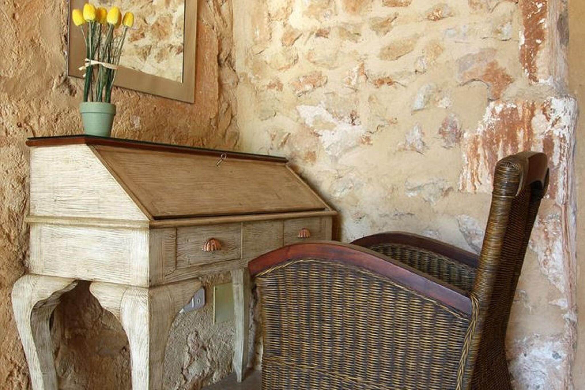 Beliggende nær Porto Cristo, er dette pæne landsted rustikt, funktionelt og fuldt møbleret. Det renoverede landsted i sten er beliggende i et roligt landområde med udsigt til træer og bakker. Huset har to etager. Du har adgang til et fuldt udstyret, moderne køkken og 4 soveværelser. Huset har aircondition; ideel i de varme somre! På øverste etage finder du en stor solterrasse. Du kan slappe af i den store hyggelige have med græsplæne. Her kan du slappe af i det fri. Eller tag en forfriskende dukkert i poolen efter at have spillet et spil bordtennis. I dette naturlige miljø kan katte også strejfe på ejendommen. Kysten ligger 4 km væk. Porto Christo er en hyggelig havneby med en lille strand. Om aftenen kan du slentre gennem gaderne her.I nærheden af Porto Christo finder du drypstenshulerne "Cuevas dels Hams".En tur til den smukke hovedstad Palma, med dens smukke katedral og historiske centrum, skal selvfølgelig ikke være savnet.