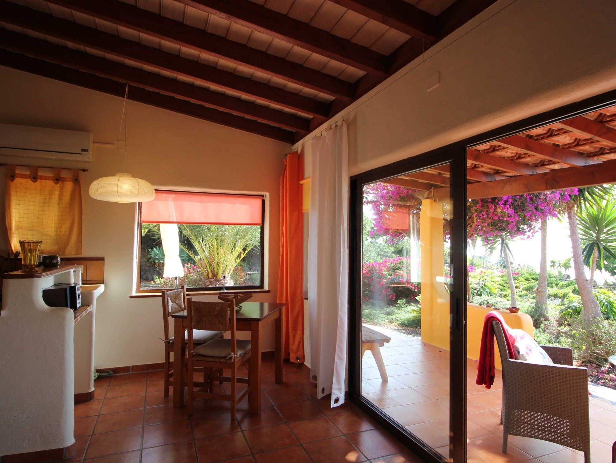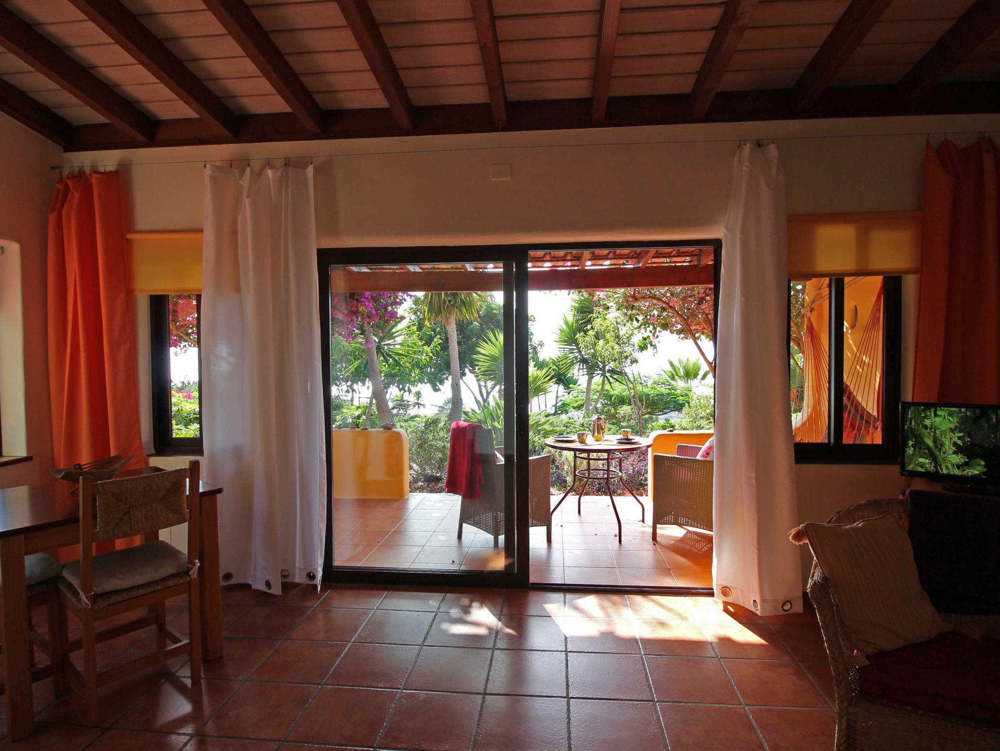 Die Räume sind sehr geschmackvoll und individuell eingerichtet. Der Wohnraum hat einen abgetrennten Küchenbereich, eine Essecke sowie eine gemütliche Sitzecke. Durch die großen Glasschiebetüren hat man auch von innen einen wunderbaren Blick auf das Meer.
