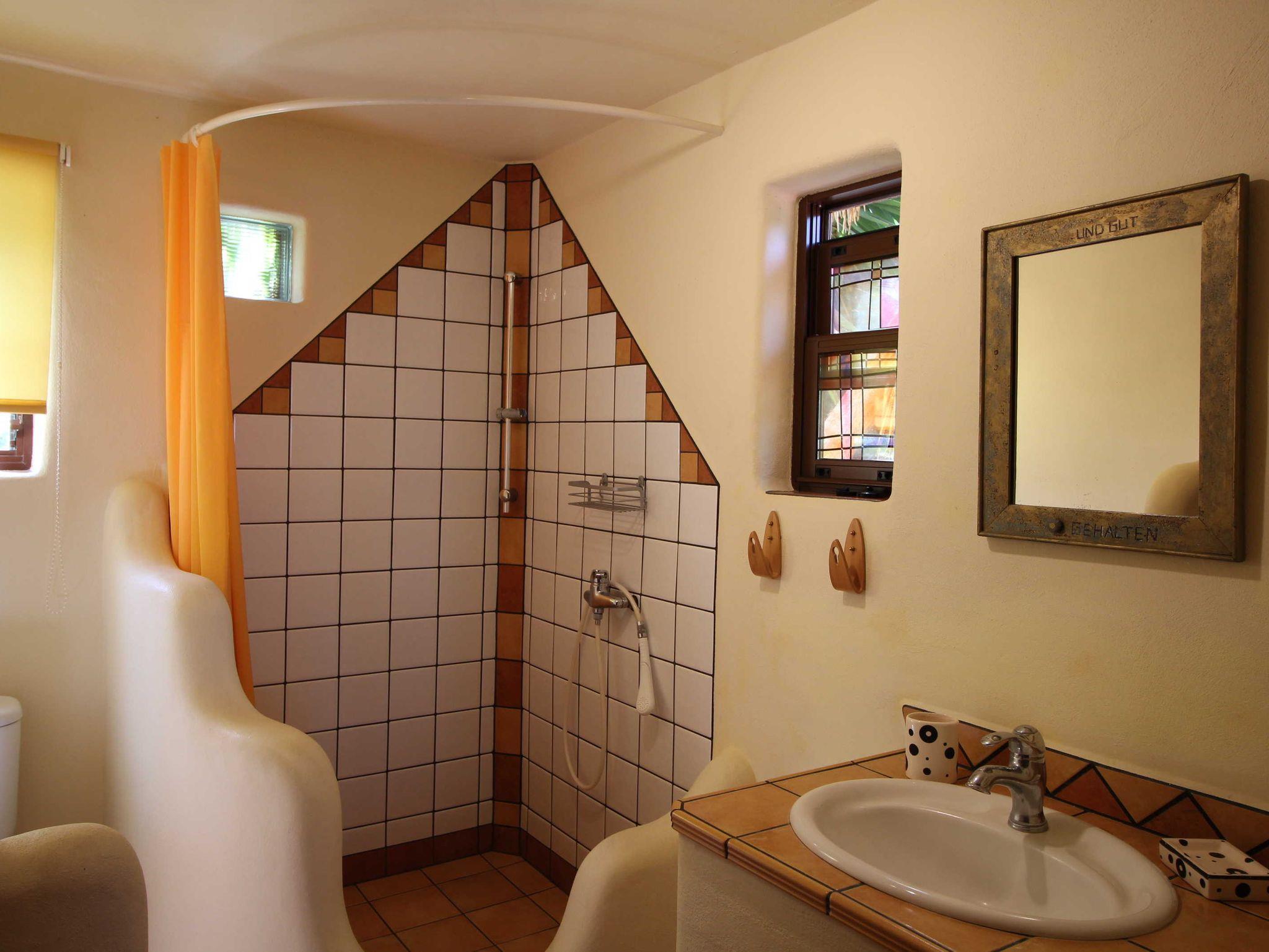 Besonders schön sind die Bäder, die mit organischen Formen künstlerisch gestaltet sind.