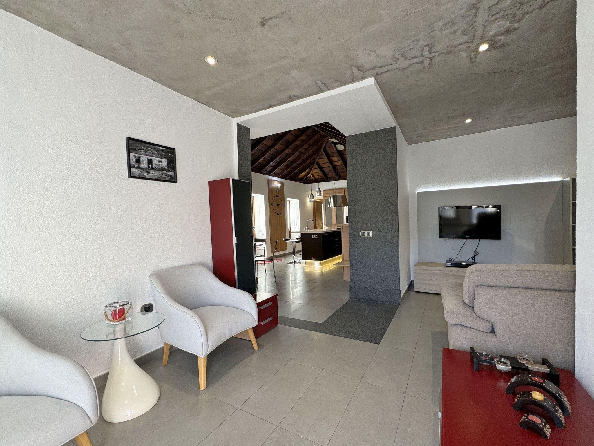 Es handelt sich um eine hochwertig renovierte und modern eingerichtete altkanarische Finca mit etwa 100 m² Wohnfläche. Das Anwesen befindet sich auf einem großzügigen, eingezäunten Grundstück von ca. 2300 m²