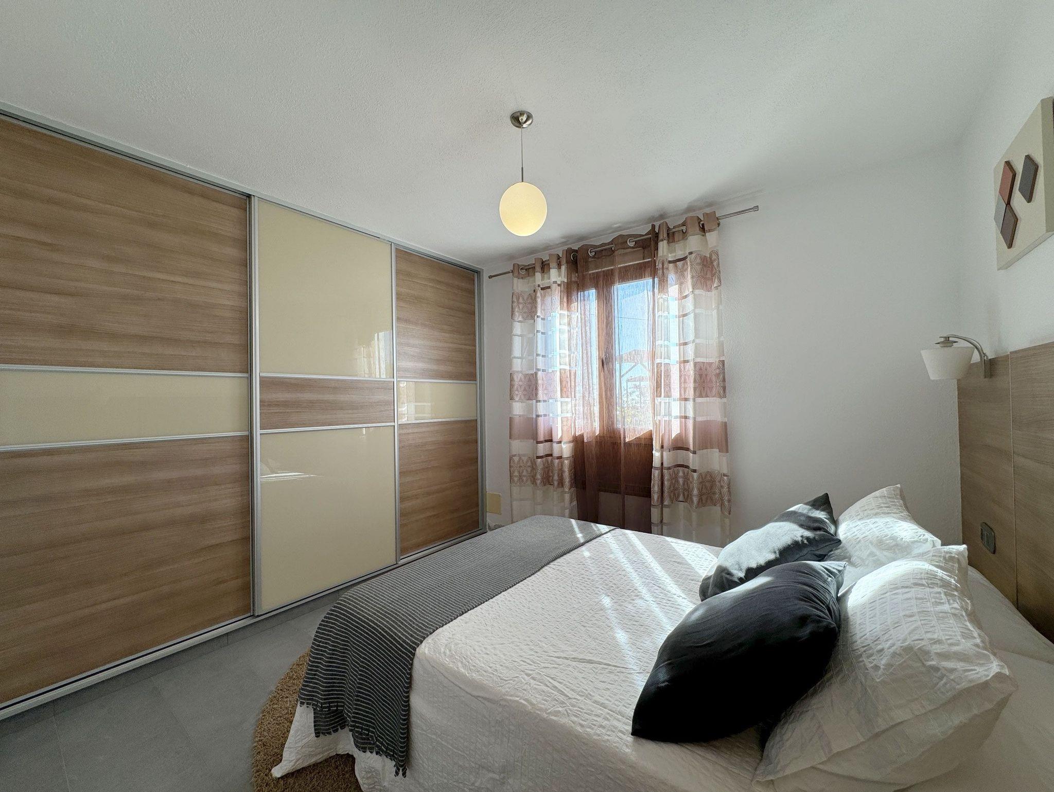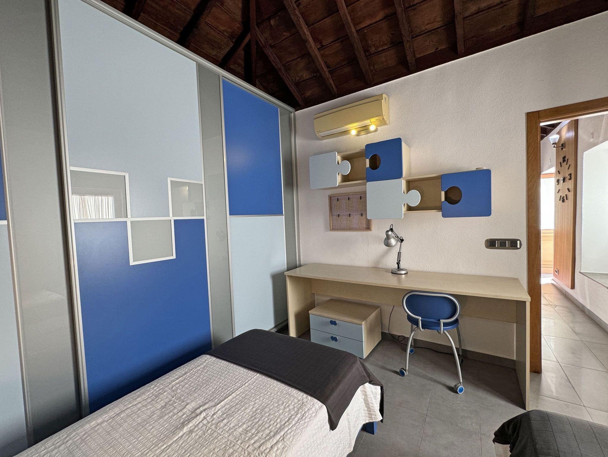 Die Schlafmöglichkeiten verteilen sich auf zwei Schlafzimmer. Das erste Zimmer ist mit einem Doppelbett (135 cm x 190 cm), Nachttischen, Schrank, Kommode und Klimaanlage ausgestattet. Im zweiten Zimmer finden sich zwei Einzelbetten (je 90 cm x 190 cm), ein Nachttisch, Schrank, Schreibtisch und ebenfalls eine Klimaanlage.