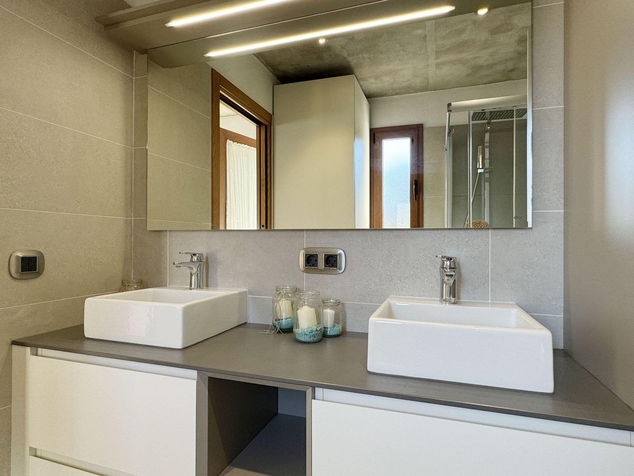 • 1 Bad mit 2 Waschbecken, ebenerdiger Dusche und WC