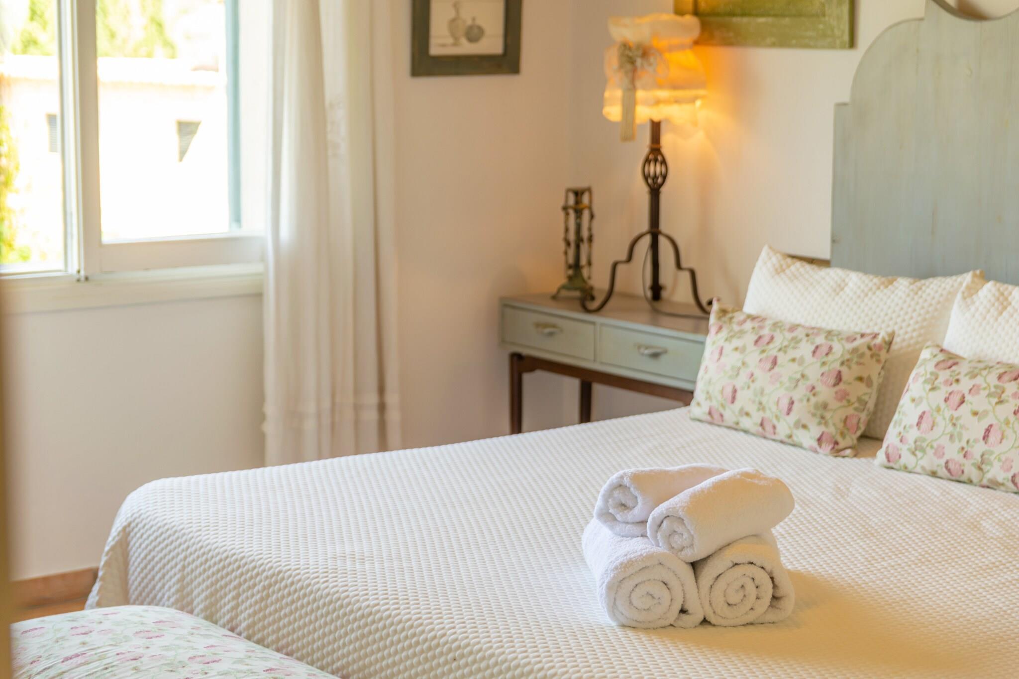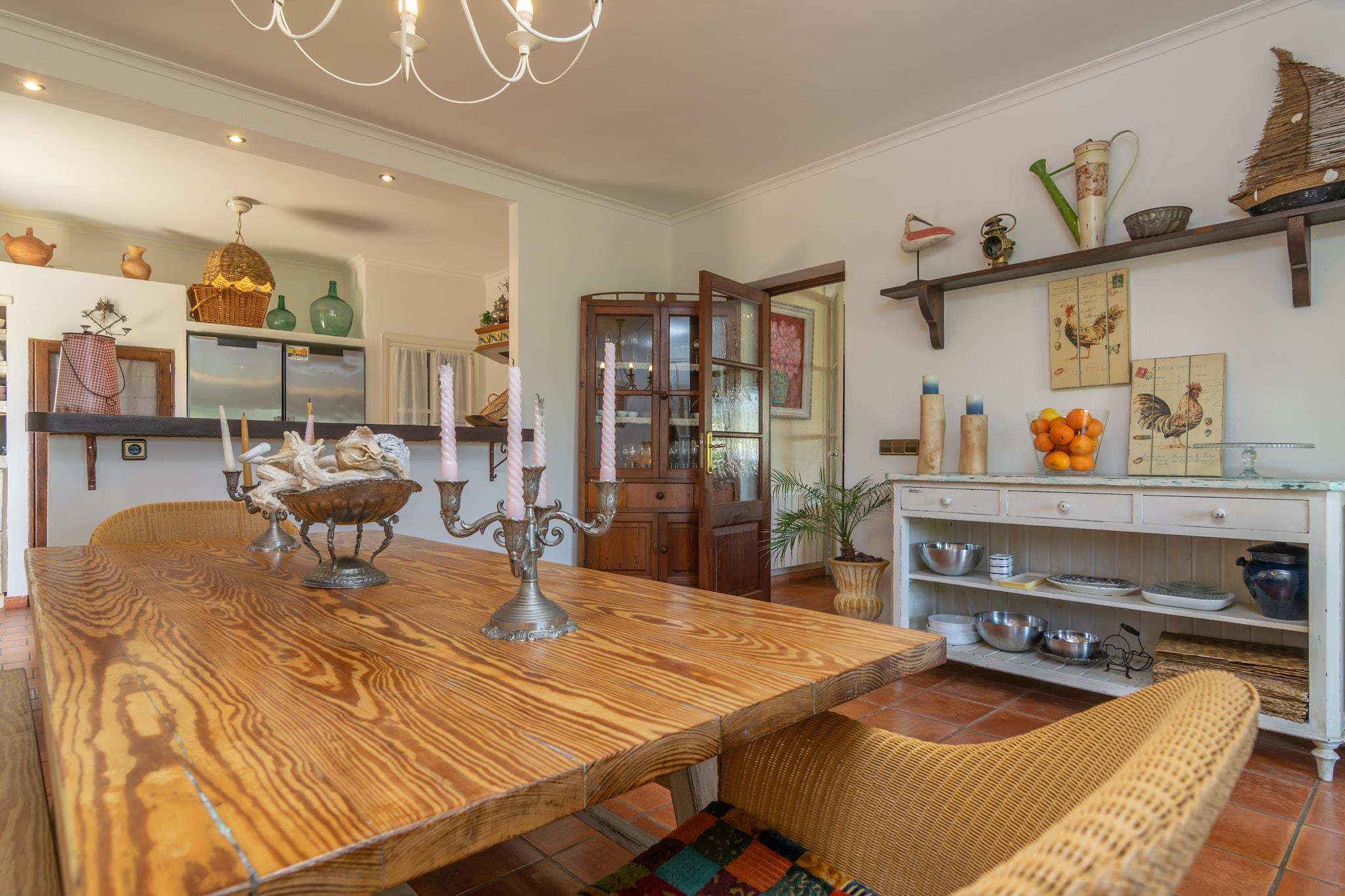 De buitenkant van het huis is erg mooi. Opvallend is de verzorgde tuin met privé chloorzwembad van 11 x 6 meter en een diepte variërend van 1 tot 2,1 meter. De comfortabele ligstoelen zijn ideaal om te ontspannen in de zon na een verfrissende duik. Op de veranda van het huis kunt u heerlijk in de schaduw zitten en nagenieten van een heerlijke barbecue uw maaltijd verlengen. Het terrein is omheind en er zijn buren in de buurt. Het huis met 2 verdiepingen heeft een charmante klassieke stijl. De grote eetkamer geeft via grote ramen toegang tot de veranda. De keuken heeft tevens een meer informele eethoek en is voorzien van inductie. Er is ook een wasmachine, strijkijzer en strijkplank. De begane grond wordt gecompleteerd door een badkamer met ligbad en twee slaapkamers, één met een tweepersoonsbed en de andere met twee eenpersoonsbedden. Op de eerste verdieping hebben we nog een mooie kamer met satelliet-tv, een badkamer met ligbad en nog 2 slaapkamers, beide met een tweepersoonsbed en één met een en-suite badkamer met douche. De 4 slaapkamers zijn voorzien van airconditioning en het huis heeft centrale verwarming op olie. Ten slotte kunnen wij u voorzien van een wieg en een kinderstoel als u met uw baby reist. Mancor de la Vall is een prachtig stadje aan de voet van de bergen dat de basisvoorzieningen voor uw verblijf biedt. In de stad Inca, op 5 km afstand, vindt u meer winkels en diensten, evenals een traditionele markt die elke donderdag plaatsvindt. Mancor is het perfecte startpunt voor excursies zowel te voet als per fiets, bijvoorbeeld naar Santa Lucía, Lluc, Ses Fonts Ufanes of de prachtige grotten van Campanet. En als u een strand wilt, ligt het dichtstbijzijnde op 30 km afstand, het paradijselijke strand van Puerto de Alcúdia. Voor eventuele extra kosten kunt u contact opnemen met de adverteerder. Wij accepteren geen huisdieren. Het vieren van evenementen is niet toegestaan. Er is buiten parkeergelegenheid voor 2 auto's. Afstanden Strand: 30,1 km - Port d'Alcúdia Luchthaven: 41,2 km - Palma de Mallorca Golfbaan: 26 km - Pollença Stad: 0.350 km - Mancor de la Vall Treinstation: 5,3 km - Inca Bushalte: 0,240 km - Mancor de la Vall Veerboot: 38 km - Palma de Mallorca Ziekenhuis: 6,7 km - Comarcal d'Inca-ziekenhuis Toeristenvergunning: ETV/3254Bij de ingang moet u de Ecotasa (toeristenbelasting van de Balearen) contant betalen. Het bedrag varieert tussen EURO 0,55 / per nacht per persoon in het laagseizoen en EURO 2,2 / per nacht per persoon in het hoogseizoen. Vanaf de negende dag wordt het met de helft verminderd. Personen onder de 16 jaar uitgesloten. Verwarming (januari - december): 1,30 EUR/liter (optioneel)