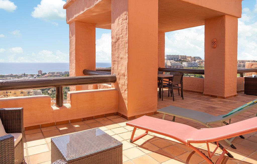 Glæd dig til denne rummelige og eksklusive ferielejlighed med en fantastisk havudsigt. Tilbring en uforglemmelig ferie i dette komfortable feriehus med en udvalgt og harmonisk indretning, hvor du kan føle dig godt tilpas og hjemme. Lejlighedens elegance inviterer din familie eller vennepar til at slappe af i sofaerne eller nyde aftenen på den store tagterrasse. Saml til vidstrakte middage med havudsigt, og planlæg dine aktiviteter. Lejlighedskomplekset byder på en dejlig fælles pool til en hurtig nedkøling. Tag en dukkert og solbad på din private tagterrasse. Til fods eller i bil kan du hurtigt nå den brede sandstrand, hvor du kan hoppe i Middelhavets bølger og samle skaller. Golfspillere finder en indbydende golfbane i umiddelbar nærhed af lejligheden, som strækker sig næsten til stranden. Kystens bagland lover naturelskere og aktive feriegæster de bedste betingelser for vandreture og mountainbiking. Oplev en varieret ferie i Andalusien!