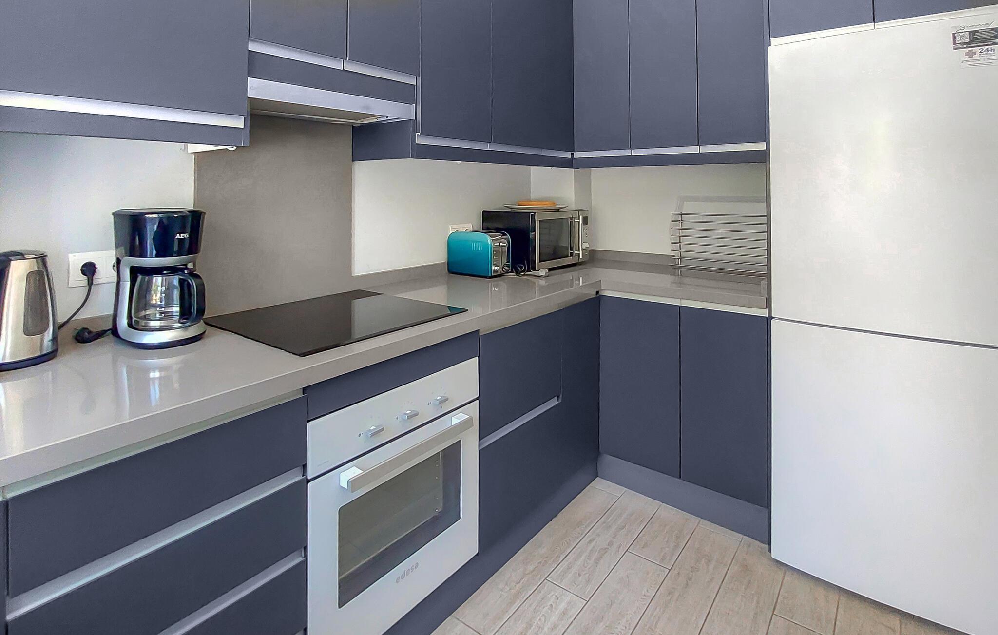 Fra balkonen kan I nyde en betagende havudsigt, som gør hver morgen til en særlig oplevelse. Nærheden til stranden og de fælles pools i komplekset sikrer, at I altid kan vælge mellem forfriskende badeglæde og afslappende stunder i jeres stilfulde bolig.