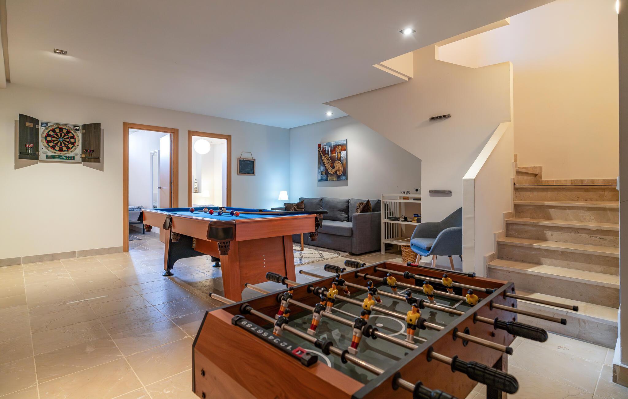 Hold en afslappende ferie i dette stilfulde feriehus i Manilva, som er noget helt særligt på grund af sin moderne indretning og komfortable faciliteter. Det lyse, luftige interiør lægger op til at nyde livet og have det rart, mens altanen og den rummelige tagterrasse med havudsigt giver jer en magisk udsigt hver morgen. På nederste etage er der et spillelokale med billard og bordfodbold, optimal til at underholde med familien. Det velholdte boligkompleks byder også på en indbydende fælles pool, perfekt til forfriskende pauser ind imellem.