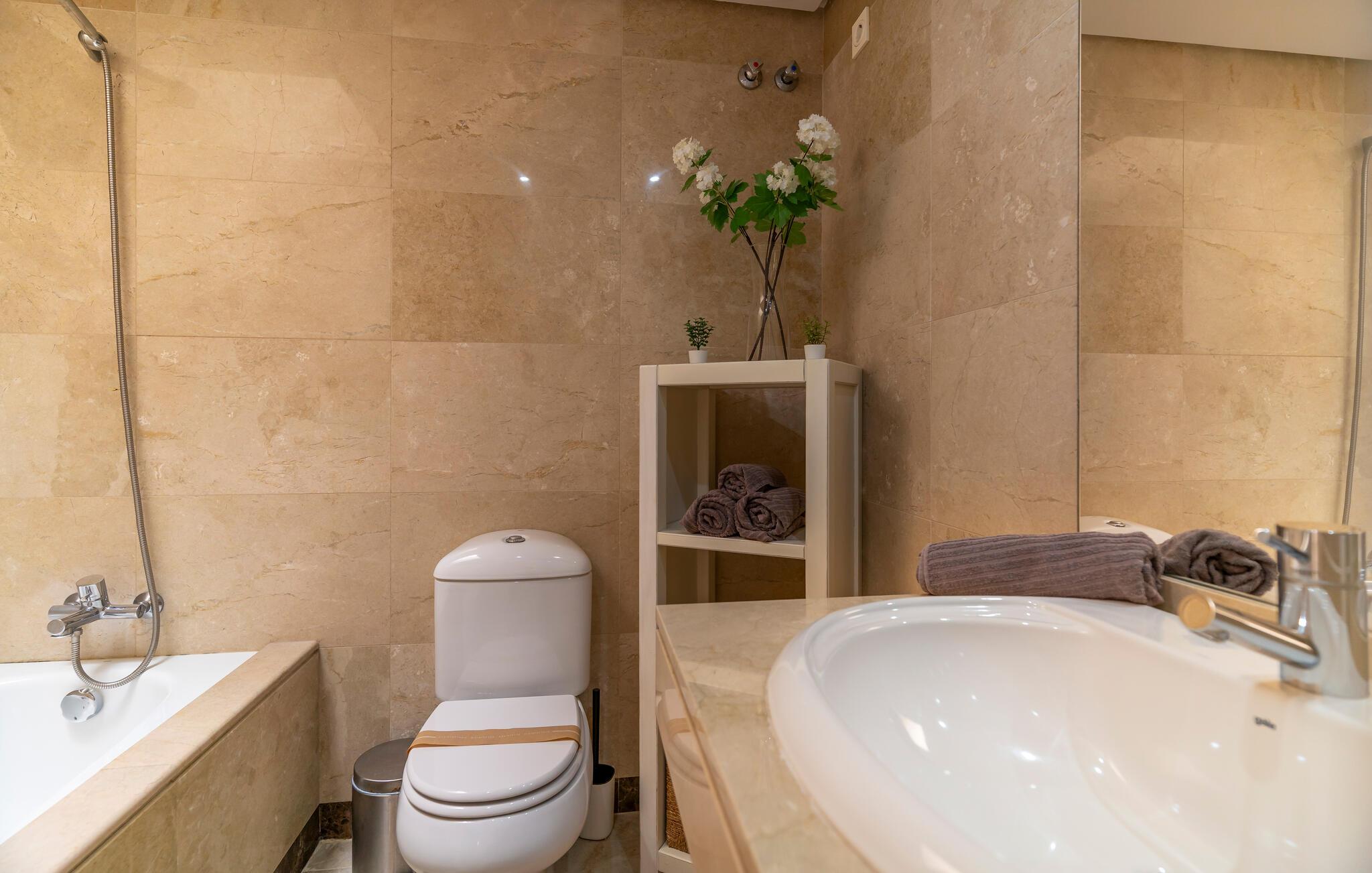 Denne indbydende lejlighed lover en afslappende pause fra hverdagen. Et lyst opholdsrum, muntre farver og moderne møbler skaber en atmosfære, hvor I hurtigt kan slappe af og nyde livet. Uanset om I snakker over en kop kaffe, tilbereder lækre måltider sammen eller lytter til afslappende musik, sætter I selv tempoet for dagen her.