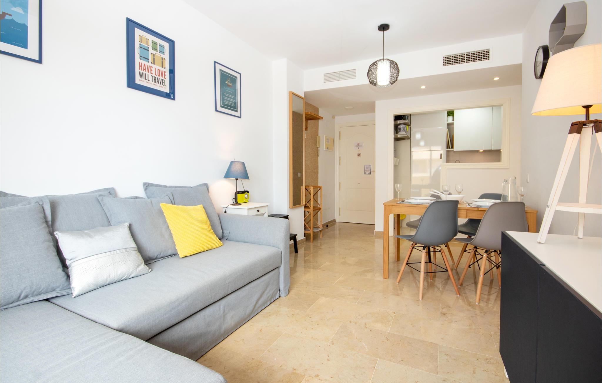 Komplekset ligger kun 5 minutters kørsel fra byen Sabinillas, hvor I finder butikker, banker, restauranter og barer. Efter et par minutters gang kan I også nå stranden. I komplekset kan I bruge den fælles pool med børnebassin.