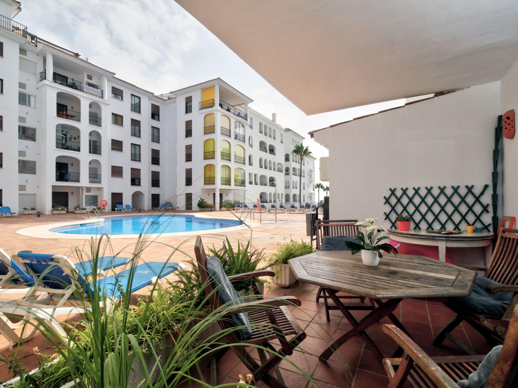 The building has two swimming pools, one of them is 5 metres from the terrace, as it is on the ground floor, both the living room and the bedroom are directly overlooking the pool, which is very comfortable. It has free sunbeds for private use. From the second pool you have direct access to the beach and promenade, being also a few meters from the marina of La Duquesa where you will find all kinds of restaurants, bars, cafes and everything you need for a pleasant stay.