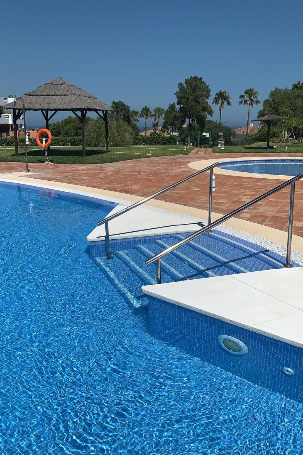 Superb 5-person flat with magnificent sea views in a fully fenced and secure estate, access to which is scrupulously controlled by a 24-hour security guard. In the heart of the Golf de la Duquesa, the property boasts vast and sumptuous gardens covering 20.000m2, ponds, three swimming pools (freshwater, 2 OF WHICH ARE EQUIPPED WITH HYDRAULIC SEAT FOR DISABLED PERSONS AND WHEELCHAIR ACCESS) with sun loungers and showers, with lifeguards on duty (in high season), a paddle court, a mini-soccer pitch, a petanque pitch, a barbecue area and a playground for children Apartment: 98m2, Hall, Living room - dining room - kitchen - laundry room - night hall - two full bathrooms (1 en suite with whirlpool bath, 1 with shower) - 20m2 terrace - garage