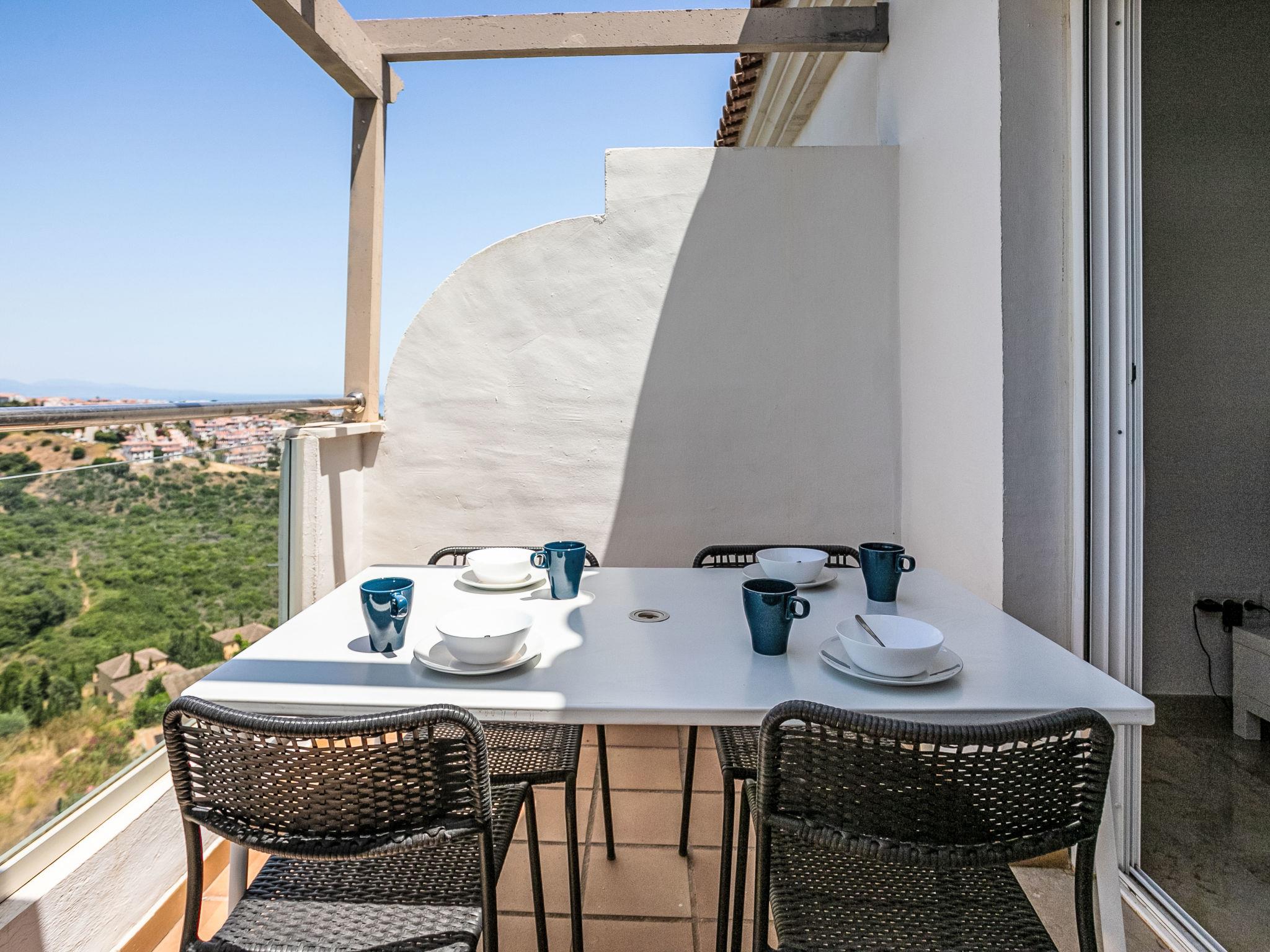 "Small Oasis Manilva", 3-room apartment 71 m2 on 1st floor. Comfortable and beautiful furnishings: living/dining room 14 m2 with digital TV and international TV channels. Exit to the terrace. 1 room 10 m2 with panoramic window with 2 beds (90 cm, length 200 cm). 1 room 10 m2 with 1 french bed (200 cm, length 200 cm), bath/WC. Open kitchen in the entrance 5 m2 (oven, 4 ceramic glass hob hotplates, 4 induction hot plates, toaster, kettle, microwave, electric coffee machine). Shower/WC. Terrace. Terrace furniture. View of the sea. Facilities: washing machine, iron, children's high chair, baby cot, hair dryer. Internet (WiFi, free). Parking. Please note: non-smokers only. Smoke alarm, fire extinguisher. VUT/MA/54430 // Reg. Nr.: ESFCTU0000290400003987190000000000000000VUT/MA/544309