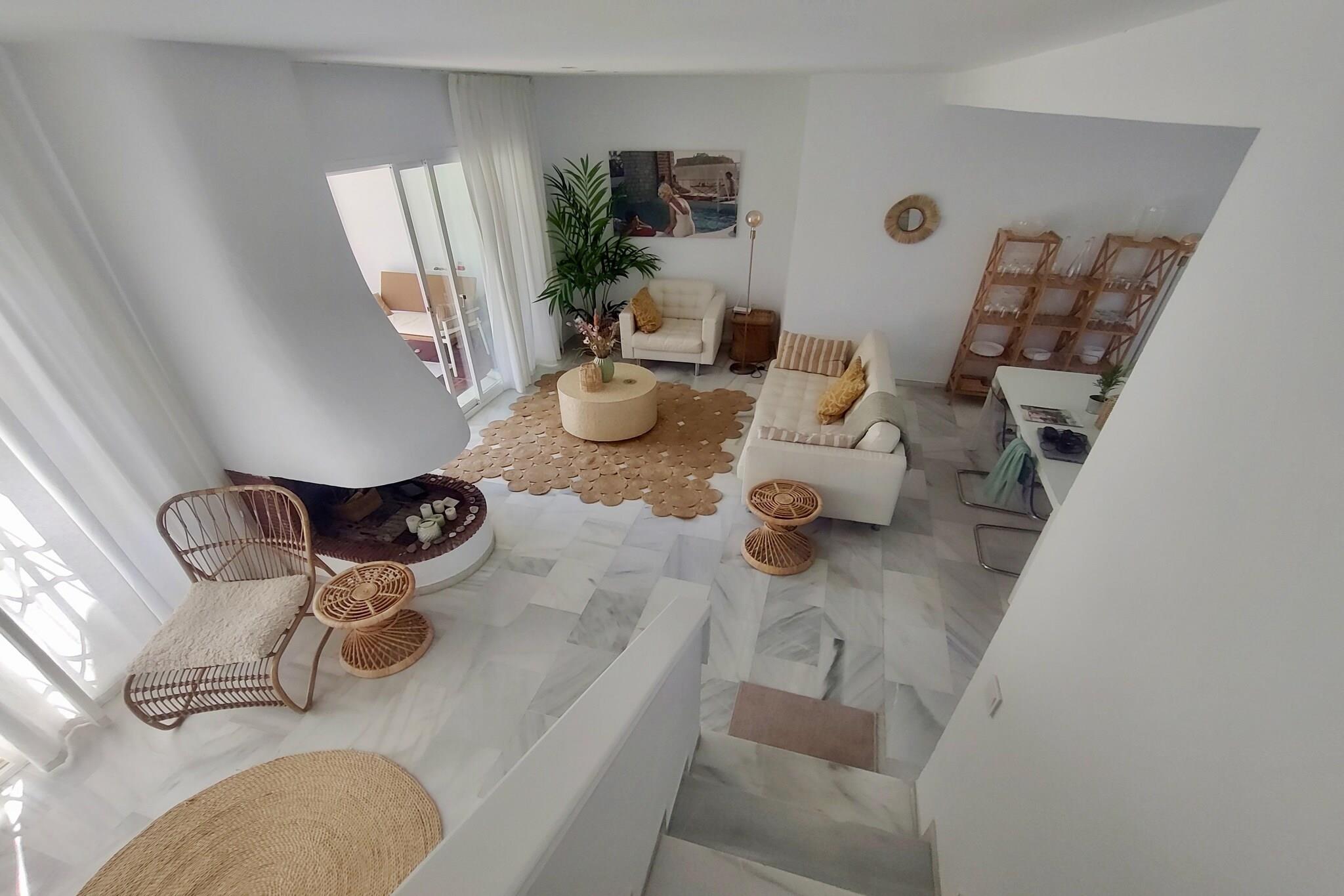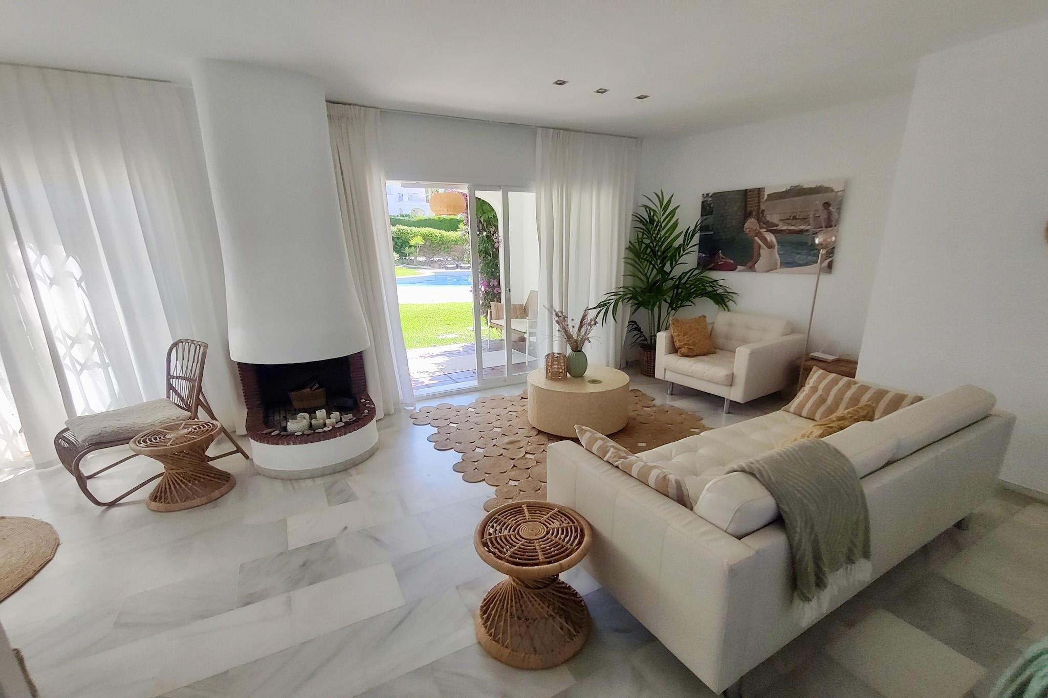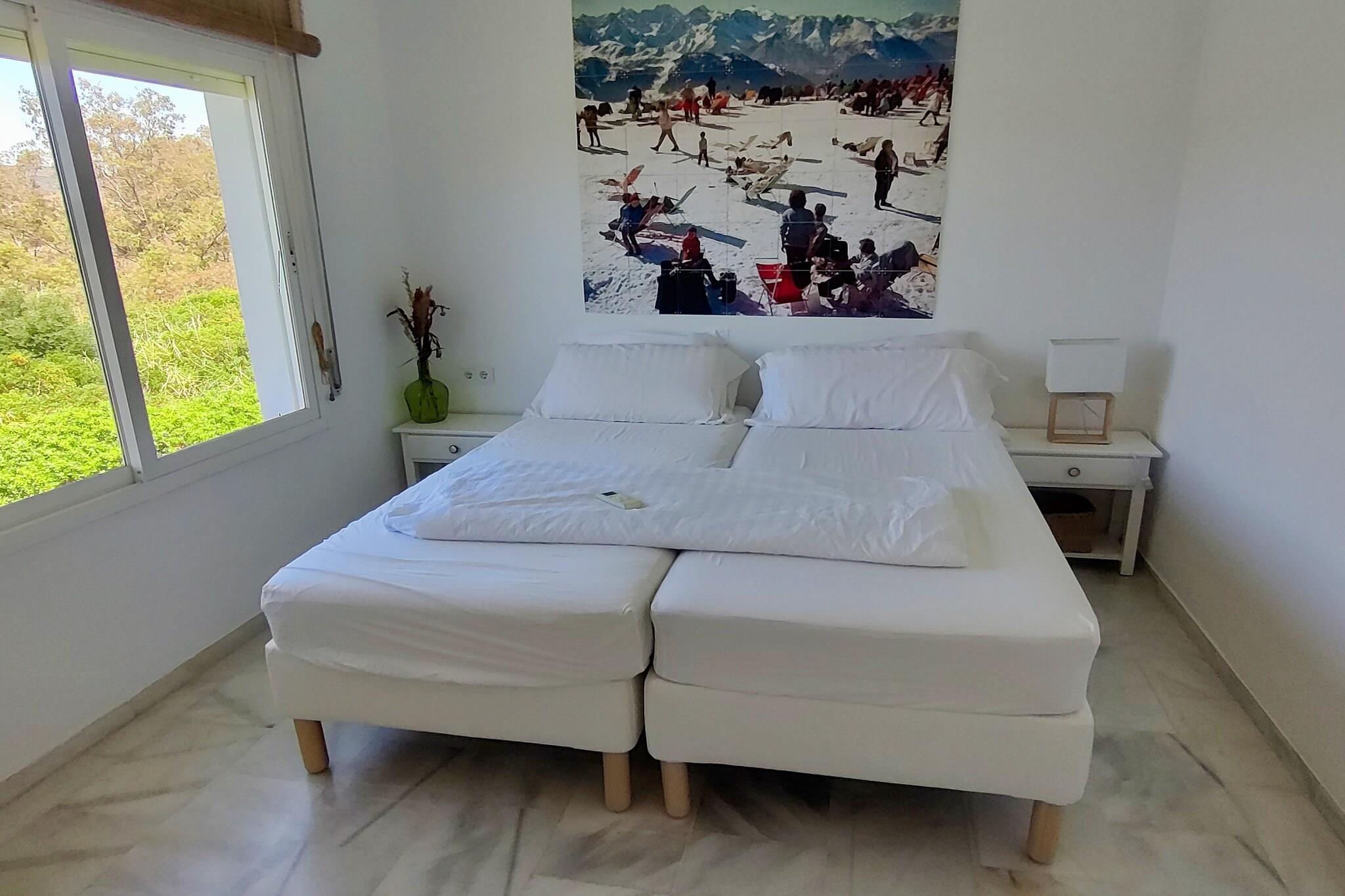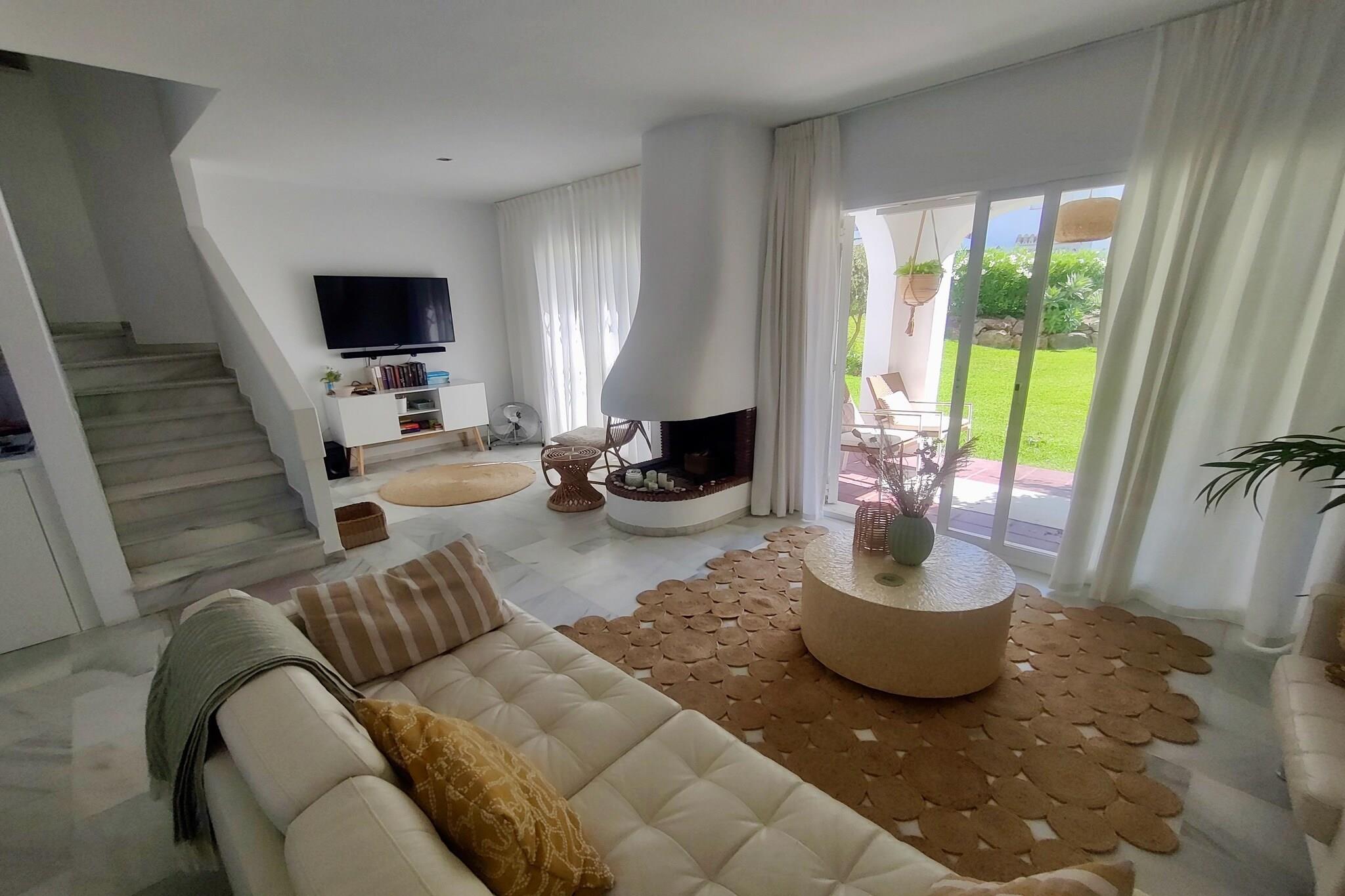 Golfentusiaster, vær opmærksomme! Dette feriehus ligger tæt på La Duquesa Golf, et smukt golfresort nær havet, der er velegnet til alle niveauer. Og inden for en radius af 20 minutters kørsel ligger mindst 7 andre golfresorts, og regionen kaldes også "Costa del Golf". Det moderne og komfortabelt indrettede feriehus ligger i et lille kompleks og har udsigt over et solbadningsområde, næsten "lige uden for døren"! Ønsker du mere privatliv, kan du nyde solen på en af liggestolene på tagterrassen. Og brede (sand)strande ligger mindre end 2 km væk. Stranden kan endda nås inden for gåafstand via en gangbro. Huset ligger tæt på havnen Puerto de La Duquesa, hvor du finder hyggelige restauranter og barer. Den maleriske by Estepona ligger ca. 20 minutters kørsel derfra, hvor du kan slentre gennem de farverige gader og finde hyggelige butikker og lækre restauranter. Bemærk: Swimmingpoolen er nu åben for gæster indtil videre.