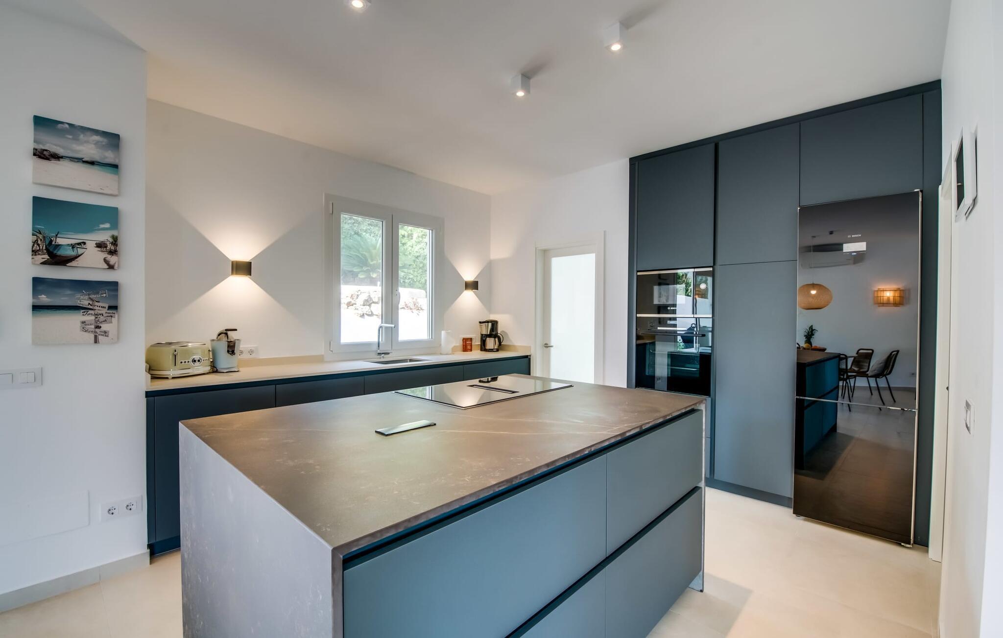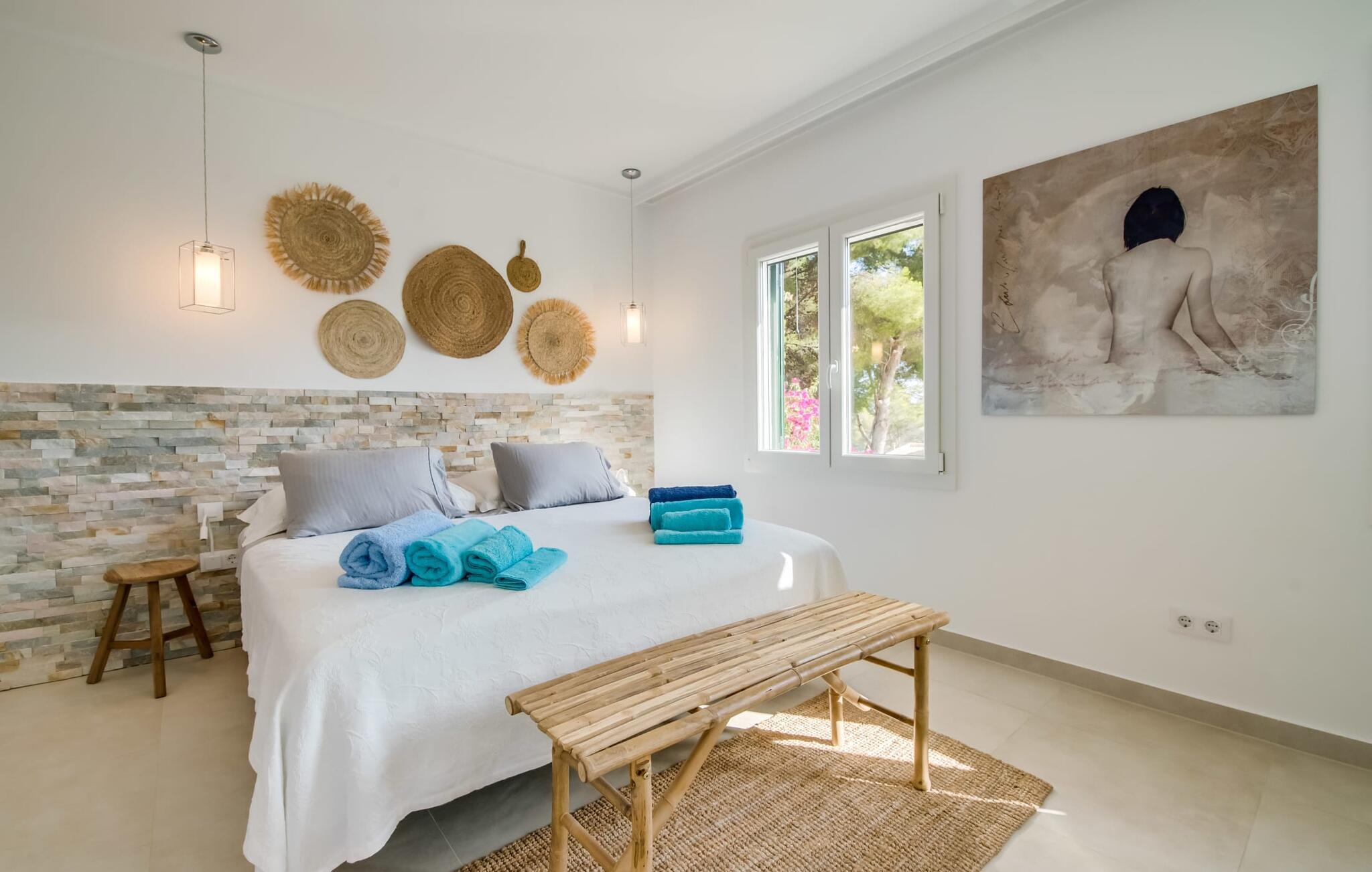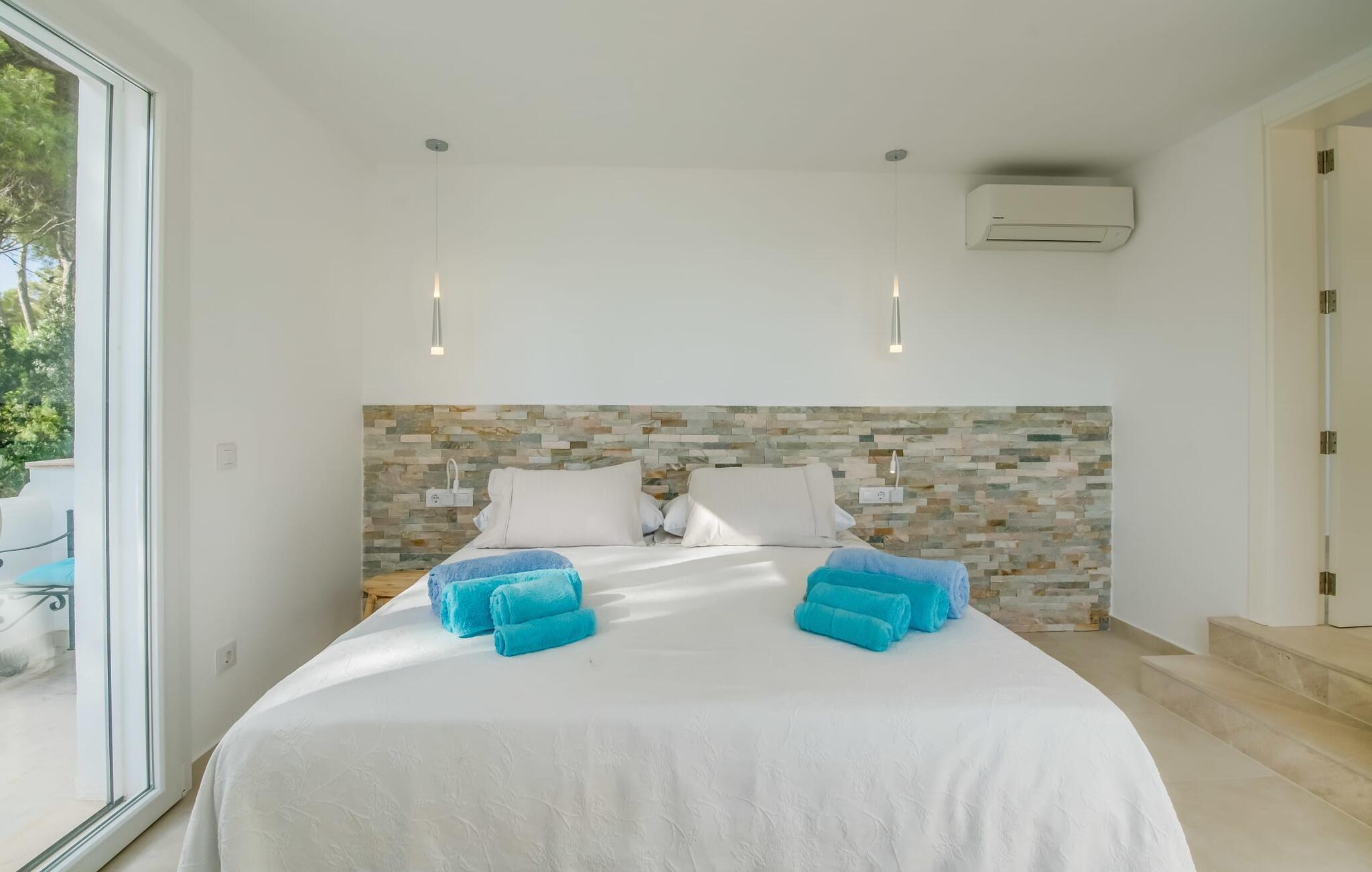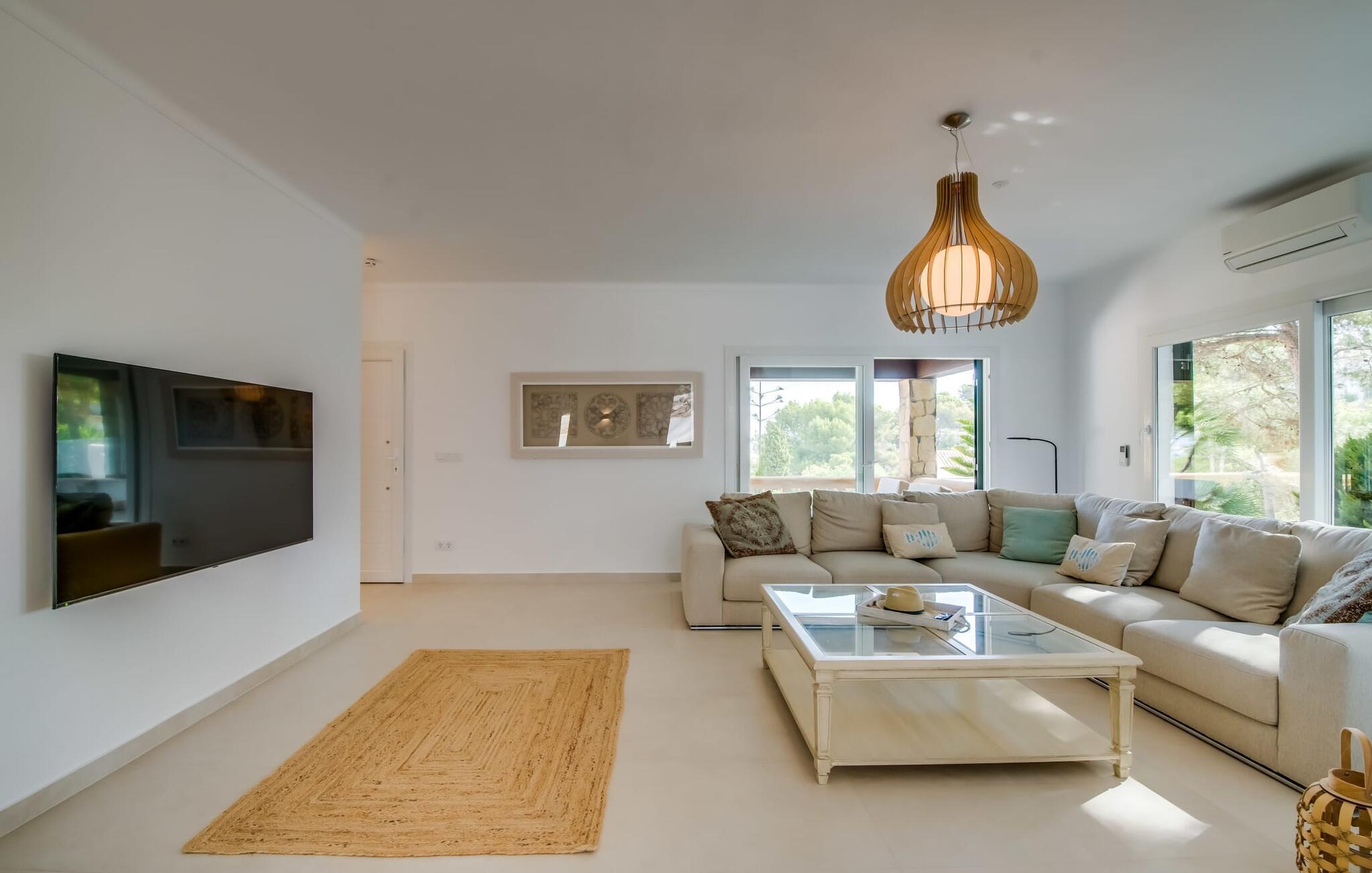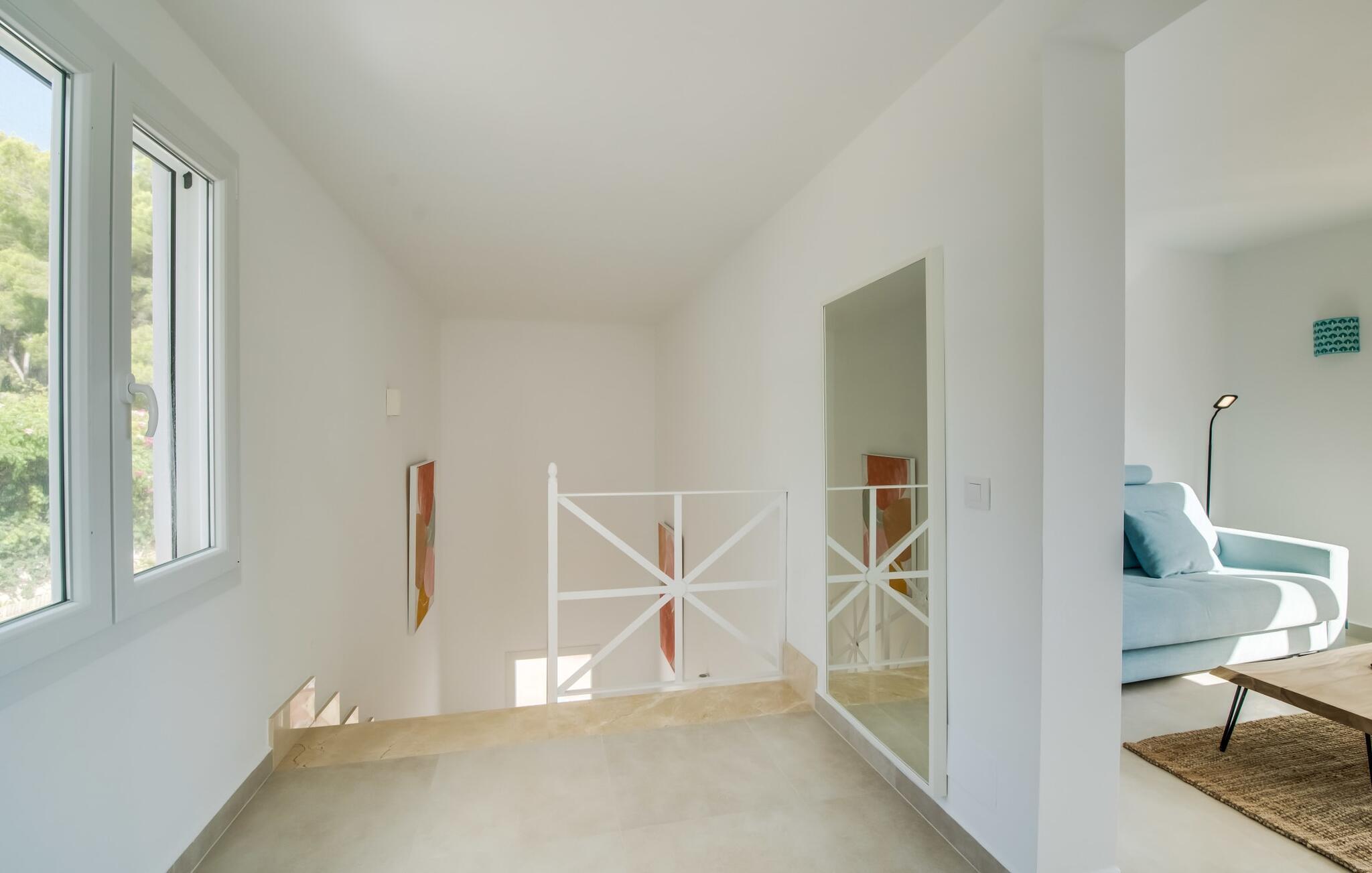 Hvid, terracotta, blå - det er de dominerende farver, der kendetegner villaens ydre med det melodiøse navn "Mar Bella Nou". Lader man blikket vandre over den velholdte urbanisering fra de talrige siddepladser og kigger mellem de løse bygninger og de fyrretræsklædte klipper, går denne farvesammensætning også i andre objekter. Horisonten er omkranset af havets endeløse blå. Udover de bekvemmeligheder, som den absolutte nærhed til stranden byder på, tilbyder udendørsområdet dig også en perfekt terrasseindretning med talrige tilbagetrækningsmuligheder. Hvad venter dig under din ferie i dette førsteklasses sommerhus? Afslapning ved den murede pool med børnevenlig adgang, afslapning på de komfortable liggestole, grill på sideterrassen eller socialt samvær på den lidt højere loungeveranda eller tagterrasse - alt sammen med en vidunderlig havudsigt. Dette er et Fincallorca feriehus. En klassiker udefra, den smukt beliggende feriebolig har en frisk indretning. Stilen er en berusende blanding af stilfuldt enkelt og puristisk, bæredygtig smag inden for rammerne af et harmonisk farvespil. Det åbne boligkoncept i stueetagen for de funktionelle områder at spise, leve og lave mad er imponerende. Strandstil i spise- og opholdsstuen møder et mørkt industrielt look i køkkenet med en kogeø og udstyr af høj kvalitet i apparatområdet. Huset er ideelt til to generationer eller familier. Op til seks personer kan bo komfortabelt i tre dobbeltværelser (hver seng har to 90 cm brede madrasser). Et særligt højdepunkt er det tredje soveværelse på øverste etage, som kan nås via en intern eller alternativt en ekstern trappe. Med sit eget tekøkken, en ekstra stue, det andet walk-in brusebad og en tagterrasse bliver afslapningsområdet et studie med luksuriøs autonomi. Afslapning med en afslappet designtilgang ved havet ikke langt fra byen - hvis det er det, du leder efter, er du kommet til det rigtige sted på "Mar Bella Nou"! Den familieorienterede designvilla "Mar Bella Nou" har et poolområde, et terrasseret udendørsområde og masser af overbevisningskraft. Det smukke feriehus er beliggende i den eksklusive urbanisering Provensals, nær Sa Font de Sa Cala. Der kan du gøre dine daglige ærinder eller besøge det ugentlige marked i det nærliggende Capdepera. Kun 240 m adskiller dig fra havet. I dette paradisiske område vil du opdage forrevne klippekyster og smukke sandstrande.