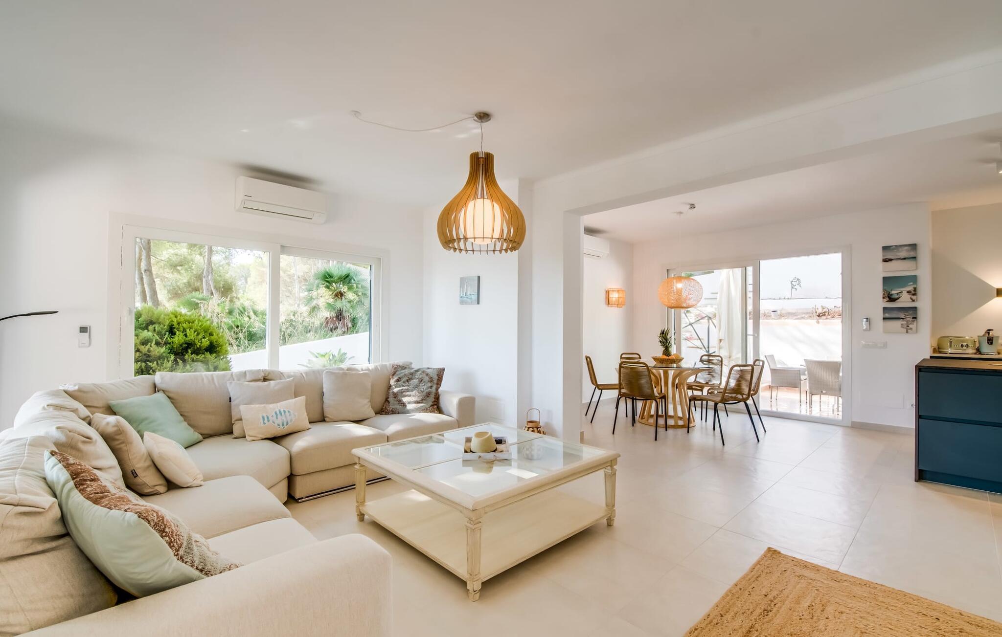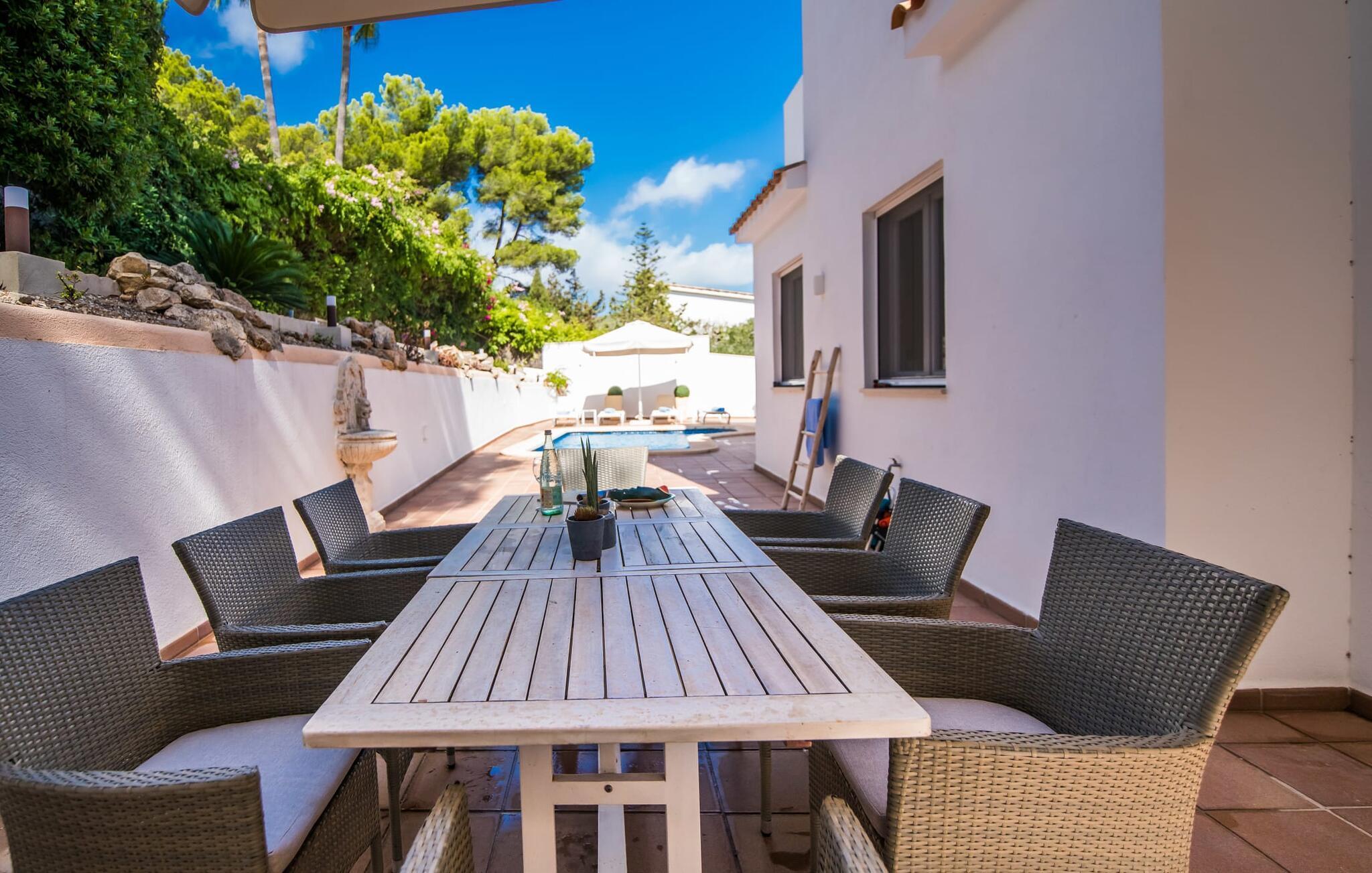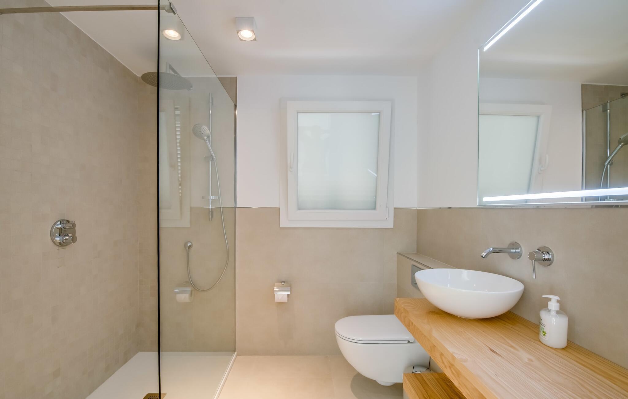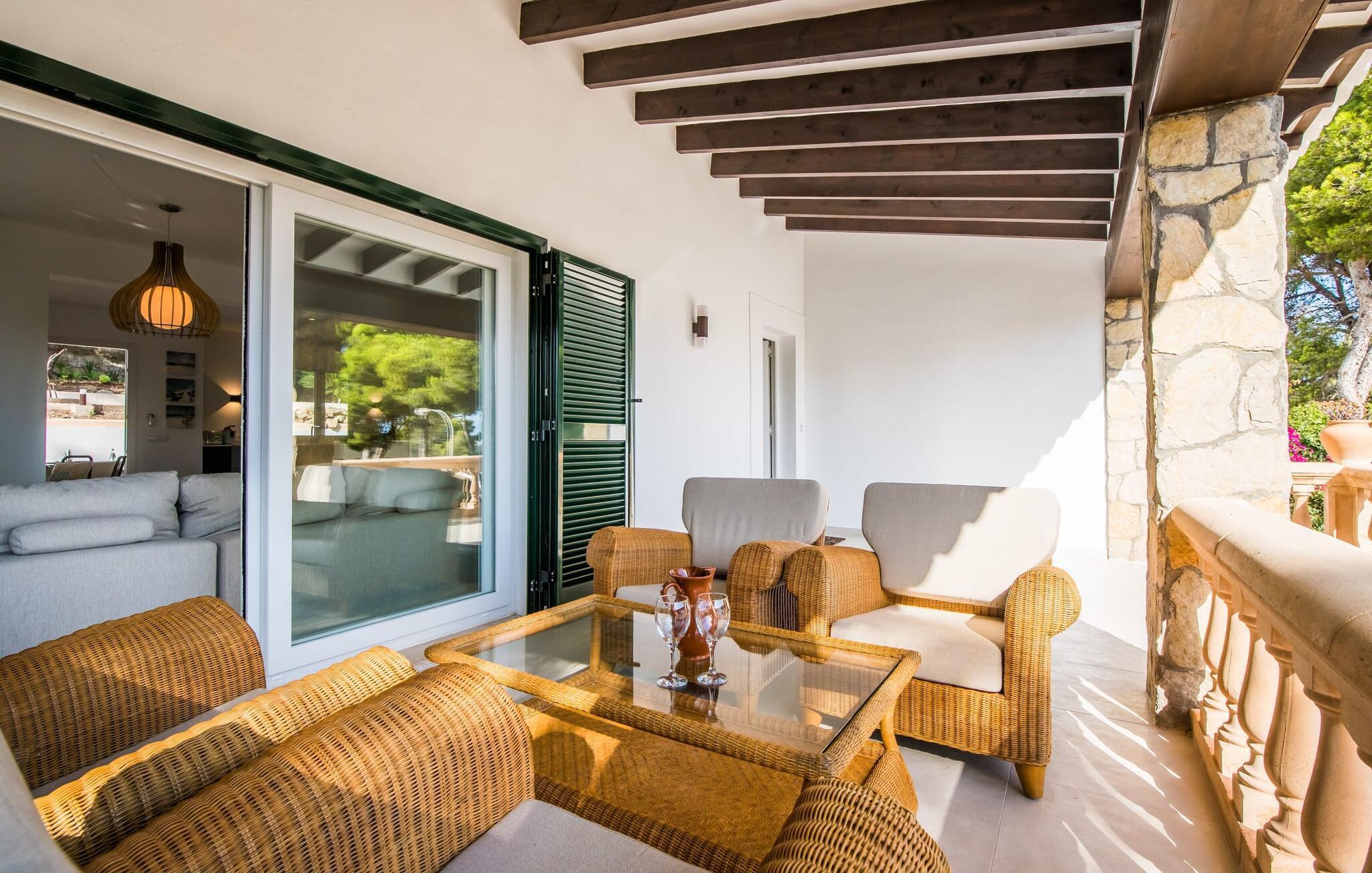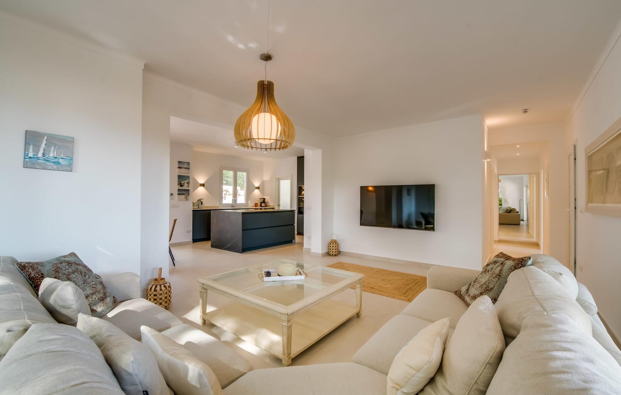 Hvid, terracotta, blå - det er de dominerende farver, der kendetegner villaens ydre med det melodiøse navn "Mar Bella Nou". Lader man blikket vandre over den velholdte urbanisering fra de talrige siddepladser og kigger mellem de løse bygninger og de fyrretræsklædte klipper, går denne farvesammensætning også i andre objekter. Horisonten er omkranset af havets endeløse blå. Udover de bekvemmeligheder, som den absolutte nærhed til stranden byder på, tilbyder udendørsområdet dig også en perfekt terrasseindretning med talrige tilbagetrækningsmuligheder. Hvad venter dig under din ferie i dette førsteklasses sommerhus? Afslapning ved den murede pool med børnevenlig adgang, afslapning på de komfortable liggestole, grill på sideterrassen eller socialt samvær på den lidt højere loungeveranda eller tagterrasse - alt sammen med en vidunderlig havudsigt. Dette er et Fincallorca feriehus. En klassiker udefra, den smukt beliggende feriebolig har en frisk indretning. Stilen er en berusende blanding af stilfuldt enkelt og puristisk, bæredygtig smag inden for rammerne af et harmonisk farvespil. Det åbne boligkoncept i stueetagen for de funktionelle områder at spise, leve og lave mad er imponerende. Strandstil i spise- og opholdsstuen møder et mørkt industrielt look i køkkenet med en kogeø og udstyr af høj kvalitet i apparatområdet. Huset er ideelt til to generationer eller familier. Op til seks personer kan bo komfortabelt i tre dobbeltværelser (hver seng har to 90 cm brede madrasser). Et særligt højdepunkt er det tredje soveværelse på øverste etage, som kan nås via en intern eller alternativt en ekstern trappe. Med sit eget tekøkken, en ekstra stue, det andet walk-in brusebad og en tagterrasse bliver afslapningsområdet et studie med luksuriøs autonomi. Afslapning med en afslappet designtilgang ved havet ikke langt fra byen - hvis det er det, du leder efter, er du kommet til det rigtige sted på "Mar Bella Nou"! Den familieorienterede designvilla "Mar Bella Nou" har et poolområde, et terrasseret udendørsområde og masser af overbevisningskraft. Det smukke feriehus er beliggende i den eksklusive urbanisering Provensals, nær Sa Font de Sa Cala. Der kan du gøre dine daglige ærinder eller besøge det ugentlige marked i det nærliggende Capdepera. Kun 240 m adskiller dig fra havet. I dette paradisiske område vil du opdage forrevne klippekyster og smukke sandstrande.