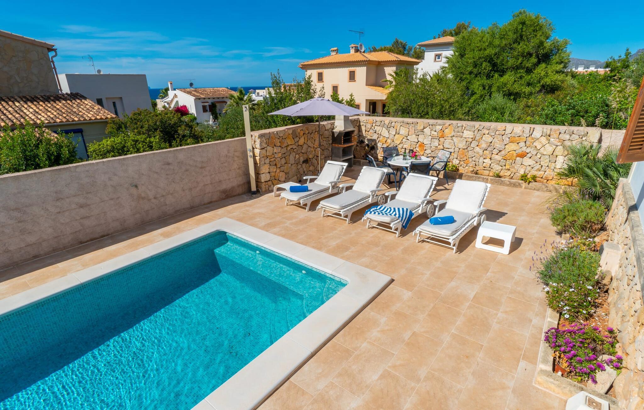 Hvad værdsætter du mest ved din ferievilla på Mallorca? Nærhed til stranden? Gode vandrestier i området? lange solbade? En rolig beliggenhed? Dejlige restauranter ved havet i gåafstand? Hvis du ikke vil gå glip af alt dette, kan villaen "Mar i Cel" være lige noget for dig. Den mindste af de to overdækkede terrasser ved indgangen giver en forsmag på den hygge, der venter jer i jeres sommerhus. Den større veranda er vært for et indbydende udendørs spiseområde til lange stearinlys sessioner langt ud i de varme sommernætter. Det nærliggende poolområde ligger i læ for vinden, så du kan få dine måltider her lige ved siden af grillen. Har du brug for at være endnu tættere på solen? Du skal blot gå op ad udvendige trapper til den perfekt placerede tagterrasse på din ferievilla. Den vidunderlige udsigt over havet er gratis her! Stueetagens opholdsstue er godt opdelt og har en skøn opholds- og spisestue. Det er udstyret med pejs og aircondition. Vinduerne byder på en vidunderlig udsigt over haven og de nærliggende foden af Ferrutx - et smukt sted at vandre. Både stuen og det tilstødende køkken har direkte adgang til den rummelige veranda. Et af de tre soveværelser har eget badeværelse en suite. De to andre soveområder deler et separat badeværelse med badekar. Villaen "Mar i Cel" er en del af boligområdet Colònia de Sant Pere på Mallorcas østkyst. Marinaen, små supermarkeder og restauranter er inden for nem gåafstand. Den lange naturlige strand Colònia de Sant Pere ligger kun 6 minutters kørsel fra feriehuset. Den smukke by Artà kan nås på 15 minutter i bil. Bemærk venligst, at denne ejendom ikke accepterer ungdomsgrupper eller polterabender. En ungdomsgruppe på denne ejendom består af personer under 30 år. Book ikke denne ejendom, hvis du er en ungdomsgruppe eller en polterabendgruppe, da din reservation vil blive afvist, når den er booket, hvilket også kan være tilfældet ved ankomst til ejendommen eller under dit ophold, og du vil ikke modtage en refusion. Dette er et Fincallorca feriehus.