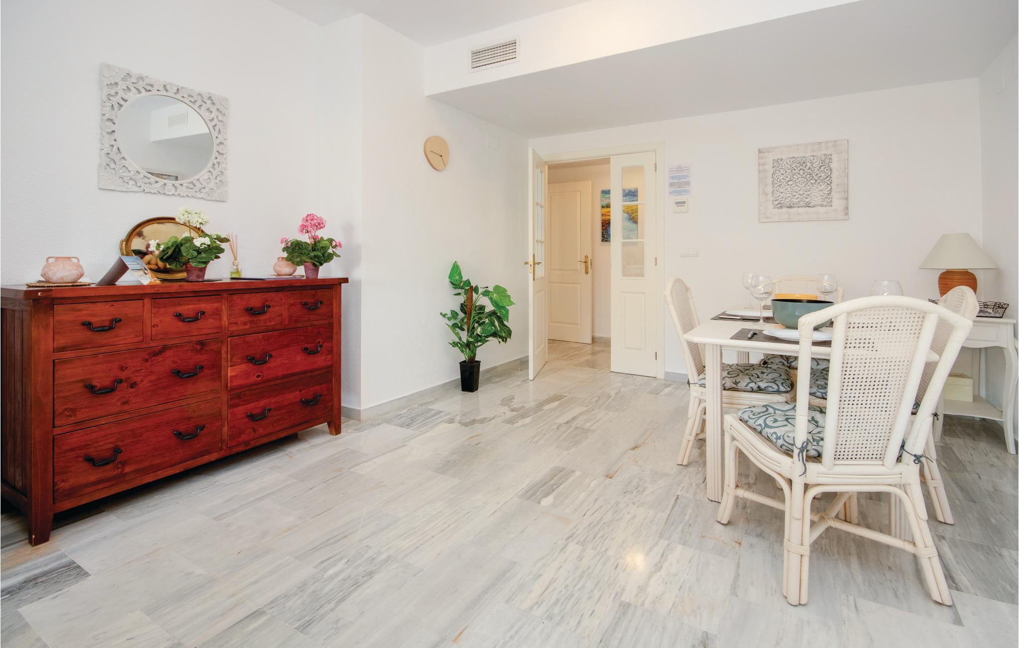 Fremragende ferielejlighed med to soveværelser i det yderst velplejede anlæg Las Mimosas i Cabopino. I boligen er der gratis Wi-fi og v/k klimaanlæg, en rummelig stue der er åben mod det veludstyrede køkken. Her er også et bryggers. Overfor køkkenet ligger spisestuen og opholdsstuen bl.a. med tv med 195 kanaler og DVDafspiller og film. Desuden er her to soveværelser med indbyggede skabe og badeværelser med både brusebad og badekar. Fra det største soveværelser og stuen er der udgang til en overdækket terrasse, der kan lukkes helt af i den kølige årstid. Her er der spisebord, stole, sofa og lænestol, så I kan slappe af og bare nyde udsigten. I anlægget er der en fælles pool og et skøn velplejet haveanlæg og I bor ikke langt fra barer og restauranter langs Cabopino Golfen. Det tager få minutter at gå til de skønne strande og marinaen i Cabopino.