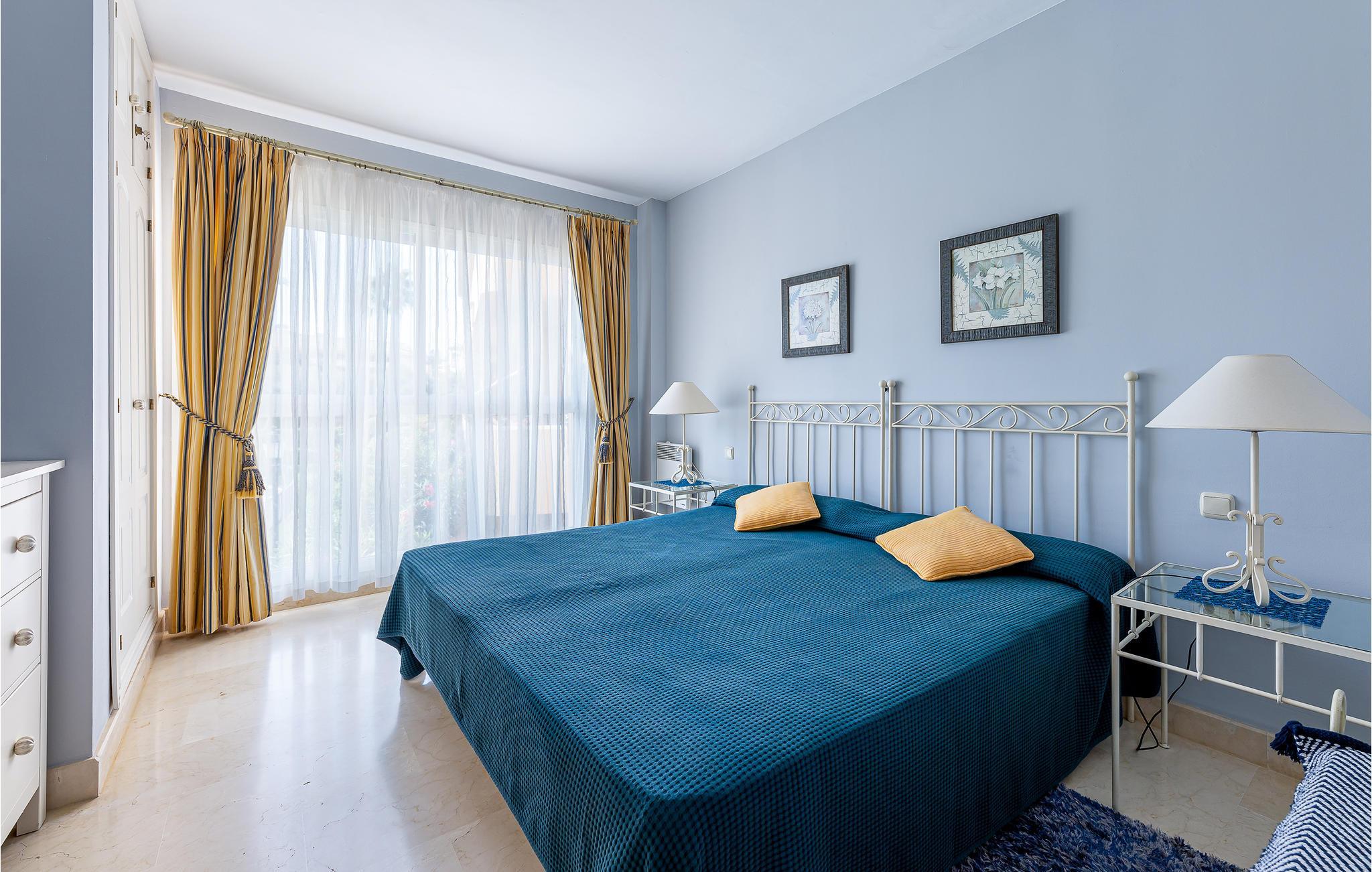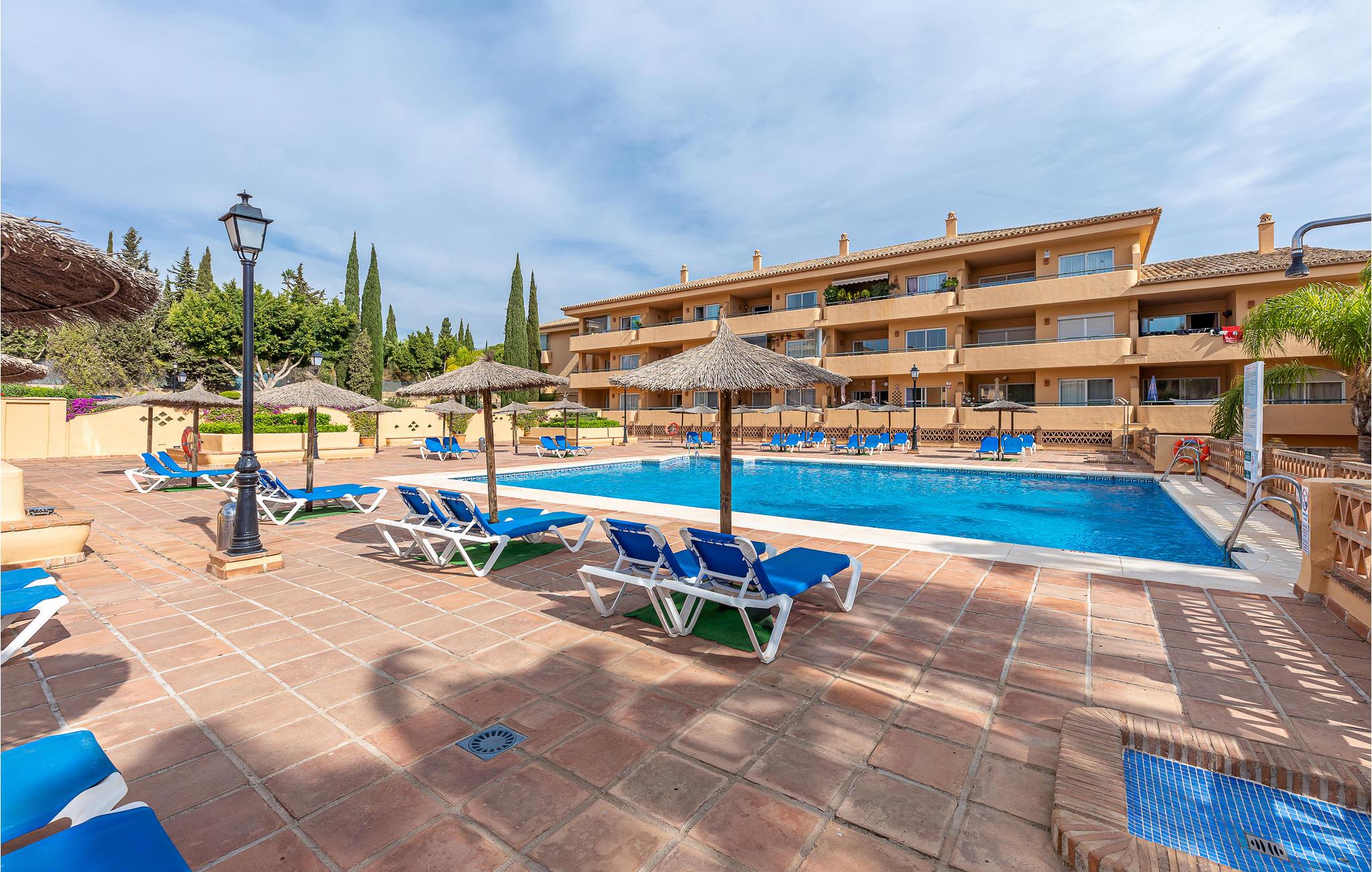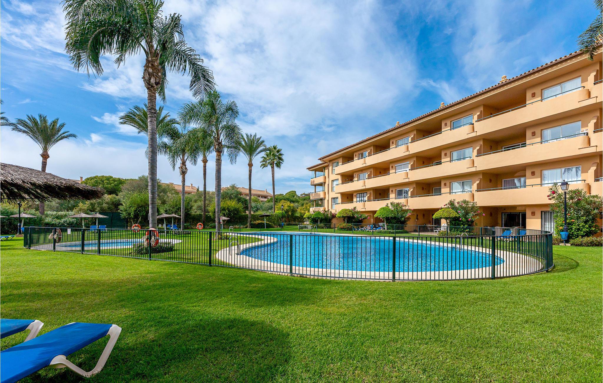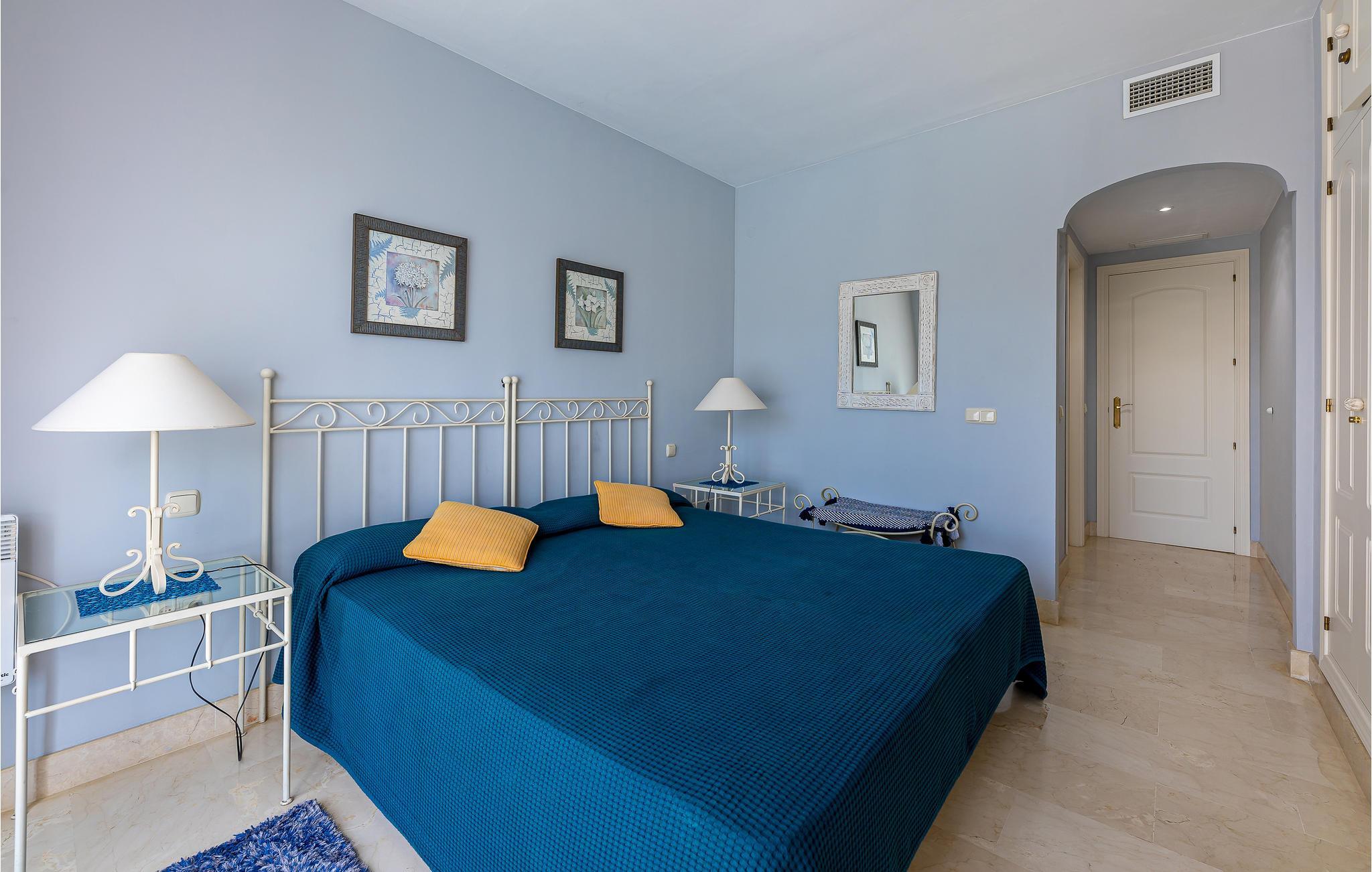 Træd ind i en stilfuld lejlighed, beliggende i et kompleks med en børnepool og 2 andre udendørs pools. Nyd dine måltider, som morgenmad, på den smukke overdækkede terrasse sammen med familien. Sæt dig godt tilpas med en roman på den komfortable sofa i stuen, selv når det bliver for varmt, og glæd dig til kølige temperaturer takket være aircondition.