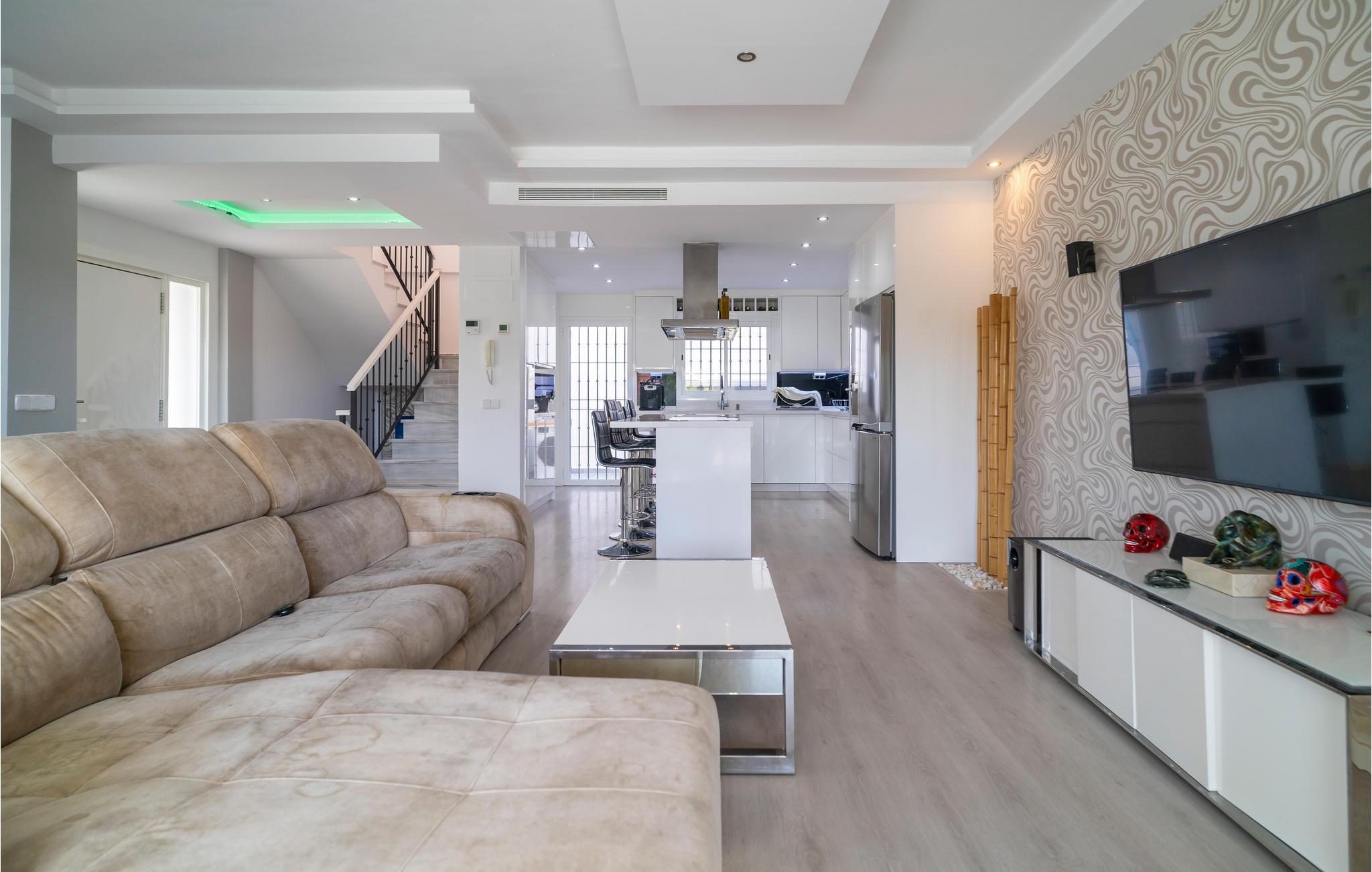 Rummeligt, luksuriøst feriehus ikke langt fra sandstranden. Dette skønne feriehus ligger øst for Marbella nær kysten. Indenfor kan I forvente et fuldt udstyret interiør af høj kvalitet, der giver et lyst og stilfuldt indtryk. Der er plads til op til flere familier, hygge og alt hvad der skal til for en førsteklasses ferie. Tilbered jeres delikatesser i det moderne køkken og snak med de andre feriegæster. I det store udeområde finder I flere skønne hjørner med sol og skygge. Tilbring afslappende timer under parasollen og nyd en iskold frisk dukkert. Køl nogle gange af under den udendørs bruser eller tag en dukkert i poolen. Efter en kort gåtur når I klitterne i Dunas de Artola o Cabopino og den dejlige sandstrand, som indbyder til afslappende gåture og solrige badeudflugter. Er I i humør til en aktiv ferie, kan I tage på vandreture i nærheden eller hygge jer på den lokale golfbane.
