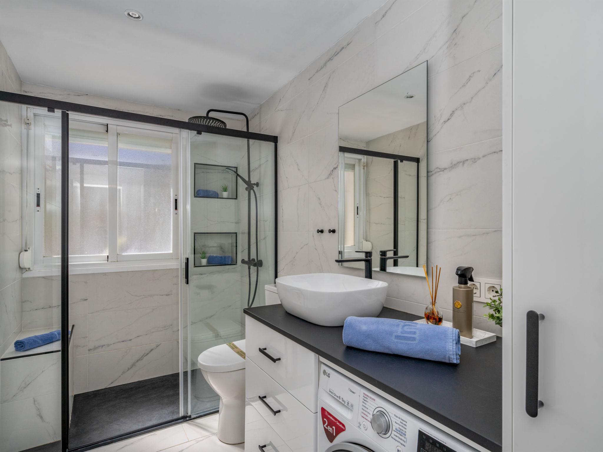 Beautiful, comfortable apartment block "Marbella Real", renovated. 200 m from the centre of Puente Romano, in the district Marbella Golden Mille, excellent location: right in the centre but still quiet, 800 m from the sea, from the beach, east facing position. For shared use: beautiful garden to relax, 4 swimming pools (seasonal availability: 15.Jun. - 15.Sep.). Outdoor shower, tennis. In the complex: lounge, fitness room, table tennis, playroom. Parking. Supermarket 500 m, restaurant 100 m, bakery 500 m, café 100 m, bus stop "La Carolina" 300 m, sandy beach 800 m. Object suitable for 4 adults. Guarded residence.