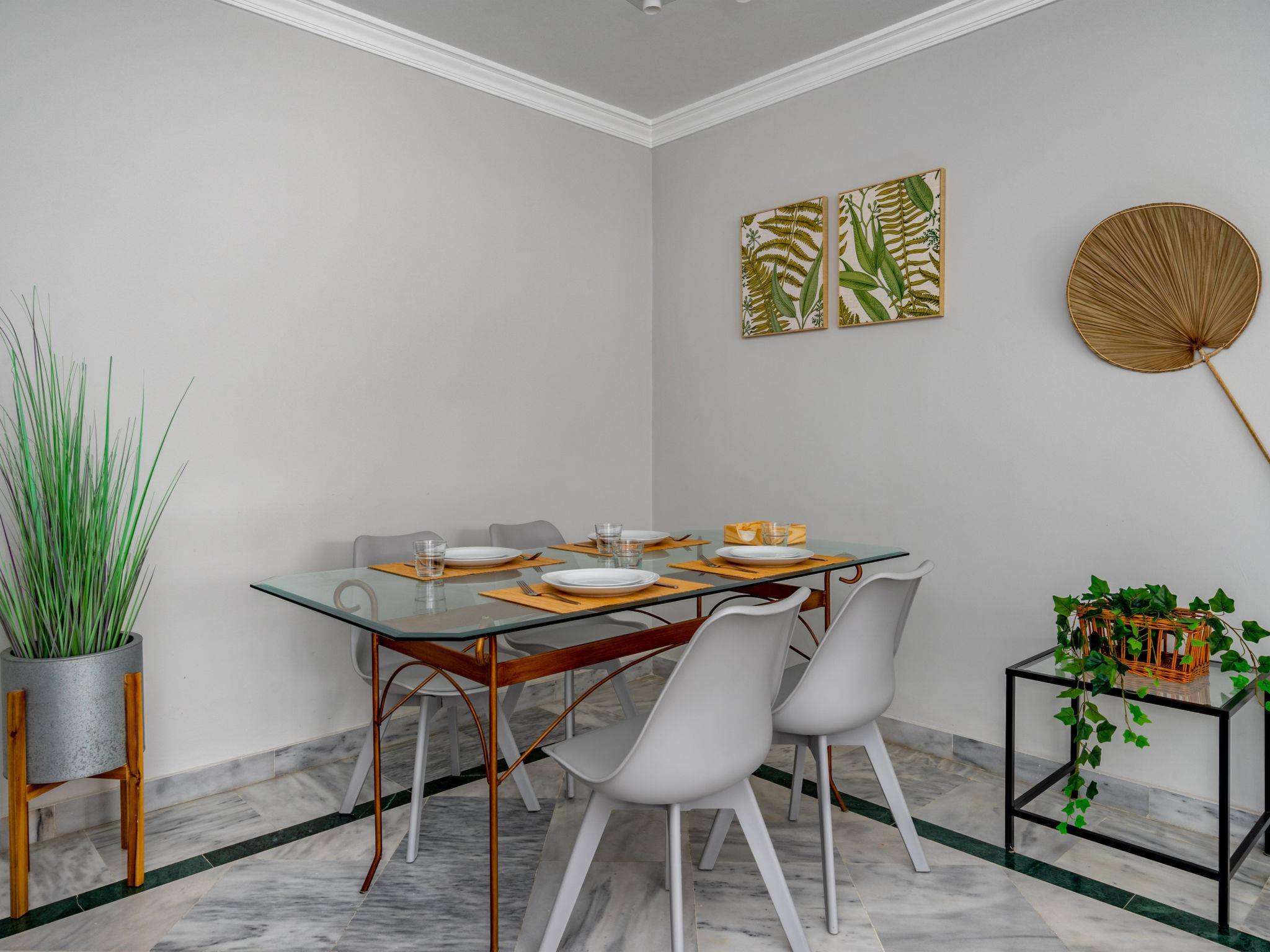 "Dama de noche", 2-room apartment 63 m2 on 2nd floor. Living/dining room with 1 sofabed and digital TV. Exit to the terrace. 1 room with 1 french bed (160 cm, length 200 cm). Kitchen (dishwasher, 4 ceramic glass hob hotplates, toaster, kettle, microwave, freezer, electric coffee machine). Bath/bidet/WC. Air-conditioning, forced-air heating. Terrace roofed. Terrace furniture. Facilities: washing machine, iron, children's high chair, baby cot, hair dryer. Internet (WiFi, free). Garage space n 44. VUT/MA/63941 // Reg. Nr.: ESFCTU0000290410005371220000000000000000VUT/MA/639412
