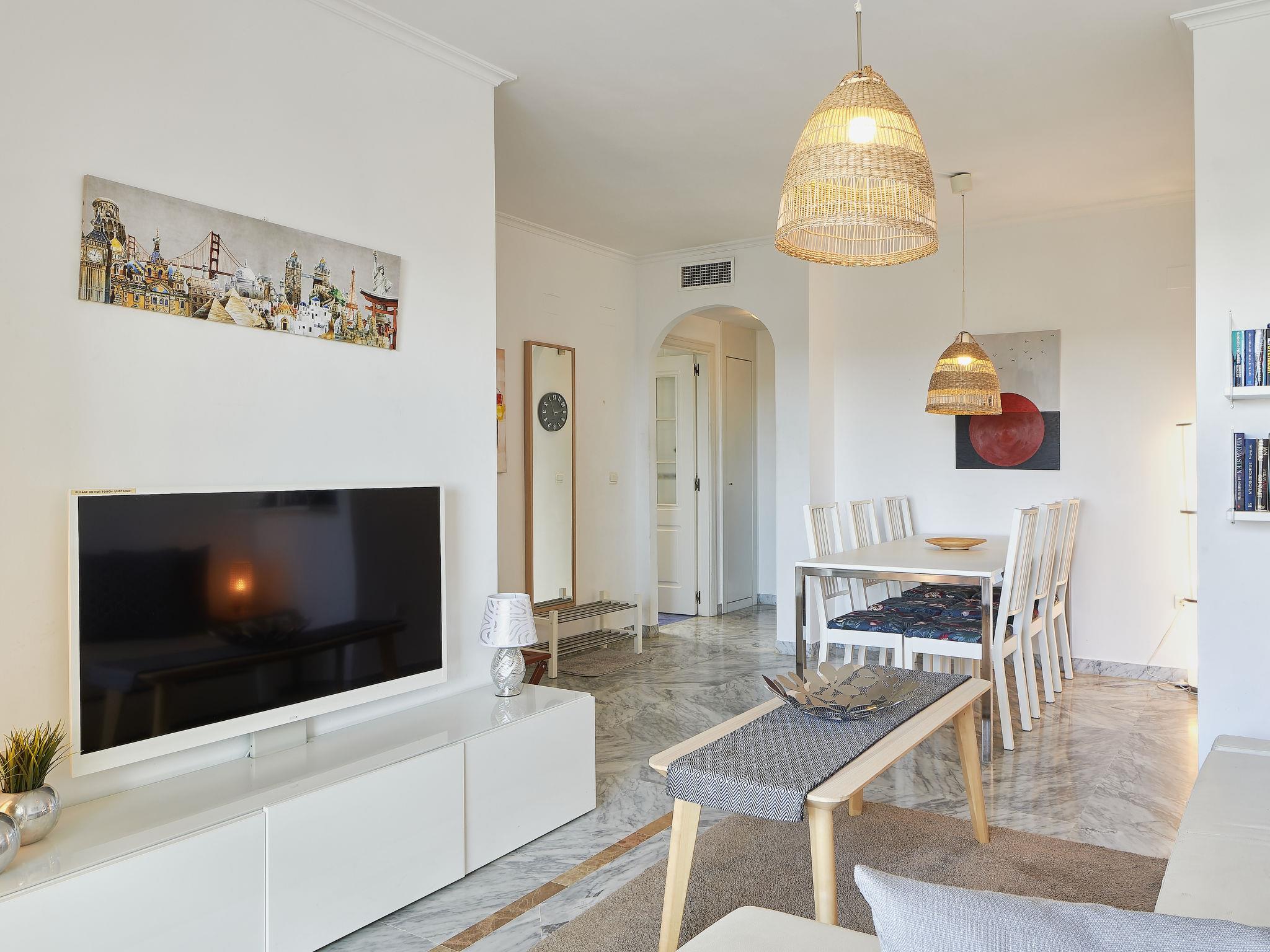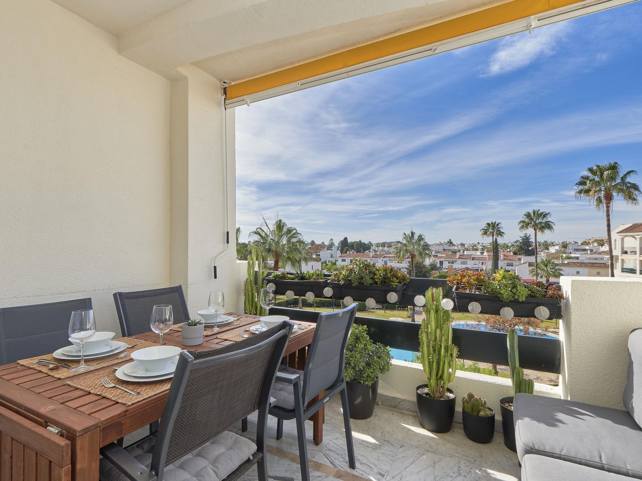 Modern, beautiful, cosy apartment block "Lorcrisur". 2 km from the centre of Puerto Banús, 1 km from the centre of San Pedro, 8 km from the centre of Marbella, in a quiet, sunny position, 100 m from the sea, 100 m from the beach. For shared use: beautiful garden to relax, 2 swimming pools kidney-shaped (depth 140 - 140 cm, seasonal availability: 01.Jan. - 31.Dec.). Shower/WC in the pool area, children's pool, tennis, terrace. In the house: lift. Communal covered parking. Shop 1 km, supermarket 200 m, shopping centre 2 km, restaurant, bar 100 m, bakery 1 km, café, pedestrian zone, pub garden 100 m, bus stop "Boulevard San Pedro" 1.1 km. Please note: suitable for families. Neighbourhood highly sensitive to noise. Quietness and good behaviour expected.