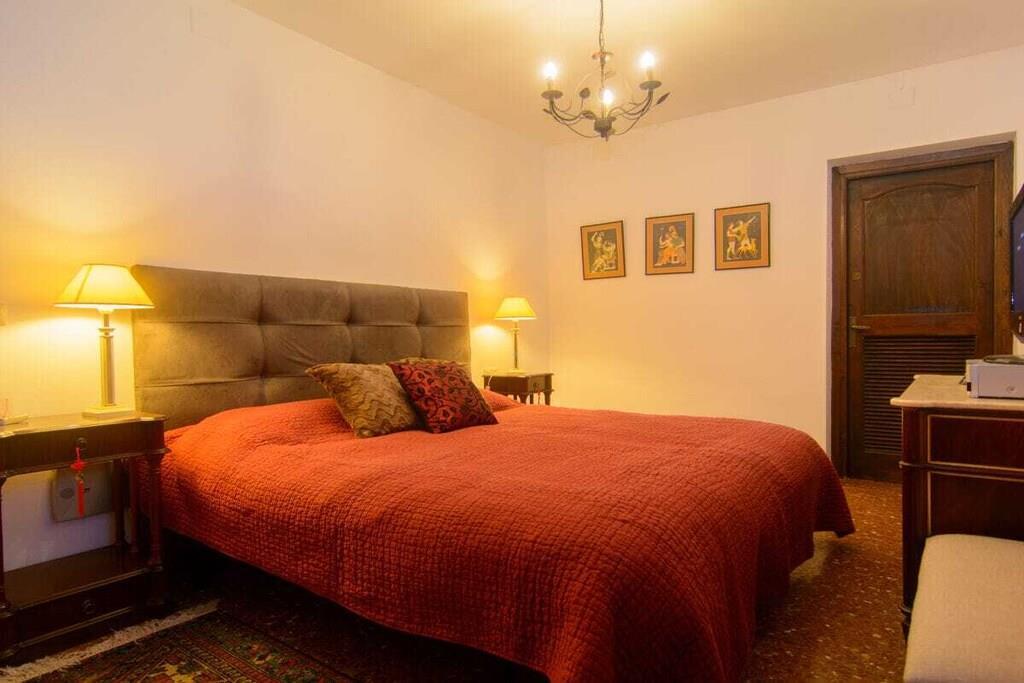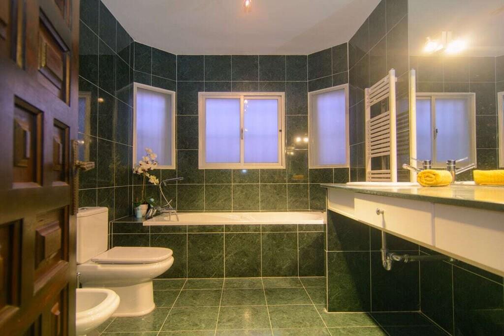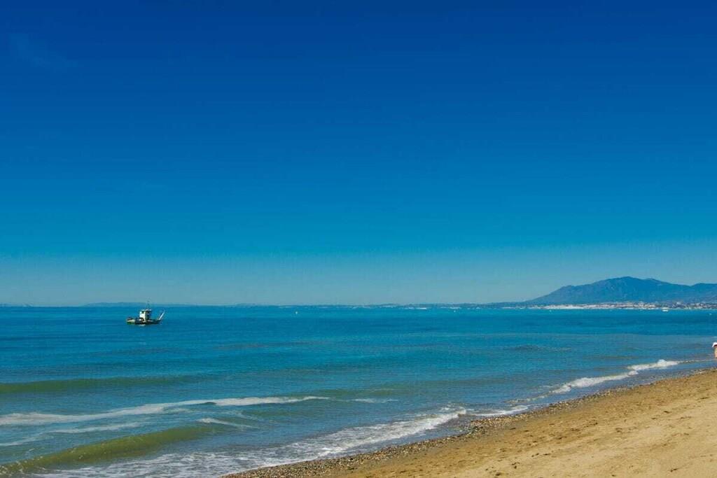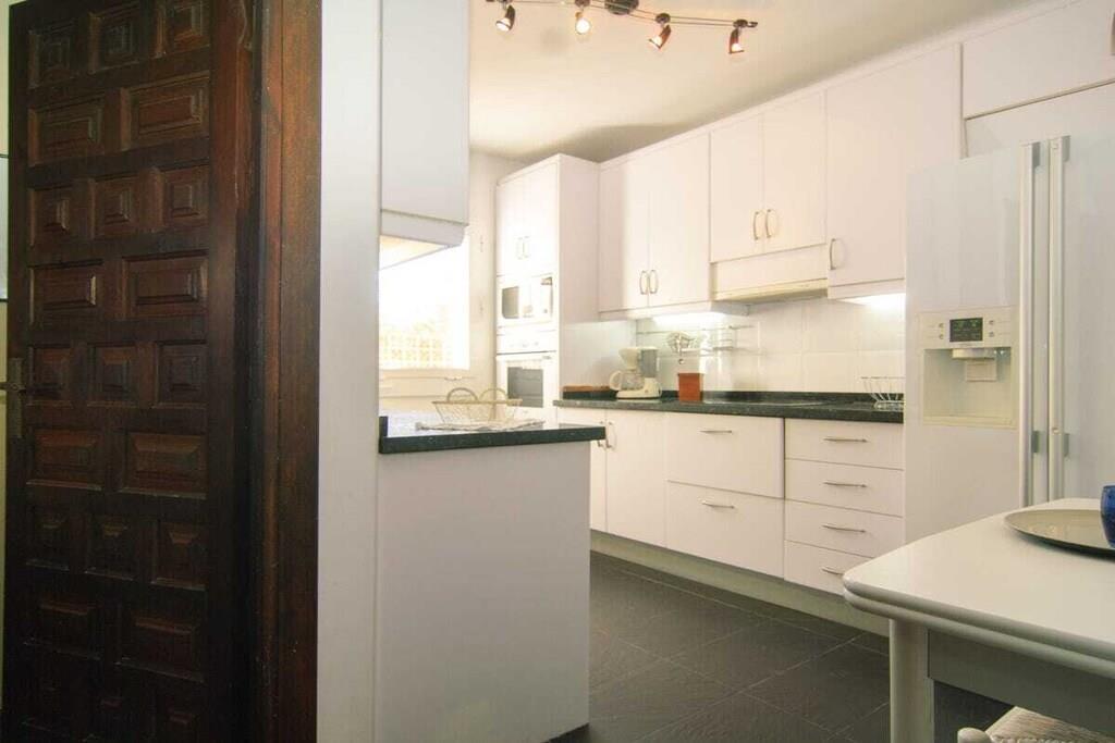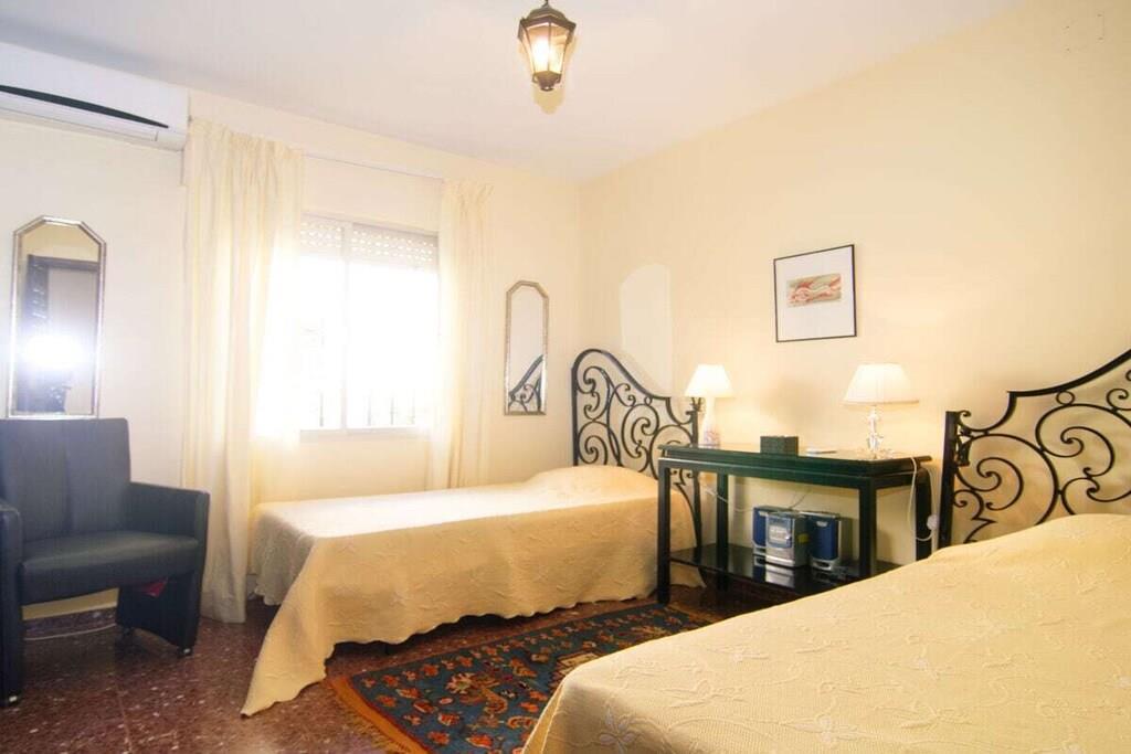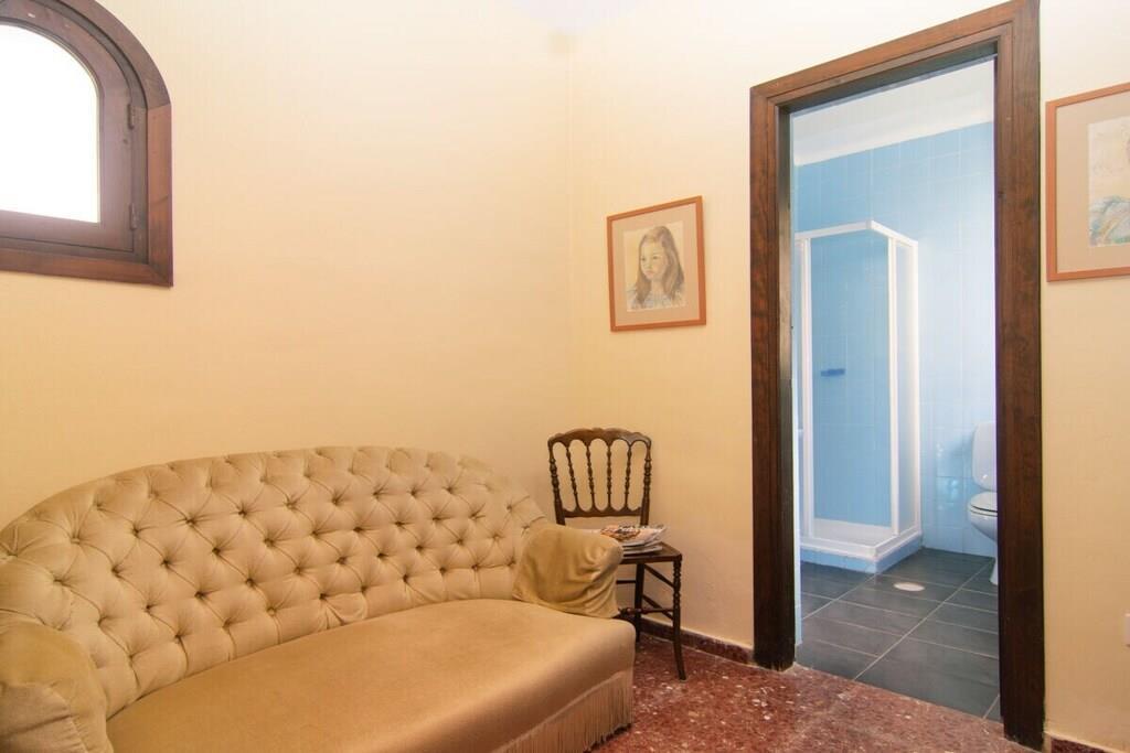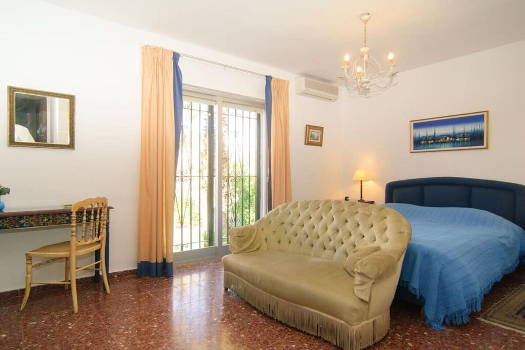 Dieses einstöckige, typisch spanische Haus (200m2) mit drei Schlafzimmern, vier Badezimmern, einem großen, hellen Wohnzimmer, einer voll ausgestatteten Küche, einer großen Terrasse und einem Garten (1000m2) mit privatem Pool (12x5m) ist ein idealer Ort für einen erholsamen Urlaub in Las Chapas Playa, nur 300m vom schönsten Strand von Marbella entfernt. ~ Innen Eine große Halle empfängt Sie beim Betreten des Hauses. Von hier aus können Sie das Wohnzimmer betreten, zu den beiden Gästeschlafzimmern oder zur Küche und zum Hauptschlafzimmer gehen. Das Wohnzimmer ist sehr geräumig, hat eine Sitzecke mit zwei Sofas und Sesseln, Flachbildfernseher, Kamin und niedrigem Couchtisch. Auf der anderen Seite des Wohnzimmers befindet sich ein eleganter Essbereich mit schönen viktorianischen Möbeln und einem viktorianischen Esstisch mit 8 gepolsterten Stühlen. Eine große Glasschiebetür führt auf die schöne Terrasse. Das Hauptschlafzimmer verfügt über ein 180 cm breites Bett (2x90 cm), eine Kommode, ein kleines Sofa, einen Flachbildfernseher, einen Kleiderschrank, ein großes Fenster und eine Glastür zum Garten sowie ein voll ausgestattetes Bad mit Badewanne. Das zweite Schlafzimmer ist mit einem Doppelbett und großen Schränken ausgestattet. Das dritte Schlafzimmer hat zwei Einzelbetten (90x190cm) und geräumige Schränke. Beide Schlafzimmer teilen sich ein voll ausgestattetes Bad mit Badewanne und Jacuzzi-Duschkabine. Die Küche, obwohl nicht sehr geräumig, ist komplett ausgestattet mit Backofen, Mikrowelle, Wasserkocher, Kaffeemaschine, Geschirrspüler, Kühlschrank mit Eismaschine, Gefrierschrank, Glaskeramik, Toaster, Küchenutensilien. Neben der Küche befindet sich ein Bad mit Dusche. In der Eingangshalle befindet sich ein separates Gäste-WC. Alle Schlafzimmer und das Wohnzimmer haben individuelle Klimaanlagen. ~ Terrasse/Garten Eine schöne Terrasse ist vom Wohnzimmer aus zugänglich. Die Terrasse verfügt über eine Sitzecke mit Sofa und niedrigem Tisch sowie über einen Essbereich mit einem Tisch für 6 Personen. Ein schöner grüner Garten mit Pinien umgibt das Haus und ein 12x5m großer eingezäunter Pool mit römischer Treppe liegt vor der Terrasse. Dienstprogramme: Internet, Klimaanlage warm/kalt, Satelliten-TV (2), DVD-Player, CD-Player, Backofen, Eismaschine, Wasserkocher, Toaster, Geschirrspüler, Kaffeemaschine, Vitro-Keramik, Mikrowelle, Kühlschrank mit Eismaschine, Gefrierschrank, Waschmaschine, Bügeleisen, Holzkohlegrill, Haartrockner. Räume: 3 Schlafzimmer, 3 Bäder, 1 Gästebad, Wohnzimmer, Küche, Hauswirtschaftsraum. Möbel: Doppelbett (2), Einzelbetten (2), Sofas (2), Tisch im Freien (6), Esstisch (8). Alle Schlafzimmer haben Kleiderschränke. Sonstiges: Bettwäsche, Handtücher und Internetanschluss sind im Preis inbegriffen. Draußen: Terrasse, Privater Pool (12x5m), Privater Garten, Parkplatz auf der Straße.