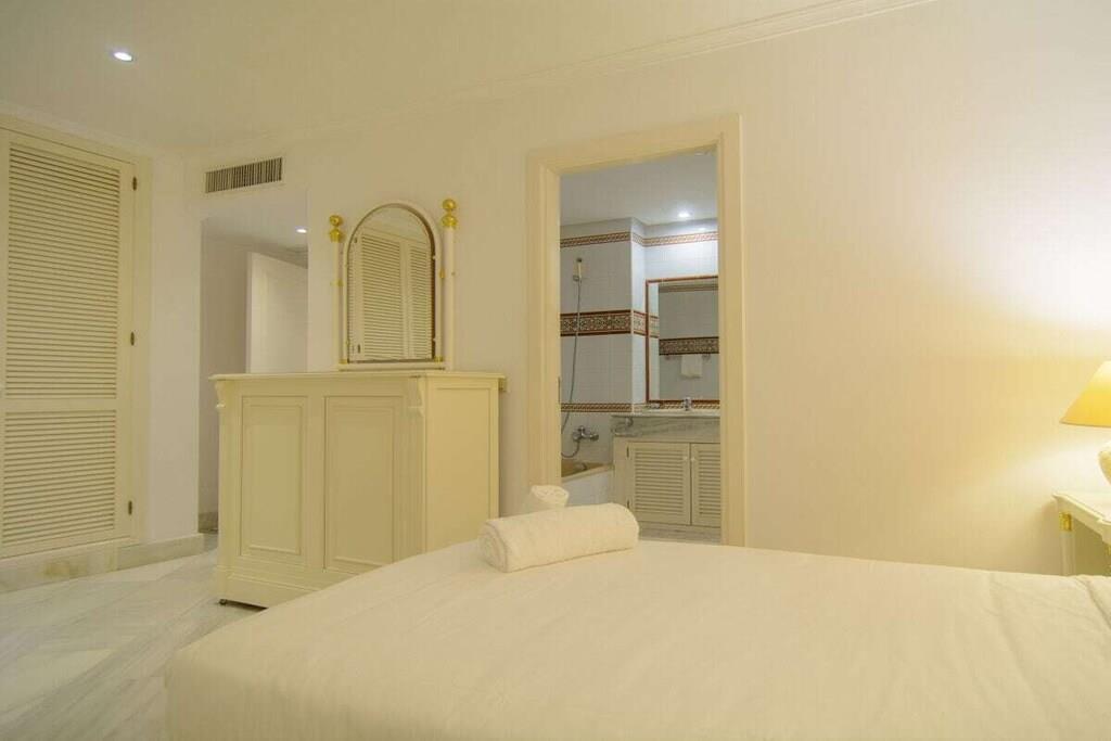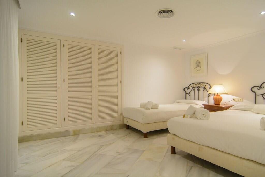 Genießen Sie die Vorteile einer exquisiten Unterkunft nur 150 Meter von Playa de la Vibora in der erstaunlichen White Pearl Beach Urbanisation mit drei Pools und Garten platziert. Die Wohnung ist geräumig (180m2) es hat drei Schlafzimmer (zwei von ihnen mit eigenem Bad), ein geräumiges Wohnzimmer mit einem Sitz- und einem Essbereich, eine saubere Küche und eine große Terrasse (75m2) mit Grill. ~ Innen Diese elegante Wohnung (180m2) verfügt über ein geräumiges Wohnzimmer mit einer Sitzecke und einem Essbereich. In der Sitzecke stehen zwei große bequeme Sofas neben einem Couchtisch vor einem Flachbildfernseher. Der Essbereich hat einen Glastisch für acht Personen und bietet einen schönen Blick auf die Terrasse. Die Fenster von Wand zu Wand und die Tür zur Terrasse lassen viel Licht in das Wohnzimmer eindringen. Der Glastisch steht auf eleganten Marmorsäulen. Die Sitzecke hat einen eleganten Marmortisch mit Glas und zwei bequeme große Sofas. Das Design ist elegant, Marmorfliesenböden, schöne und dezente gerahmte Grafiken, antike Möbel. In diesem Bereich gibt es einen Tisch, der ideal für einen Laptop ist, falls Sie während Ihres Aufenthalts arbeiten möchten. Das Hauptschlafzimmer ist mit einem bequemen Bett (180x200cm) ausgestattet und verfügt über große Schränke, Rattan-Schubladen, Spiegel und Lampen mit Lampenschirmen. Das voll ausgestattete Badezimmer hat eine Badewanne, ein Doppelwaschbecken und eine begehbare Dusche. Das zweite Schlafzimmer hat ein Doppelbett (150x190cm) und ein Einzelbett (90x190cm), große Kleiderschränke und Zugang zu einem Familienbad mit begehbarer Dusche. Das dritte Schlafzimmer hat zwei Einzelbetten (2x105x190cm), Nachttische, einen Spiegel und bietet Zugang zu einem eigenen Bad mit Badewanne, Doppelwaschbecken, begehbarer Dusche und Toilette. Die Küche verfügt über alle Geräte (Backofen, Mikrowelle, Ceranfeld, Kühlschrank, Gefrierschrank, Geschirrspüler, Kaffeemaschine, Toaster, Wasserkocher) und Zubehör für einen komfortablen Aufenthalt. Es gibt auch eine Waschküche mit Waschmaschine und Bügelbrett. ~ Terrasse Vom Wohnzimmer aus haben Sie Zugang zu einer unglaublichen 75m2 großen Terrasse mit herrlichem Blick auf den Garten und die Pools. Hier gibt es einen großen Esstisch für sechs Personen und eine Sitzecke mit einem großen Sofa, bequemen Sesseln und einem Couchtisch. Auf der Terrasse befindet sich auch ein Gasgrill, so dass Sie die Zeit mit Ihrer Familie und Ihren Freunden in vollen Zügen genießen können. Die zwei Sonnenliegen machen den Aufenthalt hier noch angenehmer. Versorgungseinrichtungen: Internet, TV, Klimaanlage, Backofen, Mikrowelle, Vitrokeramik, Kühlschrank, Gefrierschrank, Geschirrspüler, Kaffeemaschine, Toaster, Wasserkocher, Waschmaschine. Räume: 3 Schlafzimmer, 3 Bäder, großes Wohn- und Esszimmer, 1 Küche, Hauswirtschaftsraum. Möblierung: Einzelbetten (3), Doppelbett (2), Esstisch (8), Esstisch im Freien (6), Sitzecke im Freien (6). Alle Schlafzimmer haben Kleiderschränke. Sonstiges: Bettwäsche, Handtücher, Internet und Garagenparkplatz inklusive. Draußen: Terrasse, gemeinsames beheiztes Schwimmbecken, Kinderbecken, gemeinsamer Garten, Garagenstellplatz, Parkplatz auf der Straße.