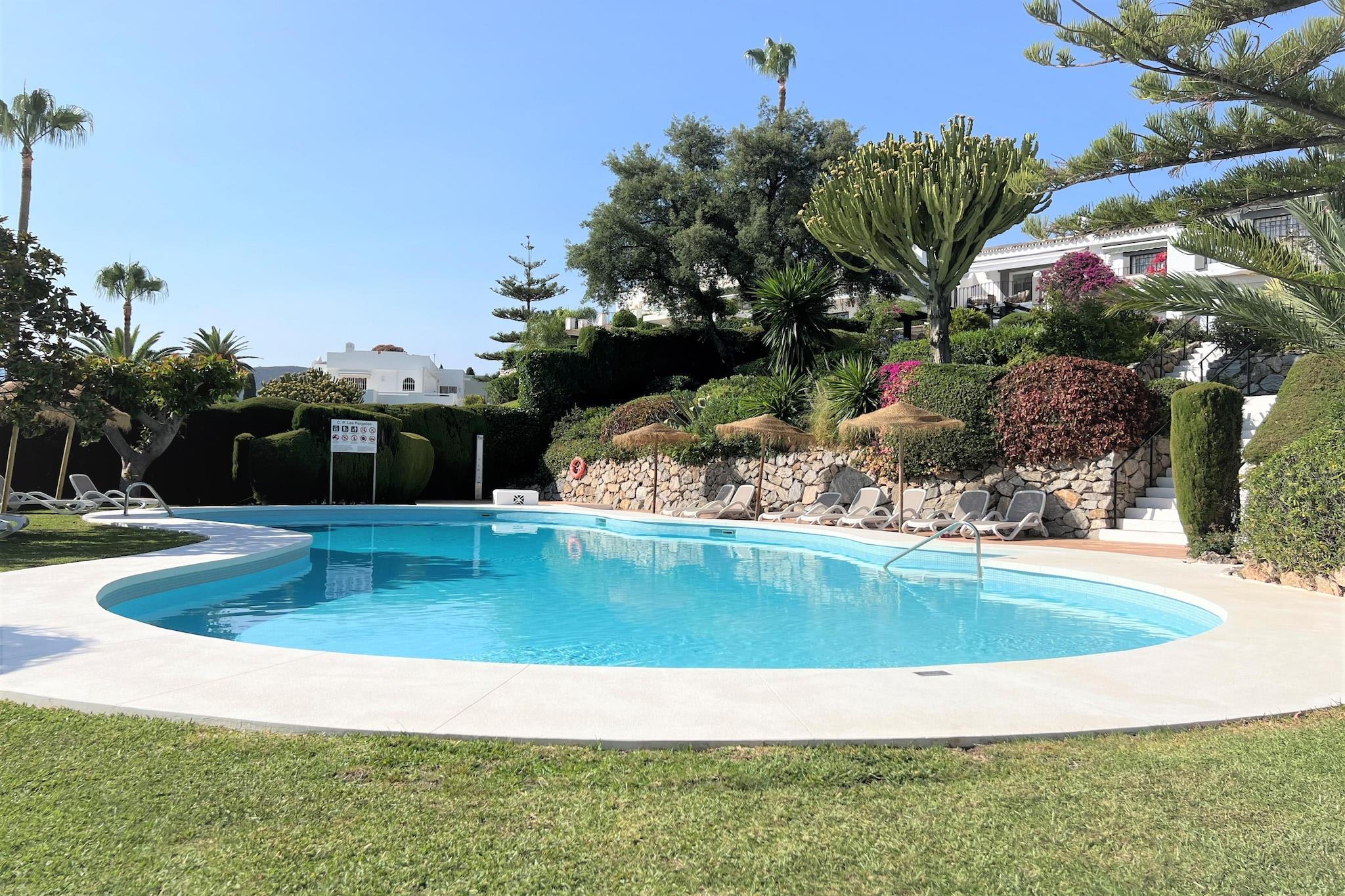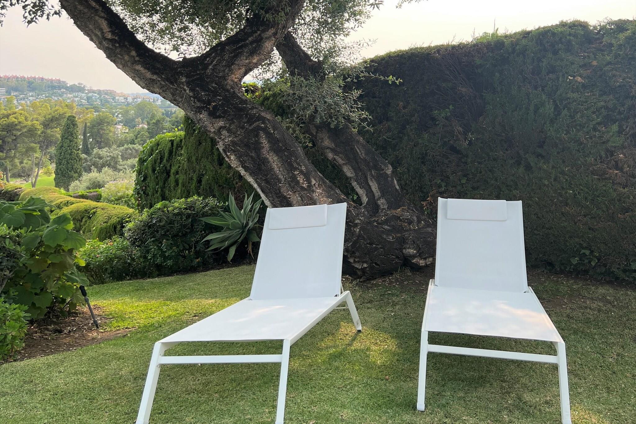 Dette dejlige hus ligger i et roligt og eksklusivt område i Marbella i golfdalen, hvor der er 6 smukke golfbaner. Det er meget velegnet til afslappende ferier med familie eller par. Ejendommen ligger på golfbanen Aloha Golf Club i Nueva Andalucía. Du kan gå i regionen, og der er masser af gode butikker i og omkring Marbella. Der er lokale restauranter 5 minutters kørsel derfra, og stranden og Puerta Banus ligger 10 minutter derfra i bil eller taxa. Marbellas gamle bydel, Estepona og San Pedro er alle en kort køretur, du kan besøge de hvide bjerglandsbyer. Granada og Sevilla og Sierra Nevada skisportssted er kun 2,5 times kørsel. Huset er sydvendt, har dejlig udendørs plads med en stor veranda med havemøbler og en gasgrill, en stor terrasse ud for master soveværelset med både pool og bjergudsigt og en side havudsigt, og der er en privat gård indgang. Der er en fælles tropisk have og afsondret swimmingpool samt en tennisbane. Bemærk: Urbanisationerne er ekstremt små, kun 18 huse, meget fredelige og rolige uden støj. Så af hensyn til roen er dette hus ikke egnet til unge singler eller grupper.
