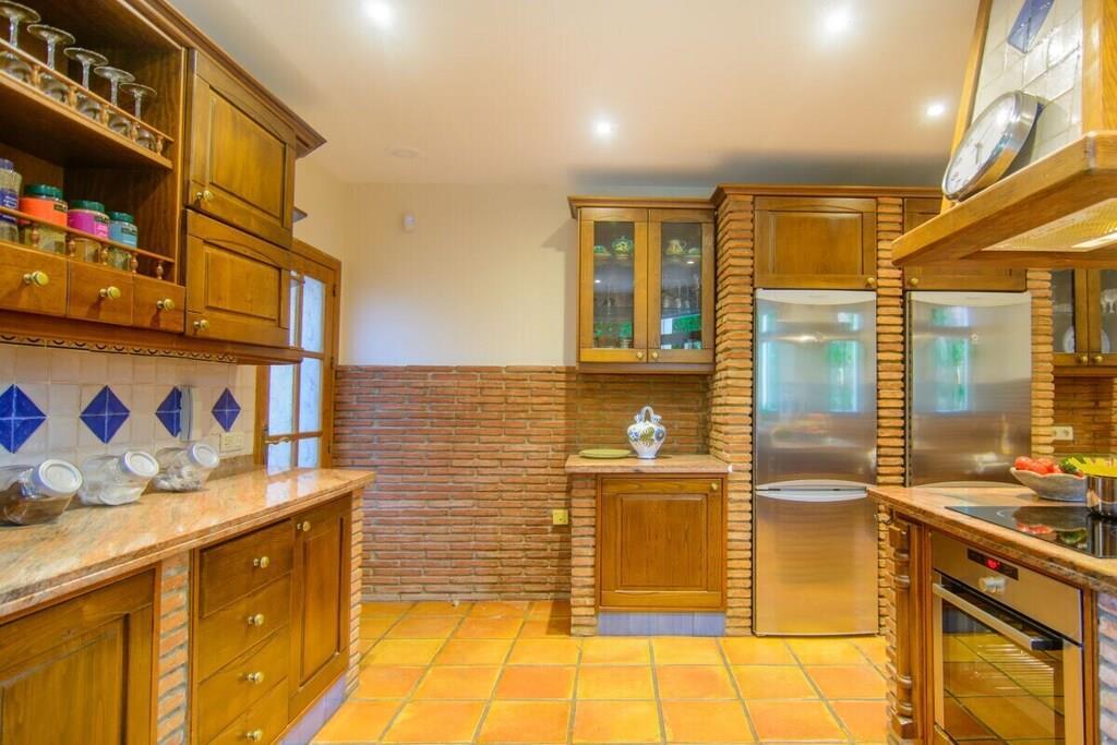 Diese Villa mit sechs Schlafzimmern (395m2) auf einem Grundstück von 700 m2 mit Salzwasser beheizten Pool (9,5mx5m) in der Region Marbella befindet sich am Strand in der traditionellen spanischen Stadt San Pedro de Alcantara in einer ruhigen Wohnanlage. Mit nur 400 Metern zum Strand und 600 Metern zum Stadtzentrum von San Pedro ist es in einer perfekten Lage. Puerto Banus ist gleich um die Ecke, 3 Minuten mit dem Auto und ein 30-minütiger Spaziergang auf der Promenade am Strand, die den ganzen Weg nach Marbella führen. Die Villa bietet 395m2 verteilt auf 3 Etagen, 6 Schlafzimmer, alle mit neuen Betten und TV, 3 Schlafzimmer mit eigenem Bad und 3 mit Zugang zur oberen Terrasse. In dem geräumigen Essbereich können 12 Personen bequem zusammen essen. Das Wohnzimmer hat eine schöne Sitzecke mit Ledersofas rund um den Fernseher und den Kamin und es hat auch einen Billardtisch, die große Unterhaltung für Sie und Ihre Lieben bietet. Von hier aus haben Sie auch Zugang zur Hauptterrasse des Hauses mit großzügigen Sitzgelegenheiten. Die Küche ist im rustikalen spanischen Stil gebaut und dekoriert und bietet moderne Geräte, die für ein schönes Kocherlebnis sorgen. Ein großes Plus ist, dass in der Küche eine Wasseraufbereitungsanlage installiert ist, d.h. das Leitungswasser in der Küche ist zu 100% trinkbar, was Ihnen Geld und ständige Fahrten zum Supermarkt erspart.Im Halbkeller befinden sich 2 Schlafzimmer und ein großer Unterhaltungsbereich mit Tischtennisplatte, Fußballtisch, Fernseher und Playstation. Auf dem Grundstück (700 m2) gibt es einen großen beheizten Salzwasser-Pool (9,5 x 5 m) mit einer Tiefe von 1 m bis 1,9 m, Sonnenliegen und eine große Außenküche mit Grill und Essbereich. ~ Innen Im Erdgeschoss befinden sich das Wohnzimmer, die Küche und ein Service-WC. Vom Flur aus gelangt man über eine Treppe in das Hauptschlafzimmer mit eigenem Bad, drei Gästeschlafzimmer und eine Terrasse. Im Halbkeller befinden sich zwei Gästeschlafzimmer mit jeweils eigenem Bad, ein Aufenthaltsraum und ein Unterhaltungsbereich mit Tischtennisplatte, Fußballtisch, großem Fernseher und Playstation. Das Wohnzimmer ist ein sehr angenehmer Raum, da es durch zwei große Glasschiebetüren mit der Terrasse verbunden ist, von der aus man einen schönen Blick auf den Garten und den privaten Pool hat. Der Billardtisch befindet sich in der Mitte des Wohnzimmers, zwischen der Lounge und dem Essbereich, und bietet Unterhaltung für alle Altersgruppen. Die schmiedeeisernen Kronleuchter verleihen dem Raum einen eleganten Touch. Der Essbereich ist um einen Holztisch für 12 Personen herum aufgebaut und vermittelt durch die Holzmöbel eine warme Atmosphäre. Die Sitzecke besteht aus drei großen bequemen Sofas und einem Couchtisch aus Holz. Von hier aus können Sie Ihre Fernsehsendung auf dem Flachbildfernseher genießen, der hoch an der Ziegelwand angebracht ist. Die beiden Lampen, die hoch an den Ziegelwänden angebracht sind, ermöglichen es Ihnen, den Raum im gedämpften Licht zu genießen. Auf dieser Ebene befindet sich die sehr einladende Küche mit großen Fenstern, durch die natürliches Licht einfällt. Die Holzmöbel und die Backsteinwände verwandeln das Kochen in eine sehr angenehme, gemütliche Tätigkeit. Obwohl die Möbel und das Aussehen der Küche klassisch sind, sind die Geräte alle modern. Die Kücheninsel ist mit Glaskeramik, einem Herd und einem leistungsstarken Dunstabzug ausgestattet. Die Küche ist mit einem Holztisch für vier Personen ausgestattet, falls Sie mit Ihren Liebsten gemütlich frühstücken möchten. Außerdem ist ein Wasserreinigungssystem installiert, so dass das Leitungswasser in der Küche unbedenklich zu trinken ist. Wenn Sie die Treppe hinaufgehen, gelangen Sie auf die erste Ebene der Villa. Hier finden Sie das Hauptschlafzimmer mit eigenem Bad und drei Gästezimmer, die sich ein Familienbad teilen. Das Hauptschlafzimmer hat ein Doppelbett (180x200 cm), sehr geräumige hölzerne Einbauschränke, einen Schminktisch mit Spiegel, eine elegante Holzbank. Durch eine große Schiebetür gelangt man auf die Terrasse im Obergeschoss, von der aus man einen schönen Blick auf die Urbanisation hat. Das eigene Badezimmer verfügt über ein Doppelwaschbecken, eine große begehbare Dusche, eine Toilette und ein Bidet. Das Fenster lässt natürliches Licht herein. Die hölzernen Badezimmermöbel und die eleganten Fliesen verleihen diesem Raum ein traditionelles Ambiente. Zwei der Gästeschlafzimmer haben jeweils zwei Einzelbetten (90x200cm). Das erste Gästeschlafzimmer bietet einen Ausgang zur Terrasse im ersten Stock. Durch die Fenster dieses Schlafzimmers können Sie die schöne Urbanisation sowie den Garten und den Poolbereich bewundern. Sie haben viel Stauraum, da das Schlafzimmer über geräumige Einbauschränke verfügt. Die Nachttische mit Lampen vervollständigen den modernen Look dieses Gästezimmers. Das zweite Gästeschlafzimmer hat drei große Fenster, die einen weiten Blick auf die exotische Vegetation bieten. Dieses Schlafzimmer hat eine Kommode mit einem großen Spiegel darüber und einen Nachttisch mit Lampe mit Schirm. Das dritte Gästezimmer hat einen Schminktisch mit Spiegel, Nachttische mit Lampen und einen geräumigen Einbauschrank. Von diesem Schlafzimmer aus haben Sie Zugang zur Terrasse mit Blick auf das Grundstück und die Urbanisation. Das Familienbadezimmer, das von diesen Schlafzimmern gemeinsam genutzt wird, verfügt über eine geräumige, begehbare Dusche, ein Doppelwaschbecken, eine Toilette und ein Bidet. Die Möbel sind aus Holz, die Fliesen sind traditionell. Im Halbkeller befinden sich zwei Gästeschlafzimmer mit je einem Bad en suite. Das erste Gästezimmer hat zwei Einzelbetten (90x200cm), einen Flachbildfernseher, Nachttische mit Lampen, ein kleines Fenster und Einbauschränke. Das zweite Gästeschlafzimmer hat zwei Einzelbetten (90x200cm). Die zwei Nachttische mit Lampen, der Flachbildfernseher, das Fenster und der Einbauschrank m