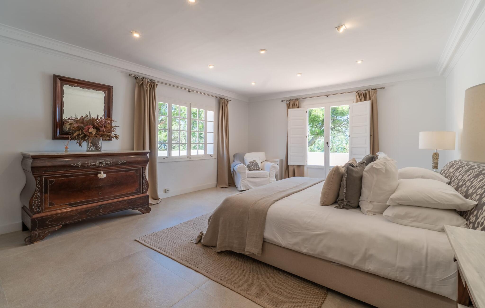 Det er et særligt øjeblik - måske banker dit hjerte hurtigere - når du nærmer dig "Marbella"-boligen via den lange indkørsel. Villaen skinner i enhver henseende, ikke kun med sine lyse hvide facader og de arkitektoniske standarder, som den mere end lever op til. Denne premium villa ligger på græsplænen foran paradis, kun 52 m fra stranden og havet. En lille sti med egen indgangsport fører direkte til kysten. Du kan bruge dette næsten som din egen private pool, men uden størrelsesbegrænsninger (en udendørs bruser er placeret på kanten af ??ejendommen ved siden af ??havelågen). Bygningen er omgivet af en række terrasser og frodige grønne plæner. Du vil snart opdage verandaen med klassiske buer og hvide polyrattanmøbler, siddepladser i cafe-stil og et langbord med designerborde. Du skal selv bestemme, hvor dit yndlingssted er - det være sig altanen langs soveværelserne eller den afslappede lounge med hvide kurvemøbler direkte over promenaden. En ting er sikkert: alle disse steder byder på en vidunderlig, vid panoramaudsigt direkte ud til havet, som er ubebygget og kun begrænset af horisonten. Med den mobile grill kan du holde en privat fest hver dag foran denne vidunderlige kulisse - det bliver bestemt ikke kedeligt med denne spektakulære smukke udsigt. De udvendige facaders hvide (med æblegrønne skodder) og loungemøbler af høj kvalitet danner sammen med havens friske grønne og den azurblå horisont en perfekt harmoni af maritime farver. Det fuldt klimatiserede interiør er ikke mindre imponerende. Hvid stil, ideelt kombineret med en række underspillede indretninger, så meget desto mere imponerende for deres subtilitet, og en åben grundplan vil overbevise enhver skeptiker. Det vidunderlige køkken med kogeø, som også kan bruges som morgenmadsbar, og dets forskelligartede udstyr byder på ægte komfort. Det lange spisebord i landlig stil er et hyggeligt sted for måltider. Hvis du ikke bare vil nyde udsigten til haven og havet gennem de mange gulv-til-loft vinduer med sprosser, kan du i stedet beundre stukloftet med smarte designerlamper og så lade blikket vandre over den behagelige sofa i suiten. De to kurvsenge i alkoven, inklusive en afslappende udsigt, vil helt sikkert være et populært sted for morgenbrødre eller natteravner. Selv med en gruppe på tolv personer plus små børn er denne afslappende villa yderst behagelig. Generøst designede soveværelser i stueetagen og første sal er også udsøgt indrettede. De helt igennem smarte og moderne badeværelser har alle badekar og brusere. To har en-suite badeværelser, et er mellem to soveværelser og det fjerde er frit tilgængeligt, ligesom gæstebadeværelset. Kort sagt tilbyder de komplet komfort med elegant og postmoderne fliseindretning. Hvis du kan lide at sove med vinduet åbent, så vil havets blide lyd være både din personlige vuggevise og dit nemme morgenvækkeur. Elsker du badeferie og havet? Så er det virkelig nemt for dig her, for kun en lille havelåge adskiller dig fra den hvide sandstrand Platja de son Moll. Du kan gå til stranden når som helst på dagen. Villaen er beliggende i en smuk udvikling kaldet Es Fanger, syd for Cala Ratjada. Resortet ligger i gåafstand, hvor du kan slentre langs havnepromenaden med dens mange restauranter og caféer. Den er meget populær om sommeren, men i lavsæsonen viser den travle havneby en helt anden side med sit udsigtspunkt til fyret. Takket være den centrale beliggenhed er det omkringliggende område meget nemt at nå. Ture til markederne i de nærliggende middelalderferiesteder Capdepera eller Artà (på onsdage og tirsdage) er hurtige og nemme. Oplev dit "egen" Mallorca på din egen unikke måde - og den eksklusive villa "Marbella" vil helt sikkert bidrage til dit uforglemmelige ophold. Villa "Marbella" er et paradis lige ved havet med en utrolig smuk beliggenhed, indlejret i et af de rolige feriesteder i Cala Ratjada. Det er en behagelig og kort gåtur til feriestedet eller nabolandet Pedruscada. Du kan handle der eller besøge en af ??de små byer og deres ugentlige markeder, der finder sted hver dag i de forskellige byer. Stranden er næsten lige uden for døren - Platja de son Moll ligger kun 52 m væk i luftlinje. Bemærk venligst, at denne ejendom ikke accepterer ungdomsgrupper eller polterabender. En ungdomsgruppe på denne ejendom består af personer på 25 år eller derunder. Book ikke denne ejendom, hvis du er en ungdomsgruppe eller en polterabendgruppe, da din reservation vil blive afvist, når den er booket, hvilket også kan være tilfældet ved ankomst til ejendommen eller under dit ophold, og du vil ikke modtage en refusion. Dette er et Fincallorca feriehus.