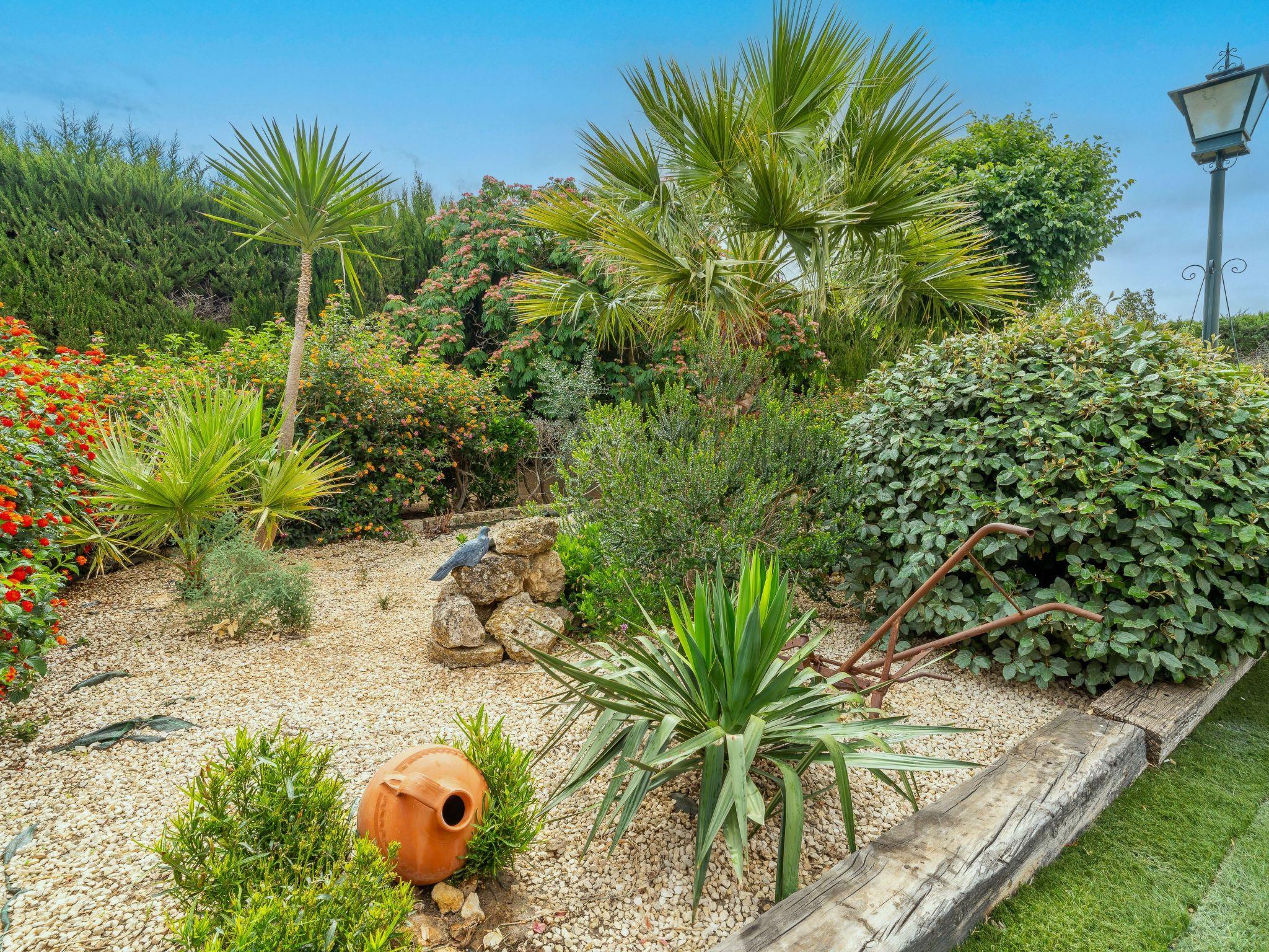 Large garden area with orange trees.