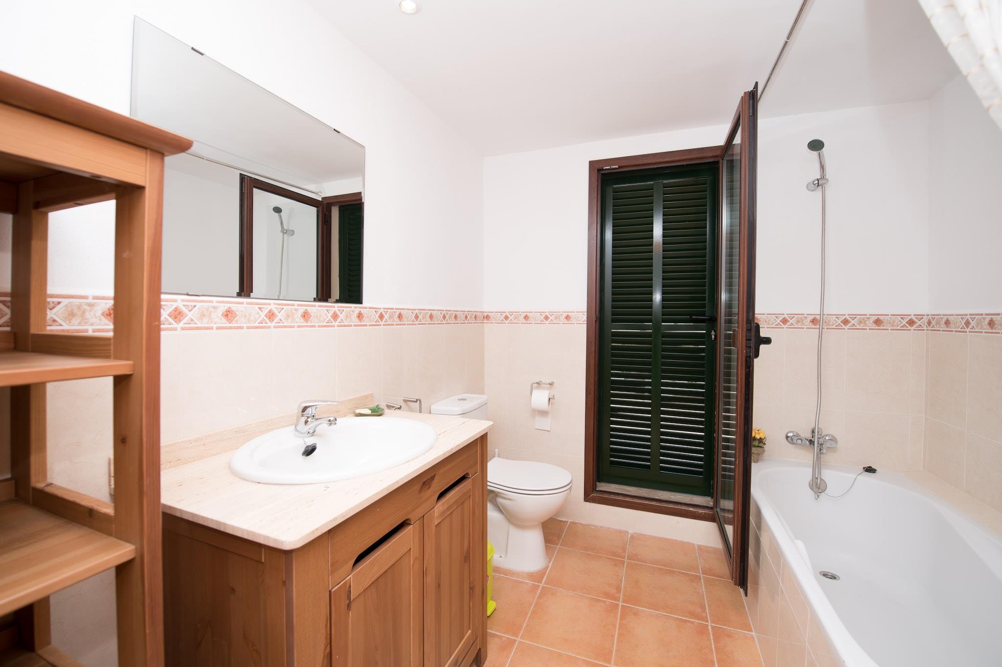 Dit prachtige huis heeft een privé zoutzwembad, met afmetingen van 8m x 4m en een diepte die varieert tussen 1,3m en 1,8m, waar u kunt ontspannen in de 6 hangmatten die het zwembad omringen. Een gemeubileerde veranda met uitzicht op het zwembad nodigt u uit om avonden met uw gezin te vieren. Het huis is onafhankelijk en heeft gedeeltelijke privacy. Het twee verdiepingen tellende huis van 110 m2 heeft twee slaapkamers op de eerste verdieping, één met een tweepersoonsbed en de andere met twee eenpersoonsbedden. Beide kamers zijn voorzien van airconditioning. Bovendien heeft elk van de kamers een gemeubileerd terras. Voor onze kleinste gasten maken wij een wiegje en een kinderstoel klaar. Dit prachtige huis heeft twee badkamers, een badkamer met douche op de begane grond en nog een badkamer met ligbad op de bovenverdieping. Drie ventilatoren maken de uitrusting compleet. In de ruime keuken-eetkamer, met keramische kookplaat, beschikt u over al het benodigde keukengerei om met het hele gezin te koken. Er is een wasmachine, strijkijzer en strijkplank. In de gezellige woonkamer kunt u satelliettelevisie kijken of ontspannen op de bank. Het Maria de la Salut-gebied ligt in het midden van het eiland, daarom is het heel gemakkelijk om binnen een redelijke tijd ergens te komen. Het gebied is in wezen landelijk en wordt grotendeels bewoond door mensen van het eiland, waardoor er niet veel toerisme is en je het echte Mallorca kunt ontdekken. Toch vindt u in María de la Salut alles wat u nodig heeft: supermarkt, apotheek, bank, sportgebied, bars en enkele restaurants. In slechts 15 minuten rijden bereikt u Ses Casetes dels Capellans en Ca'n Picafort. Breng een goede dag door op het fijne zandstrand of geniet van een cocktail terwijl u naar de zonsondergang kijkt. In de omgeving zijn goede restaurants waar je paella kunt eten, met het meest indrukwekkende uitzicht op zee. De Ca'n Picafort-promenade is een zeer levendige omgeving die contrasteert met de zeer rustige wijk Playa de Muro. De gebieden Puerto de Alcúdia en Pollença liggen ook vlakbij. Opmerking: deze huuraccommodatie accepteert geen klanten jonger dan 30 jaar, behalve in gevallen waarin het om een ??gezinsverblijf gaat. We hebben kopieën van het identiteitsbewijs van elke persoon nodig om de reservering te kunnen accepteren. Voor eventuele extra kosten kunt u contact opnemen met de adverteerder. Wij accepteren geen huisdieren. Het vieren van evenementen is niet toegestaan. Er is buiten parkeergelegenheid voor 2 auto's. Er zijn 2 parkeerplaatsen in de garage. Afstanden Strand: 20 km - Can Picafort Luchthaven: 34 km - Son Sant Joan Golfbaan: 22 km - Golf Puntiró Stad: 0.100 km - Maria de la Salut Treinstation: 6,7 km - Sineu Bushalte: 0.800 km - Carrer Jaume Bergas, Maria de la Salut Veerboot: 45 km - Haven van Palma Ziekenhuis: 12,5 km - Ziekenhuis Comarcal d´Inca Toeristenvergunning: ETV/6956Bij de ingang moet u de Ecotasa (toeristenbelasting van de Balearen) contant betalen. Het bedrag varieert tussen EURO 0,55 / per nacht per persoon in het laagseizoen en EURO 2,2 / per nacht per persoon in het hoogseizoen. Vanaf de negende dag wordt het met de helft verminderd. Personen onder de 16 jaar uitgesloten. Bij de ingang dient u de borg rechtstreeks aan de eigenaar te betalen. Elektriciteit (januari - december): 0,30 EUR/Kw (verplicht)