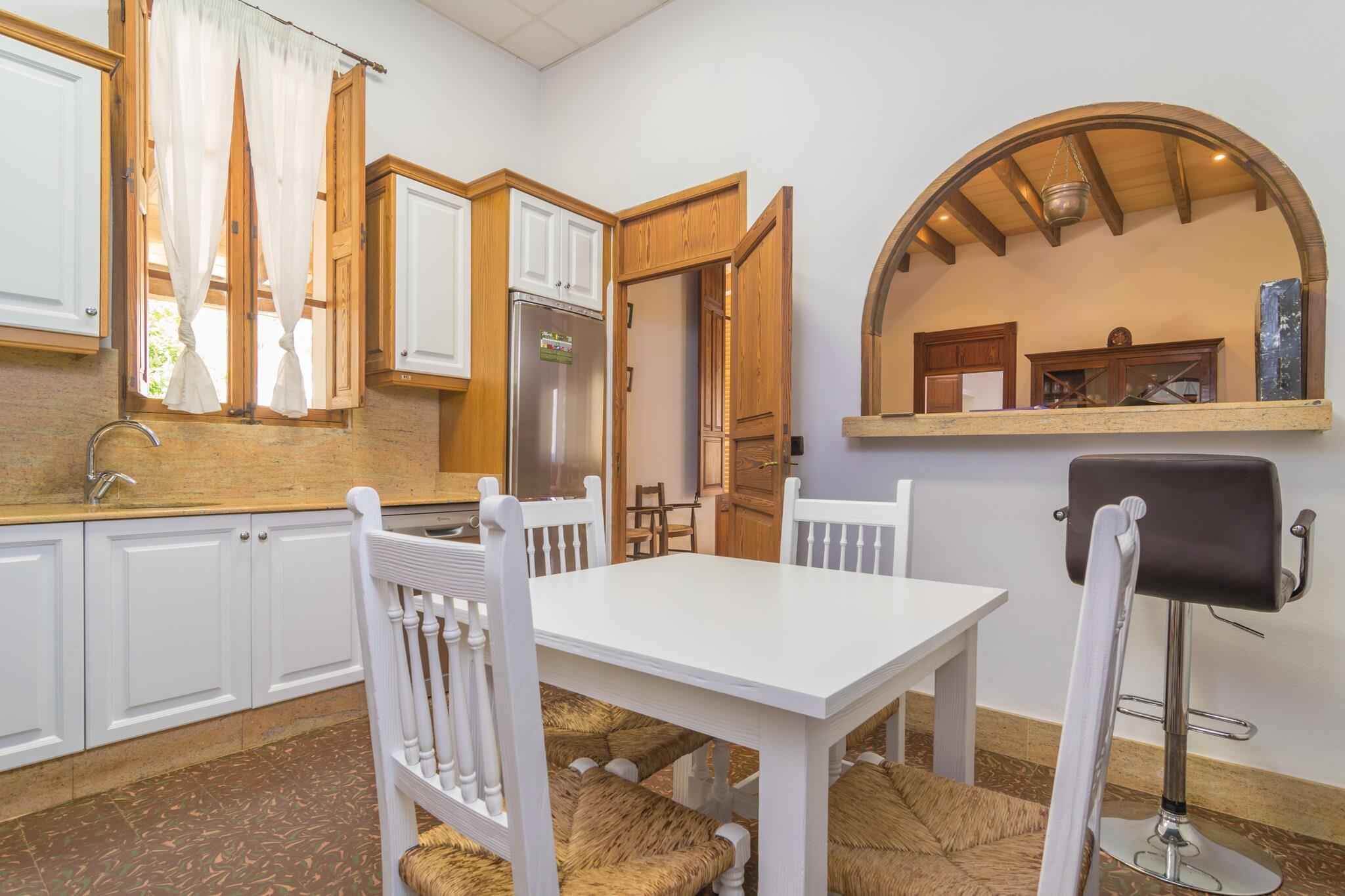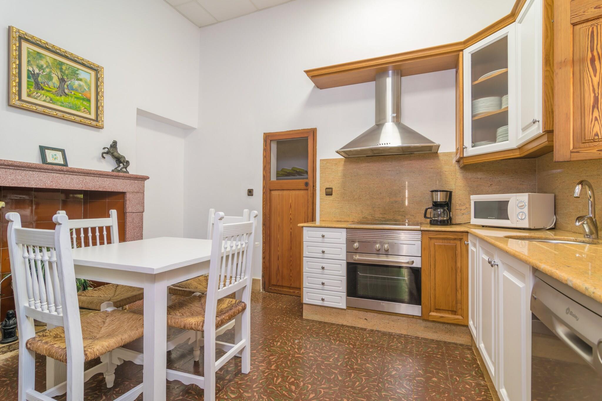 De buitenkant is erg mooi, het heeft een chloorzwembad van 9 x 5 m, een groot gemeubileerd terras, twee volledig uitgeruste veranda's, een barbecue en een houtoven. Het huis van 244 m2 verdeeld over twee verdiepingen heeft veel charme omdat het een typisch Mallorcaans huis is met moderne elementen waarvan de hydraulische tegels bewaard zijn gebleven. Het heeft vijf slaapkamers, waarvan vier op de begane grond, twee met een tweepersoonsbed en twee met twee eenpersoonsbedden, waarvan één met airconditioning en een en-suite badkamer; en één op de 1e verdieping met een tweepersoonsbed, airconditioning en een eigen badkamer. Van de slaapkamers op de begane grond zijn er twee die toegankelijk zijn via een buitendeur, deze hebben geen directe toegang tot het huis; Daarnaast zijn er ook nog twee slaapkamers, van elkaar gescheiden door een gordijn. Er is beschikbaarheid voor een kinderbedje en een kinderstoel. Naast de twee en-suite badkamers is er op de 1e verdieping een badkamer met douche die het hele huis bedient. De woonkamer is erg gezellig en heeft drie banken, een kleine tafel en TV-Sat. Er is een secundaire woonkamer met twee banken. De eetkamer is uitgerust met een grote tafel en stoelen; en de keuken-eetkamer, onafhankelijk en met vitro, beschikt over alle benodigde keukengerei om zonder enig probleem te koken; Er is ook een open haard. Er is een wasmachine, strijkijzer en strijkplank. Het Maria de la Salut-gebied ligt in het midden van het eiland, daarom is het heel gemakkelijk om binnen een redelijke tijd ergens te komen. Het gebied is in wezen landelijk en wordt grotendeels bewoond door mensen van het eiland, waardoor er niet veel toerisme is en je het echte Mallorca kunt ontdekken. Toch vindt u in María de la Salut alles wat u nodig heeft: supermarkt, apotheek, bank, sportgebied, bars en enkele restaurants. In slechts 15 minuten rijden bereikt u Ses Casetes dels Capellans en Ca'n Picafort. Breng een goede dag door op het fijne zandstrand of geniet van een cocktail terwijl u naar de zonsondergang kijkt. In de omgeving zijn goede restaurants waar je paella kunt eten, met het meest indrukwekkende uitzicht op zee. De Ca'n Picafort-promenade is een zeer levendige omgeving die contrasteert met de zeer rustige wijk Playa de Muro. De gebieden Puerto de Alcúdia en Pollença liggen ook vlakbij. Huisdieren zijn niet toegestaan ??op het terrein. Voor eventuele extra kosten kunt u contact opnemen met de adverteerder. Wij accepteren geen huisdieren. Het vieren van evenementen is niet toegestaan. Afstanden Strand: 15 km - Can Picafort Luchthaven: 40,5 km - Son Sant Joan Golfbaan: 17,9 km - Rotana-reservaat Stad: 0,17 km - Maria de la Salut Treinstation: 7,7 km - Petra Bushalte: 0,4 km - Carrer Jaume Bergas, Maria de la Salut Veerboot: 23,8 km - Port d'Alcúdia Ziekenhuis: 16,4 km - Comarcal d'Inca-ziekenhuis Toeristenvergunning: ETV/5877Bij de ingang dient u de Ecotasa (toeristenbelasting van de Balearen) contant te betalen. Het bedrag varieert tussen EURO 0,55 / per nacht per persoon in het laagseizoen en EURO 2,2 / per nacht per persoon in het hoogseizoen. Vanaf de negende dag wordt het met de helft verminderd. Personen onder de 16 jaar uitgesloten. Bij de ingang dient u de borg rechtstreeks aan de eigenaar te betalen. Elektriciteit (januari - december): 0,35 EUR/Kw (verplicht)