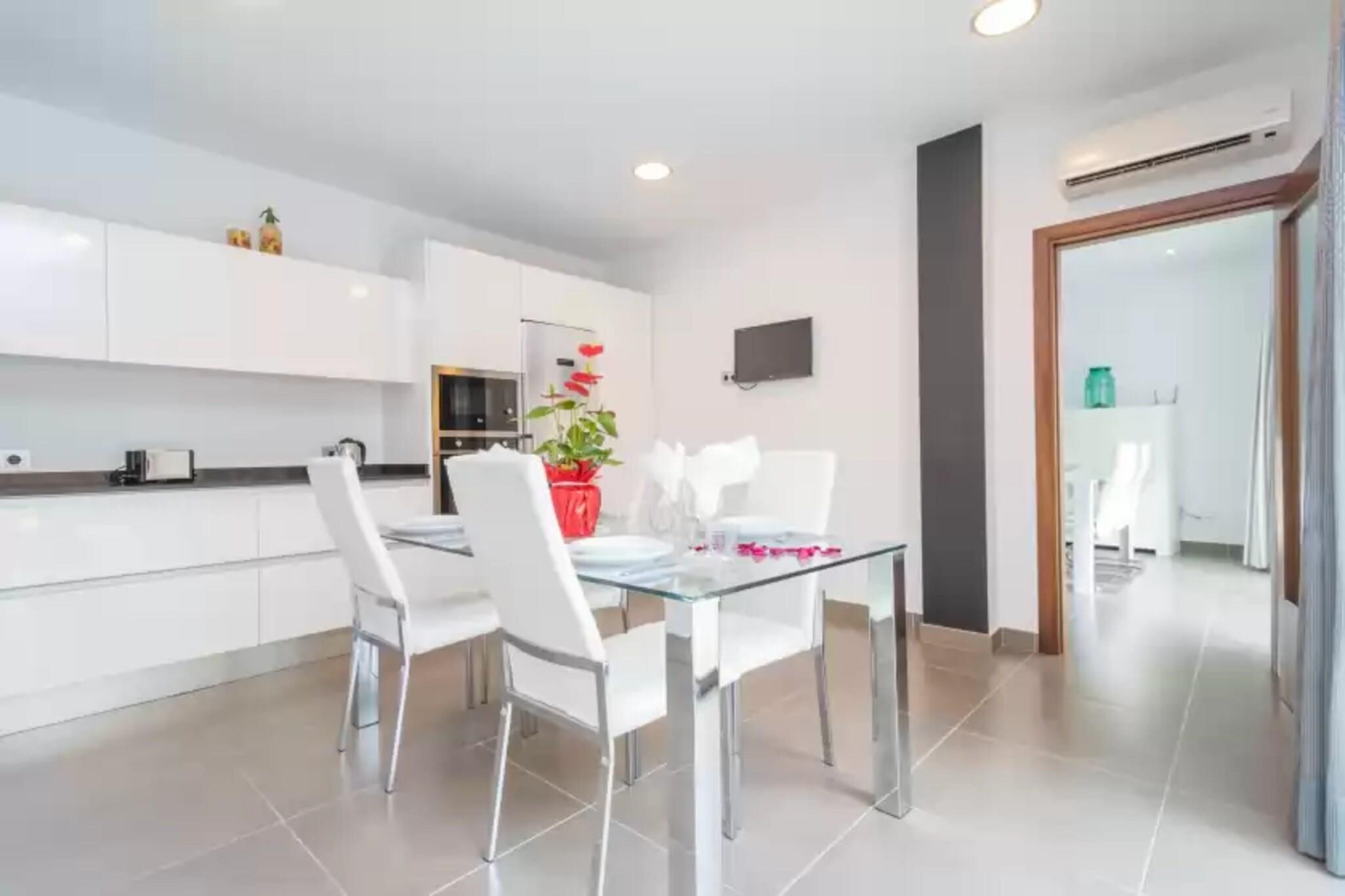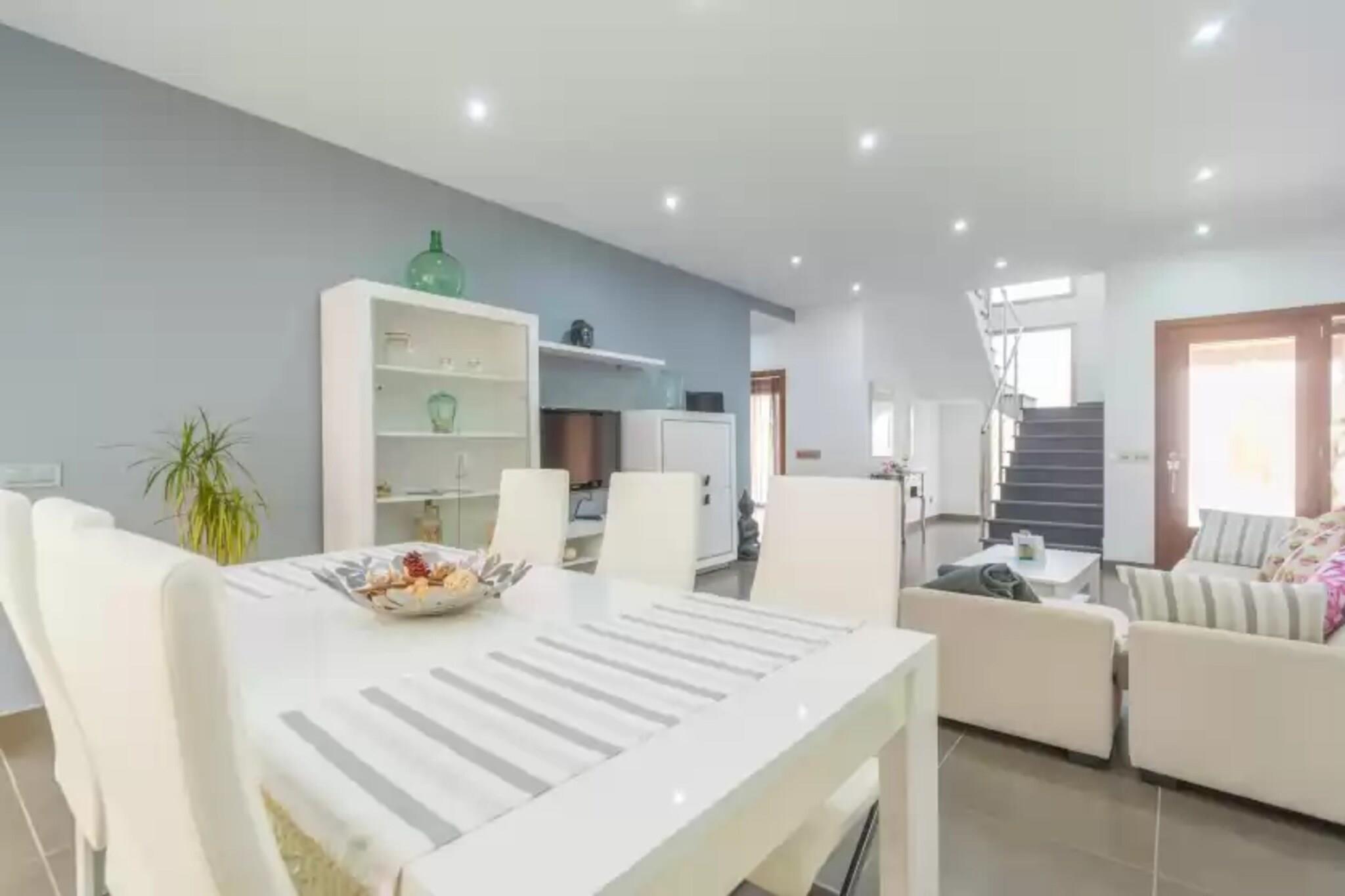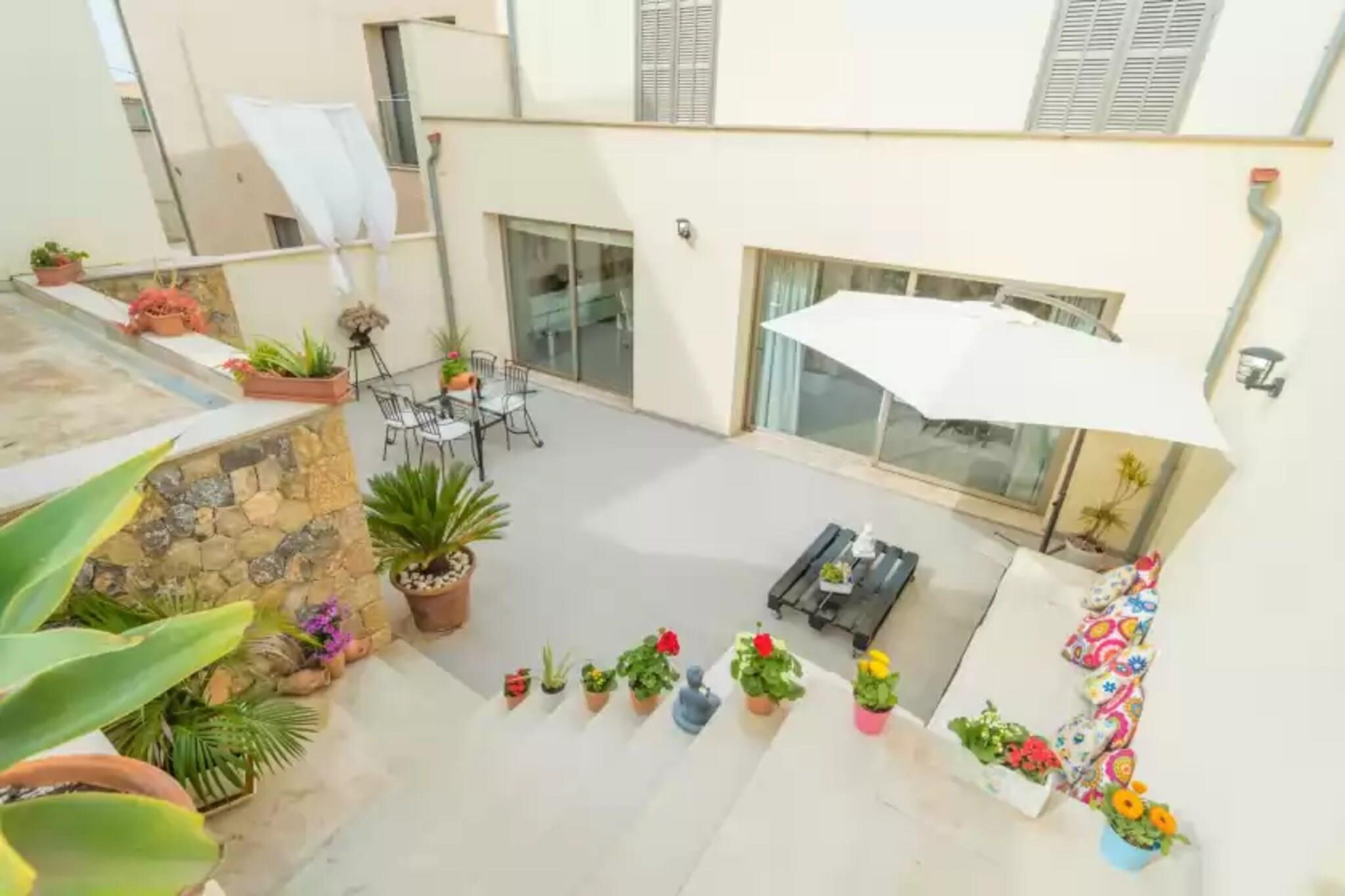 Dette fuldt restaurerede rækkehus på 1 etager blander moderne stil med ultimativ privatliv og tilbyder en smukt møbleret terrasse perfekt til at slappe af eller spise under stjernehimmel. På trods af sin centrale beliggenhed er der ingen direkte naboer - kun en lukket naturvarefabrik i nærheden. Træd gennem store glasskydedøre ind i drømmekøkkenet for enhver madlavningsentusiast, med en keramisk kogeplade, aircondition og en hyggelig morgenmadsbar. Stuen, der også har aircondition, omfatter en chaiselong-sofa, satellit-tv og en spiseplads, ideel til at slappe af efter lange øudforskninger. Soveværelset har en dobbeltseng, rigelig skabsplads, barnesenge og højstole samt eget badeværelse med bruser og badekar. Et andet brusebadeværelse med vaskemaskine, tørretumbler, strygejern og strygebræt er placeret udenfor. Ventilatorer og radiatorer er tilgængelige efter anmodning. Beliggende i den rolige landsby María de la Salut, kendt for sine restauranter og dagligvarebutikker, og tæt på det traditionelle onsdagsmarked i Sineu. En bil anbefales for at udforske de fantastiske nærliggende strande såsom Son Serra de Marina og Playas de Muro. Garage parkering til to biler er bekvemt placeret lige rundt om hjørnet. Kæledyr og arrangementer er ikke tilladt.