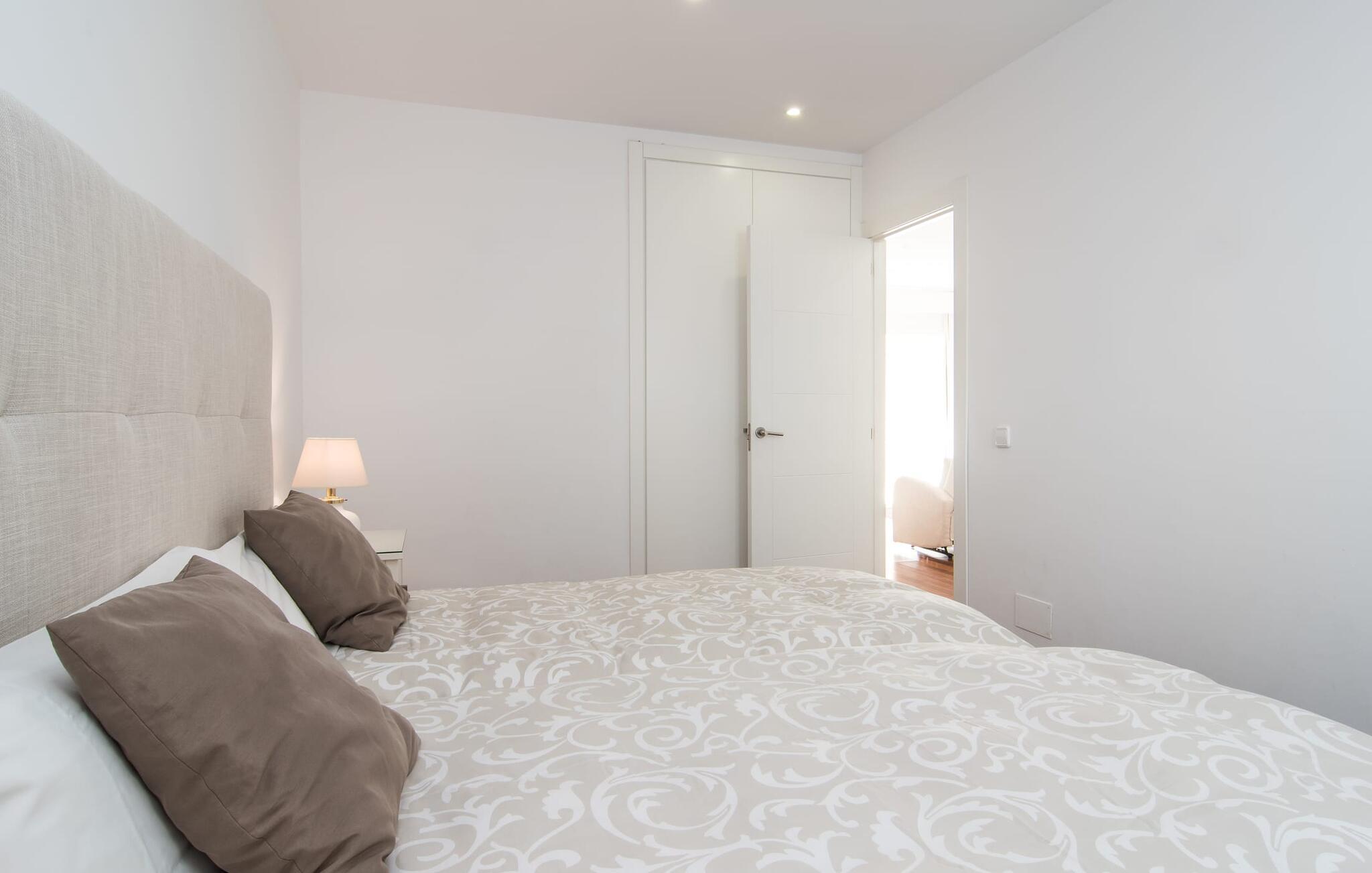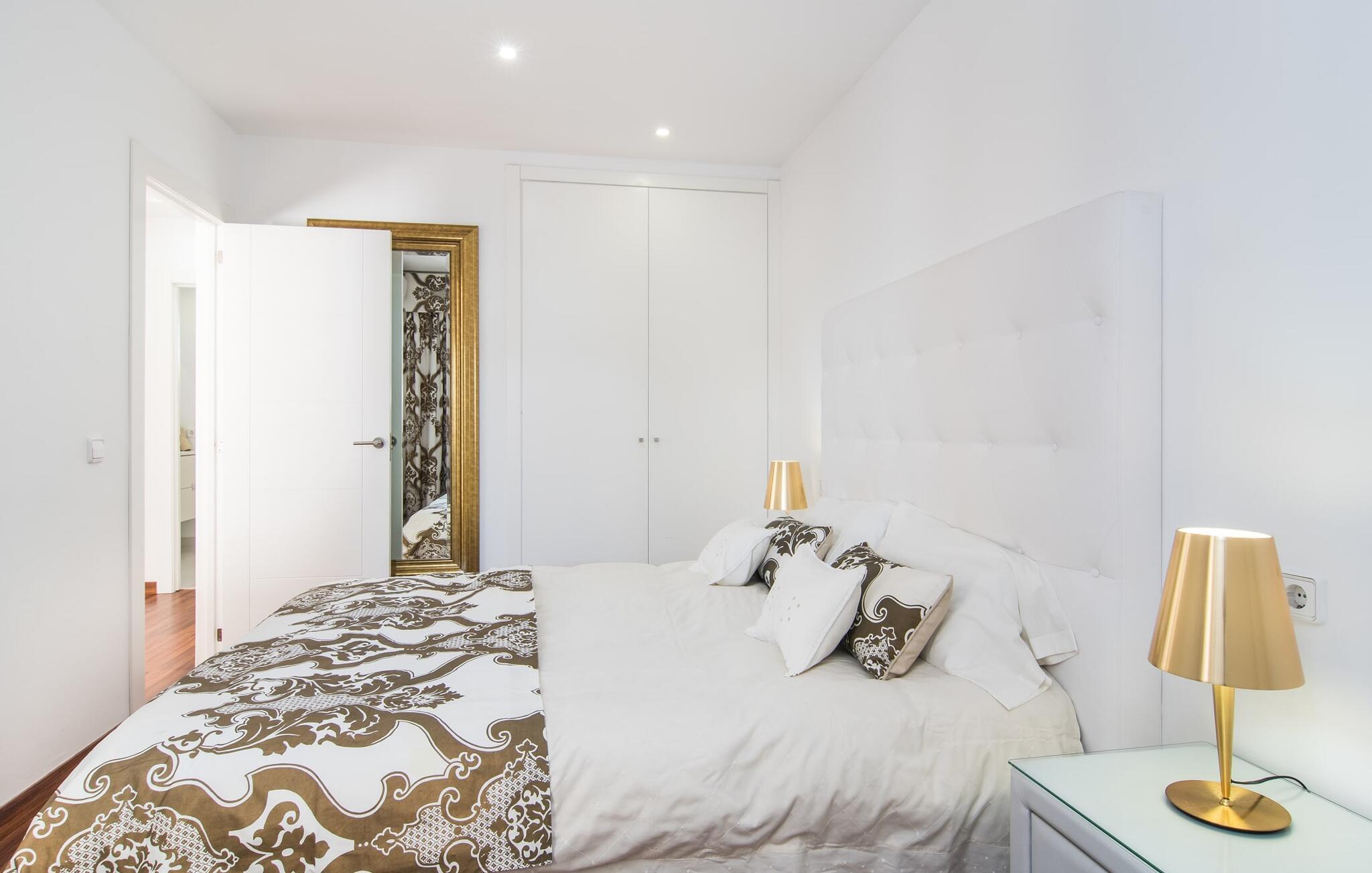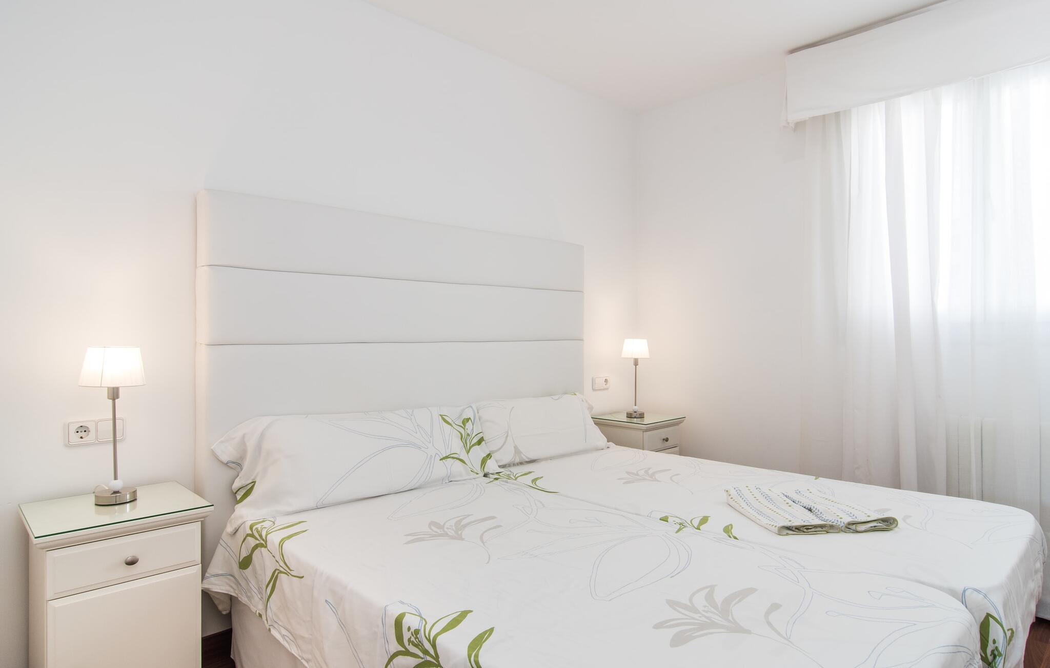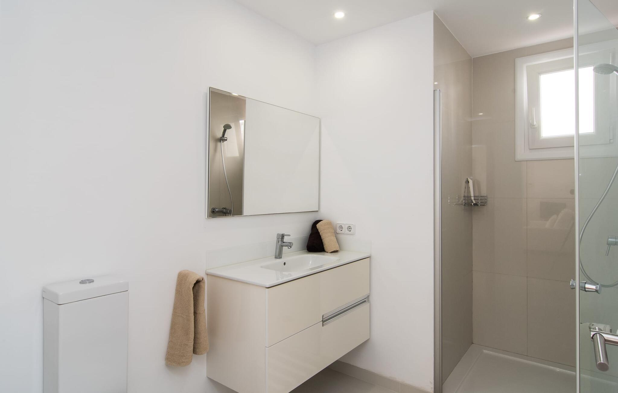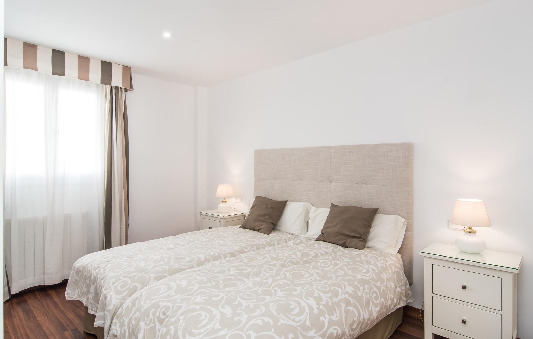 I den helt hvide "Marieta Bajos" kan I lade jeres egne farver skinne og nyde den behagelige kølighed i rummene. Vinduer og døre slipper lys og luft ind (der er også ventilatorer og aircondition), men samtidig trækker indretningen sig markant tilbage fra det, der sker udenfor. Det betyder, at I hurtigt kan slappe af efter en dag på havet og ikke bliver distraheret af andre indtryk. Tre mindre soveværelser er samlet omkring stue/spisestue med udgang til terrasse og køkken. En dobbeltseng (1,60 x 2 m) og senge med enkeltmadrasser (0,90 x 2 m) er til rådighed, og indbyggede overskabe skaber plads. Der er to moderne badeværelser med walk-in brusere (hvoraf det ene er en suite), og den udendørs bruser kan bruges til forfriskning. Med vaskemaskine og tørretumbler i det ekstra værelse gør denne ferielejlighed jer velegnet til strande, udflugter og vandsport, selv med lille bagage.