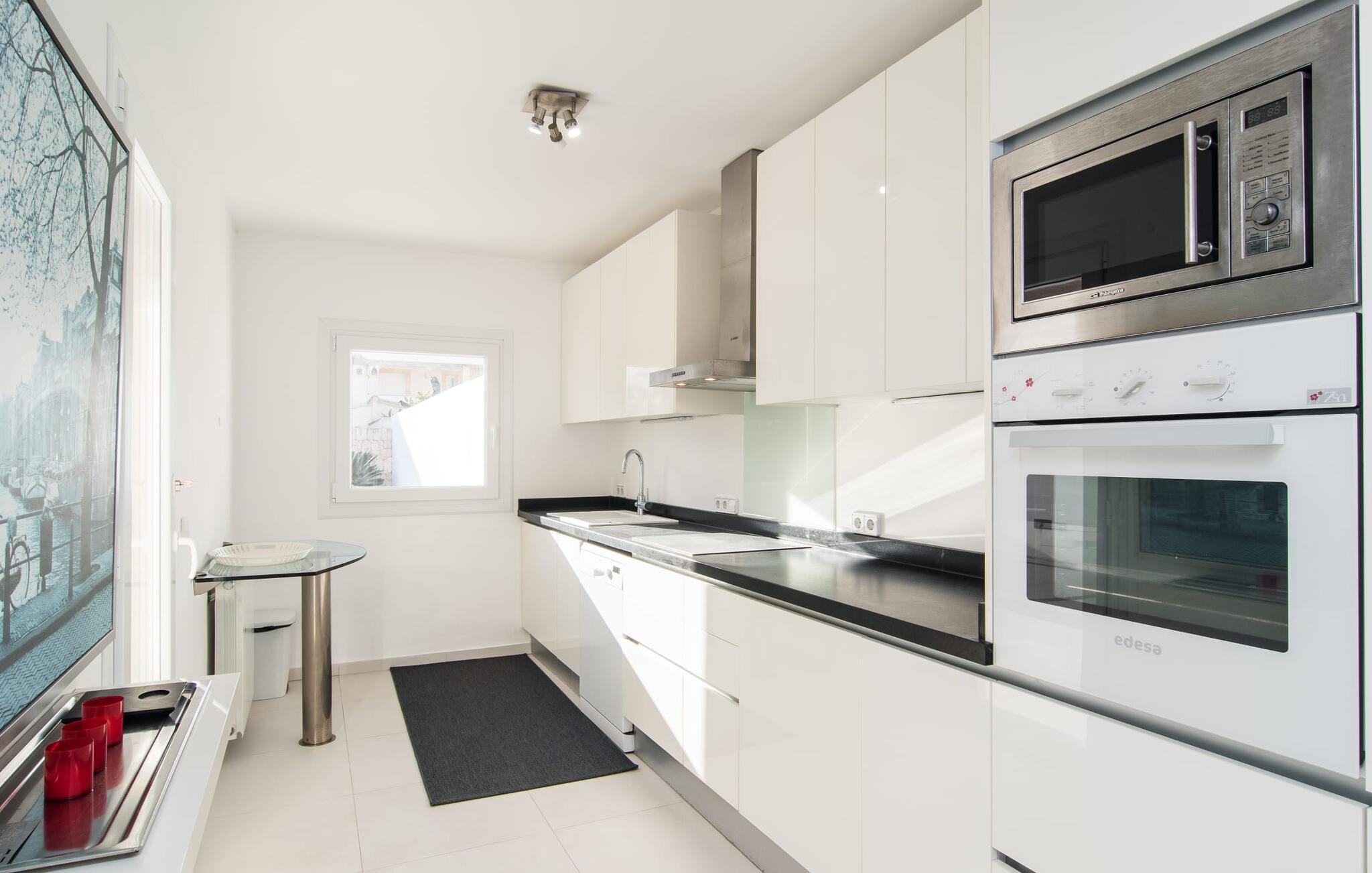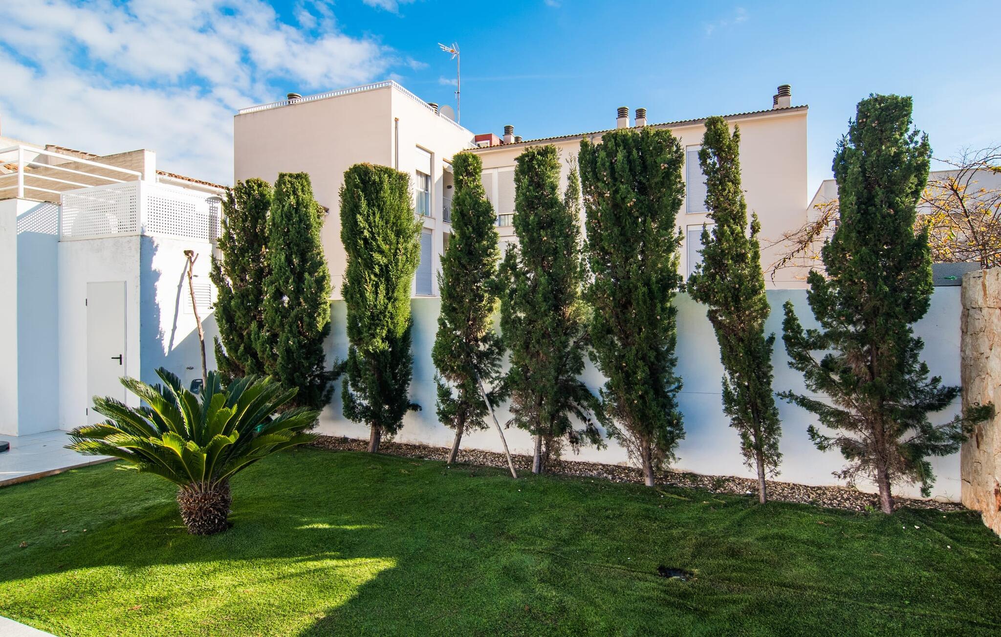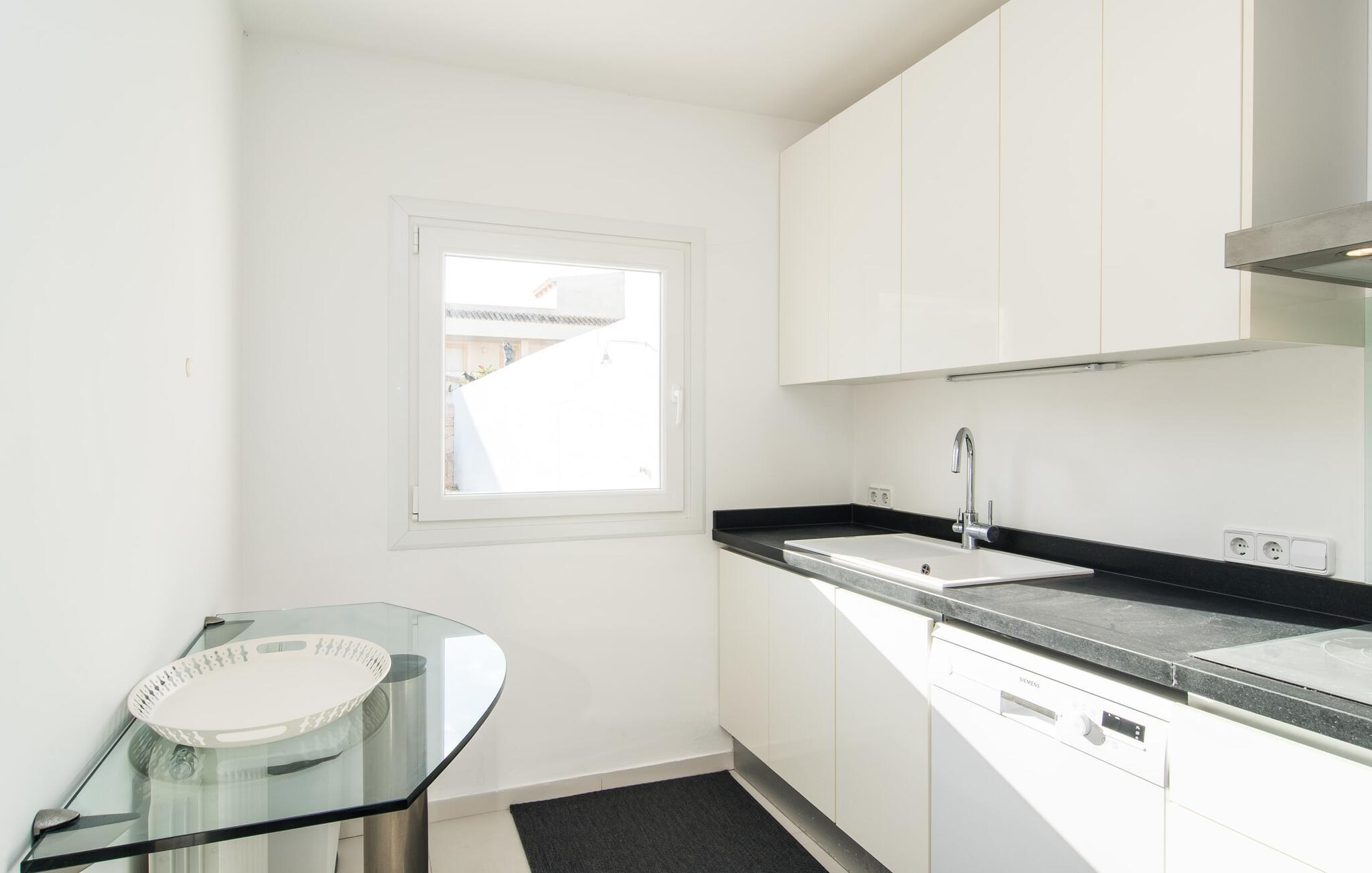 Bag etagehusets ret uanselige facade med topbeliggenhed, kun få hundrede meter fra havnen og havnestranden, er der en moderne, puristisk 3-værelses stuelejlighed med parkering på gaden. Ikke givet for en bybolig åbner "Marieta Bajos" sig ud mod bagsiden og byder på en afslapningsoase midt i kvarteret: Omgivet af mure, med et lille grønt område og en terrasse beskyttet af næste etage, højdepunktet her er en 10 m lang pool. Gæsterne kan nemt skifte frem og tilbage mellem stranden og "hjemmevandet" og kan opdeles som de vil og gå deres egen vej. I løbet af grillaftenen er der ingen, der kigger på jeres tallerken fra oven i jeres friluftsniche med direkte forbindelse til køkkenet, og en eller to liggestole får også plads i skyggen ved siden af ??spisebordet.