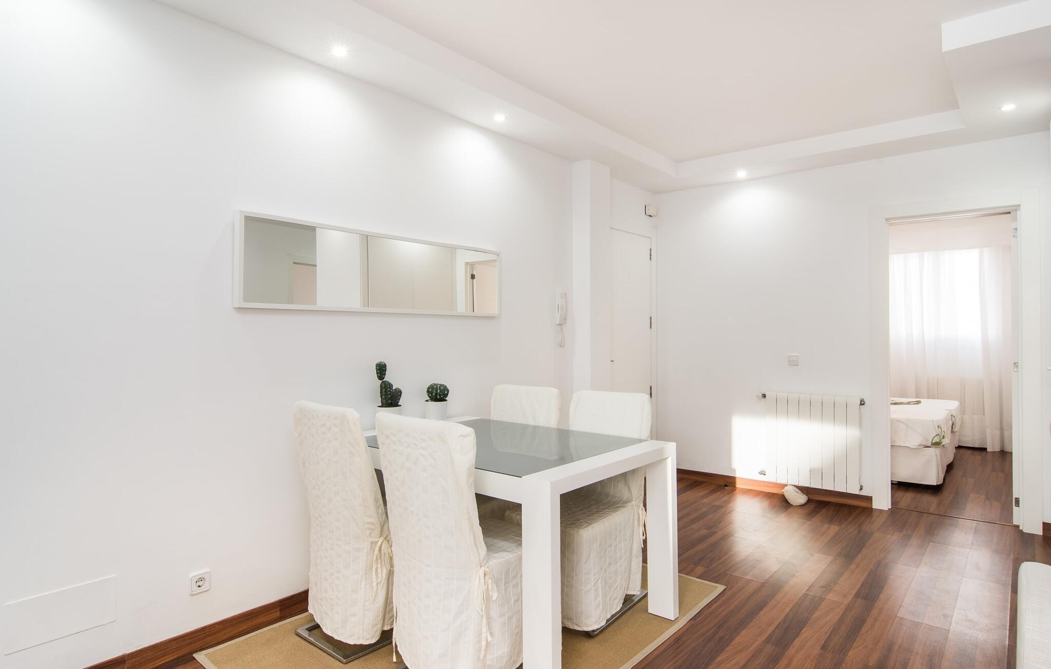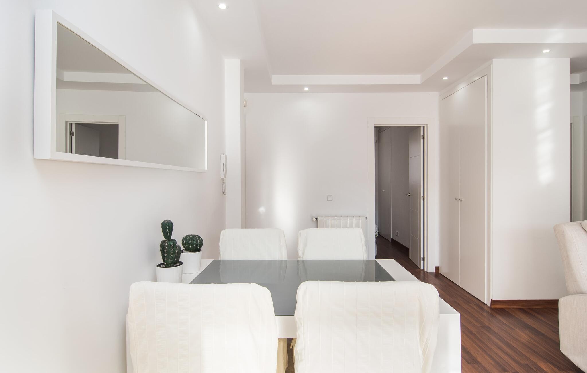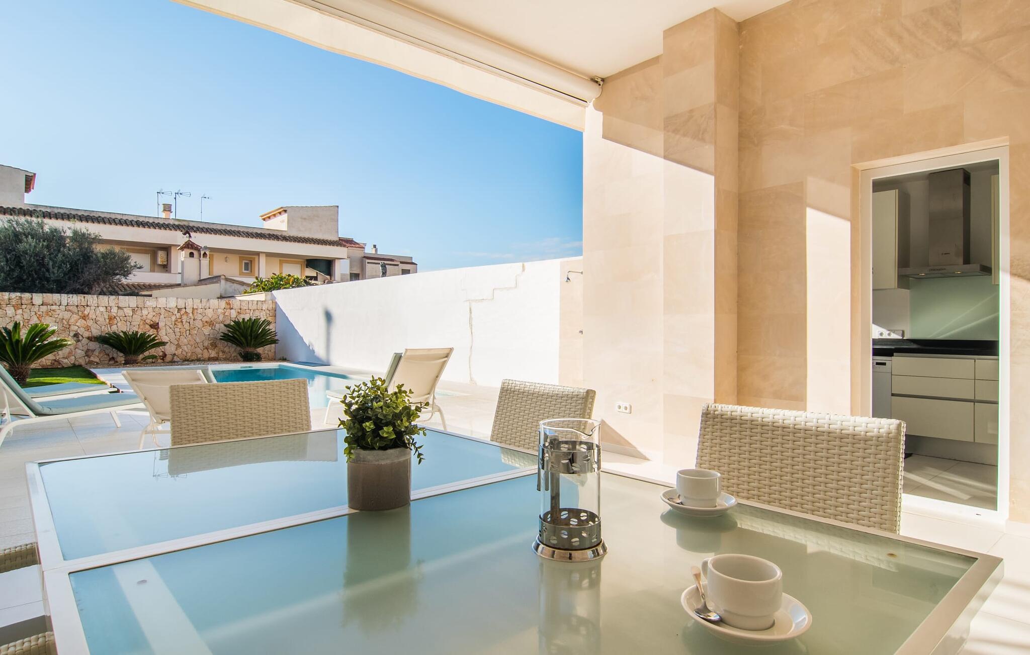Bag etagehusets ret uanselige facade med topbeliggenhed, kun få hundrede meter fra havnen og havnestranden, er der en moderne, puristisk 3-værelses stuelejlighed med parkering på gaden. Ikke givet for en bybolig åbner "Marieta Bajos" sig ud mod bagsiden og byder på en afslapningsoase midt i kvarteret: Omgivet af mure, med et lille grønt område og en terrasse beskyttet af næste etage, højdepunktet her er en 10 m lang pool. Gæsterne kan nemt skifte frem og tilbage mellem stranden og "hjemmevandet" og kan opdeles som de vil og gå deres egen vej. I løbet af grillaftenen er der ingen, der kigger på jeres tallerken fra oven i jeres friluftsniche med direkte forbindelse til køkkenet, og en eller to liggestole får også plads i skyggen ved siden af ??spisebordet.