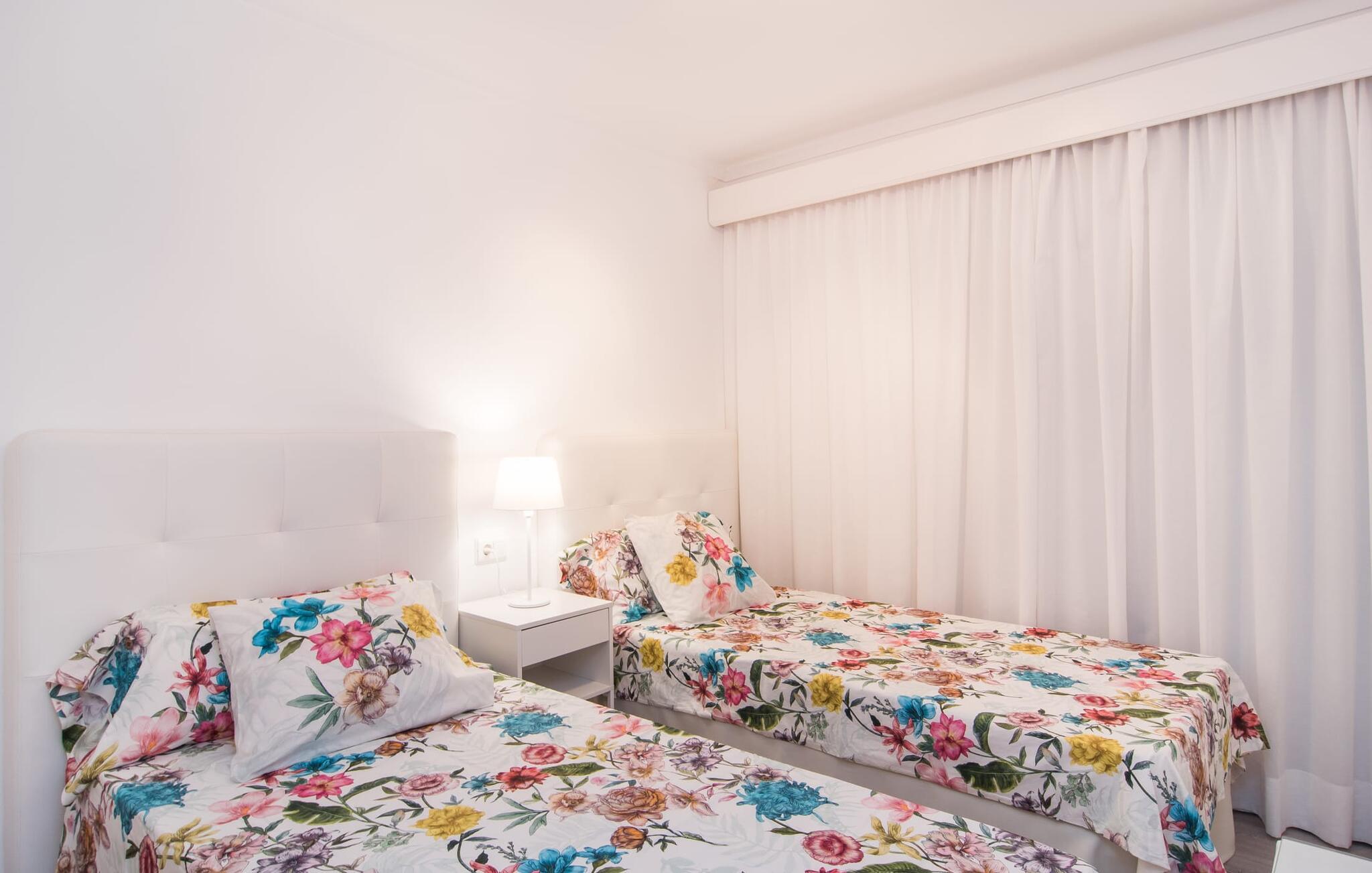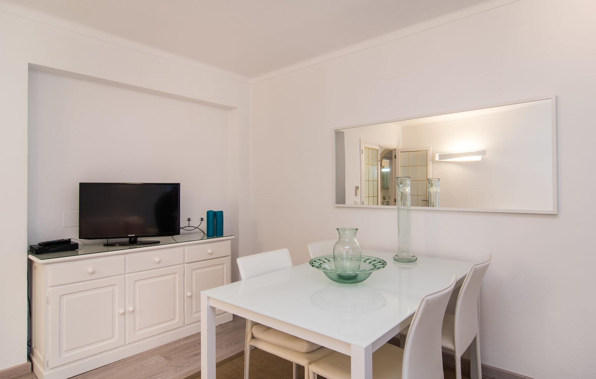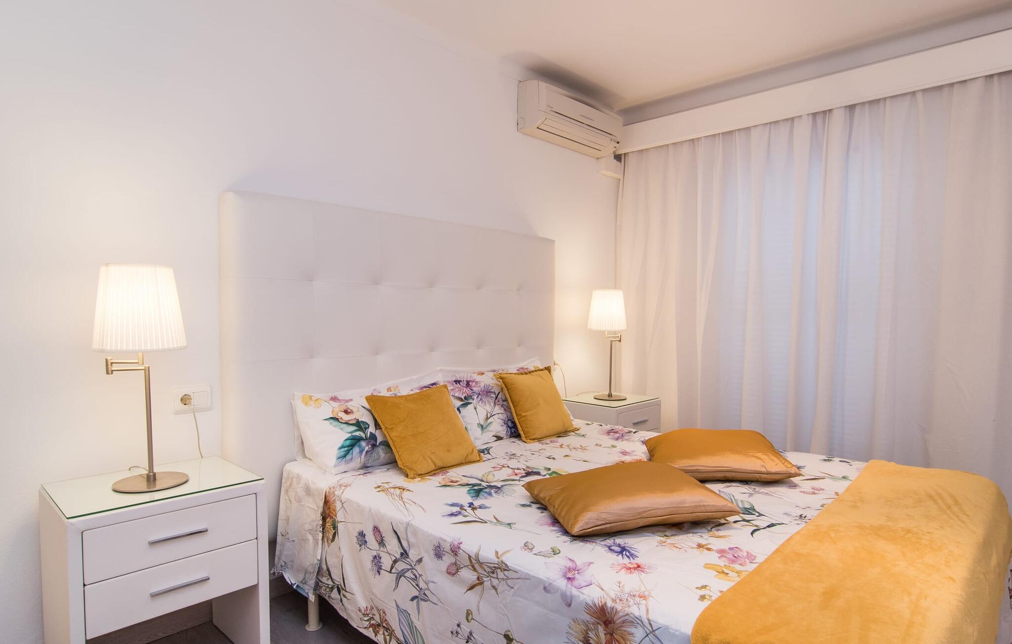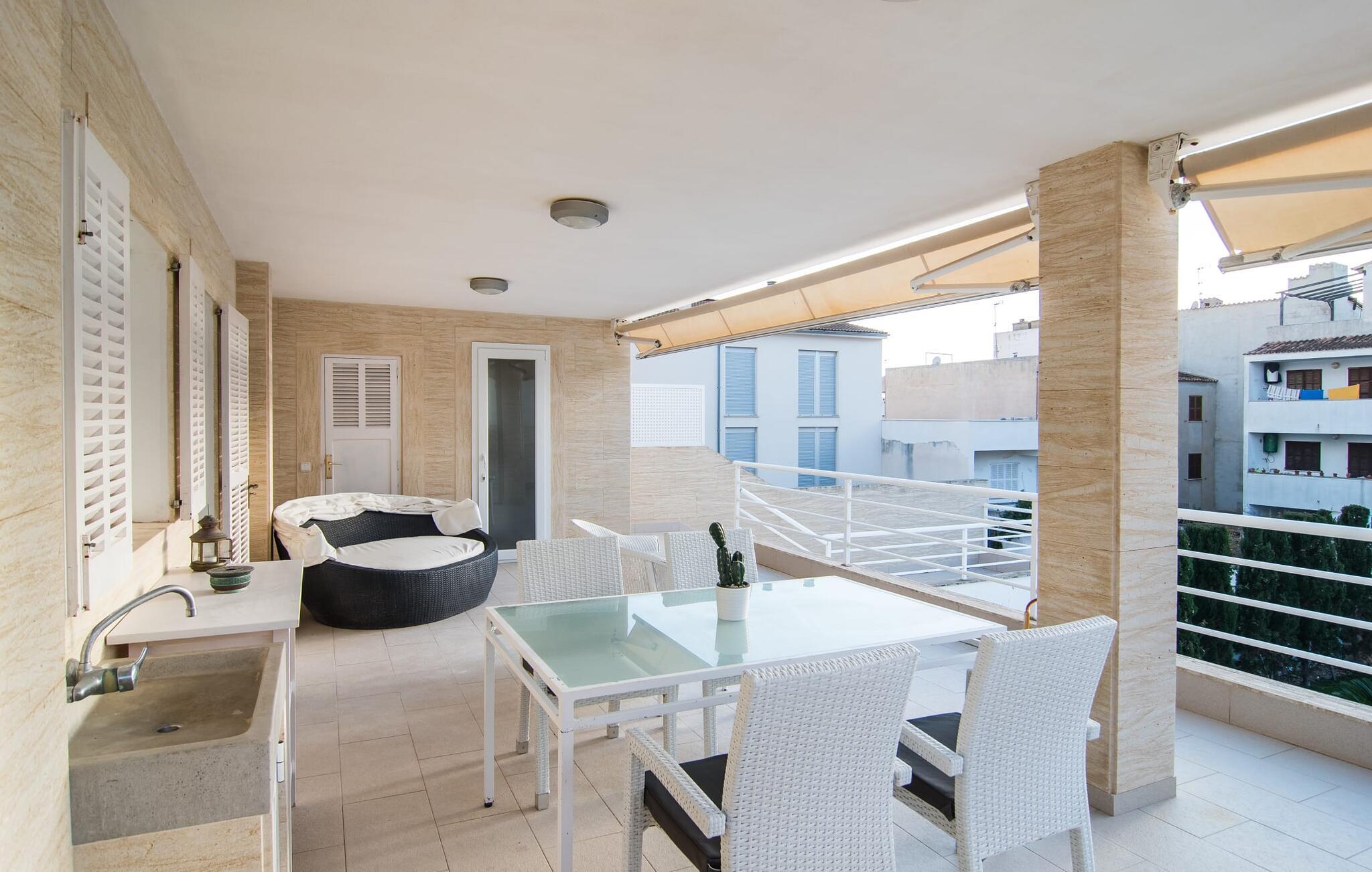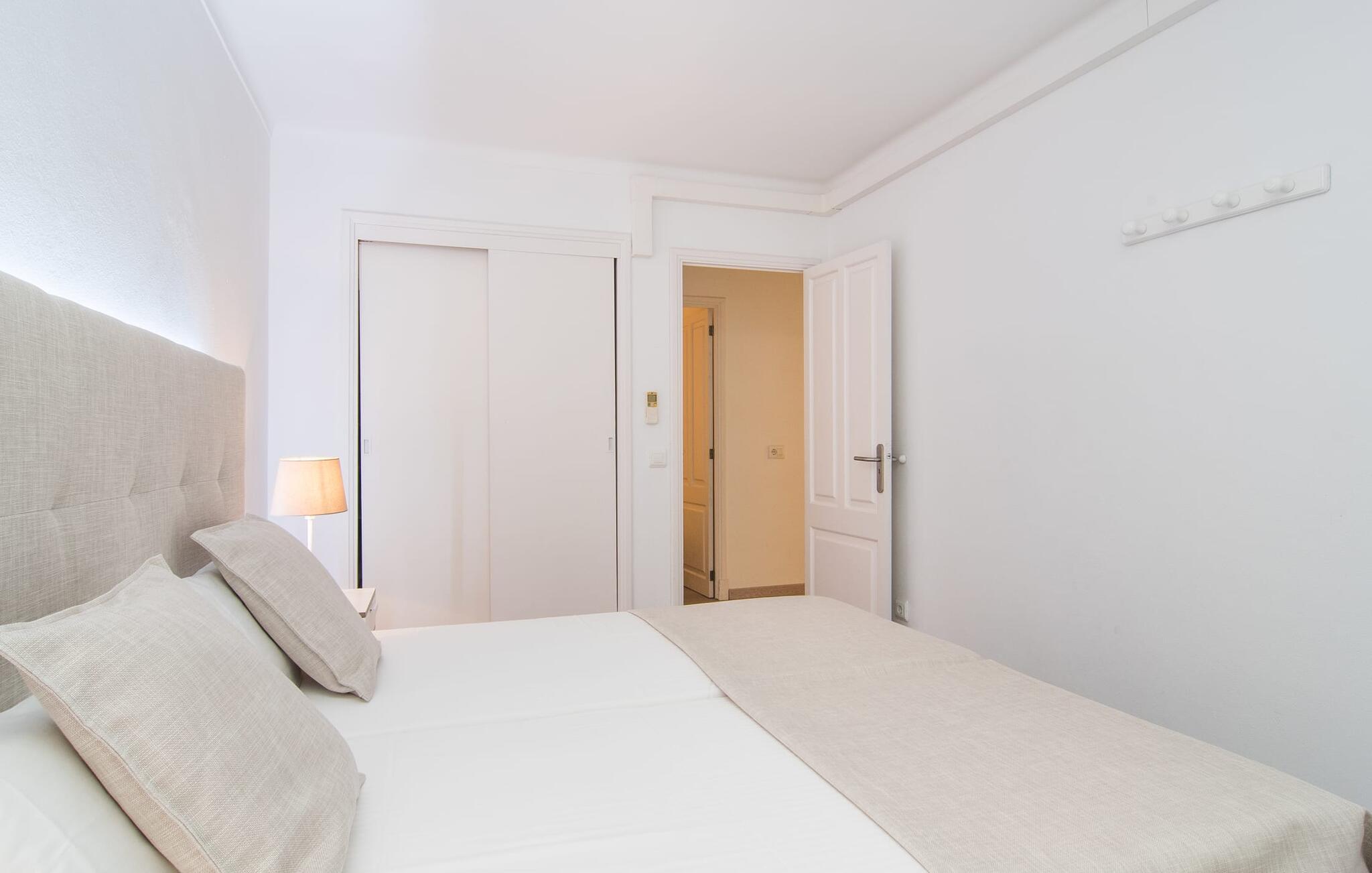 Gemt bag den ret uanselige facade på et etagehus, som kun ligger få hundrede meter fra havnen og havnestranden, ligger denne puristiske 3-værelses lejlighed med parkeringsplads ved gaden. Den overdækkede altan på bagsiden af huset viser sig at være en lille udendørs oase, hvorfra man kan nyde en smuk udsigt over haven og kvarteret. Der er plads til en behagelig udendørs sofa, samt to liggestole og et spisebord. Andre praktiske funktioner: den udendørs håndvask og bedst af alt: det udendørs badeværelse. Med sit helt hvide design giver "Marieta I" jer mulighed for at lade jeres egne farver skinne og vil glæde jer med den behagelige kølighed i dets værelser. Vinduer og døre lukker lys og luft ind (ventilatorer og aircondition er også inkluderet), mens interiøret giver et behageligt tilbagetog fra aktiviteterne udenfor. Efter en dag på havet kan I hurtigt slukke og ikke blive distraheret af andre indtryk. Tre mindre soveværelser er grupperet omkring stue/spisestue. I kan vælge mellem to dobbeltsenge (1,60 x 2 m) og to enkeltsenge med enkeltmadrasser (0,90 x 2 m). Indbyggede skabe giver tilstrækkelig opbevaringsplads. Der er også et moderne badeværelse med bruseniche. Det fuldt udstyrede, lyse køkken har direkte udgang til altanen, så borddækning og klargøring kan klares på ingen tid. Udstyret med en vaskemaskine gør dette feriehus mulighed for strandture, udflugter og vandsport, selvom I rejser let. Blå timer, rosenrød udsigt og alt andet end almindeligt: Den sydlige del af øen vil fortrylle jer med sine farver - fra Cueva Azul på Gedeøen til lagunerne i Ses Salines - og afsløre dens kreative side. Den tidligere fiskerlandsby Colònia de Sant Jordi tiltrækker gæster, der elsker vandet, ønsker at være aktive eller er forelsket i den naturlige skønhed i denne region. Kystafsnittet har huler, bugter, naturlige strande og små øer, og Cabrera-marinereservatet tiltrækker dykkere ind i den artsrige undervandsverden. Der sker altid noget ved Platja des Port ved marinaen og ved Platja d'es Dolç, omkring 2 km væk, som også tilbyder familier sikker svømning. En tapas-tur, der tilbydes om sommeren, tager jer til forskellige steder i byen; Holder I jer lige i centrum, kan I se bort fra tiden og forkæle jer selv med endnu et glas vin på grund af den kortere gåtur hjem. Centralt beliggende, omgivet af smukke strande og vandsportscentre: "Marieta I", en moderne loftslejlighed i hvid stil, tager jer direkte til havet! At gå til havnen, fyret, stranden, supermarkedet og det allerede dækkede bord - det kunne ikke være mere praktisk. Ses Salines, Santanyí og Portocolom er ideelle til korte ture på hjul.