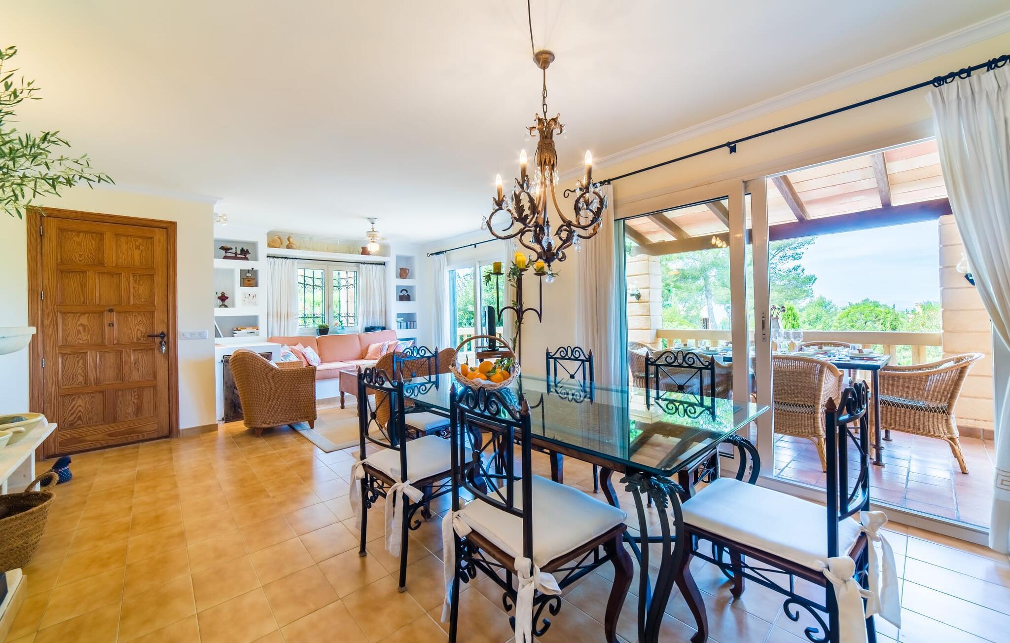 Fra det øjeblik I ankommer, vil I blive fortryllet af Villa Marimonts charme og elegance. Villaen i middelhavsstil er malerisk beliggende på en blid bakke med Tramuntana-bjergene i det fjerne, det intense, glitrende blå hav i forgrunden og Serra de Llevant-massivet midt i naturreservatet i baggrunden. I vil straks forelske jer i den maleriske, velholdte have og dens yndefuldt designede kroge og hjørner. Der er små overraskelser overalt. en hængekøje i skyggen her, et mosaikdekoreret bord der eller en murstensbænk. Træernes og planternes frodige grønne farve domineres af strålende lyseblå og hvide toner og den beroligende beige farve i naturstenene. Poolen, der ligger lige ved siden af huset, tilbyder absolut privatliv, og liggestole af høj kvalitet lægger op til at slappe af. Et poolhus med en lounge tilbyder et tilflugtssted fra sommersolen og kan takket være et udtrækkeligt beskyttelsesovertræk også bruges på regnfulde eller kølige dage. Med de stilfulde loungemøbler på den skyggefulde, overdækkede udendørsterrasse kan I tilbringe dejlige aftener med grill. Denne ejendoms sande appel ligger i dens alsidige udendørsområde, som er stemningsfuldt oplyst om aftenen. I sommermånederne kan I opholde jer udenfor til de sene morgentimer, for eksempel i den overdækkede spiseplads eller i den oplyste lounge i poolhuset. Gæsterne sætter også pris på det skyggefulde sted under pergolaen med en hængekøje.